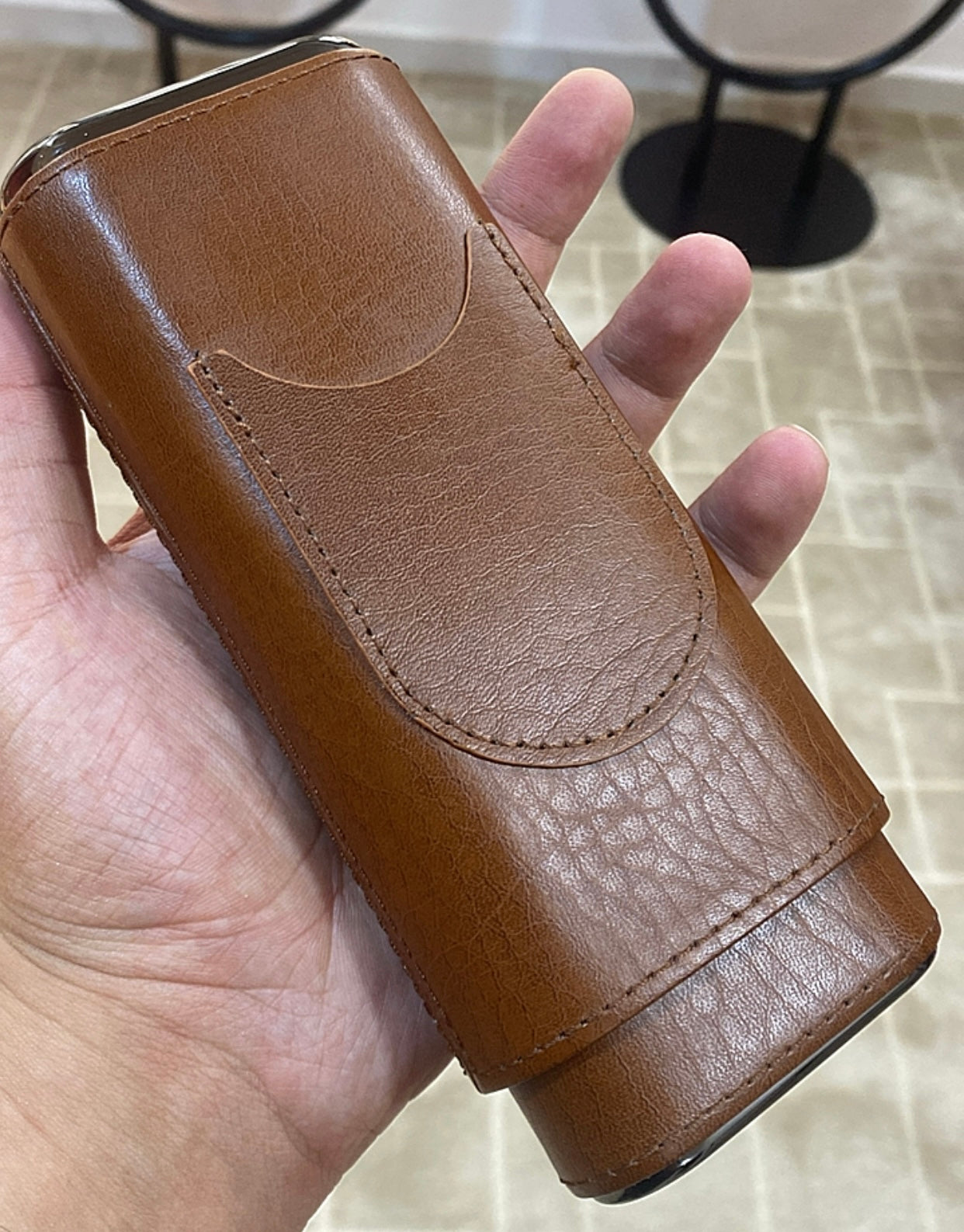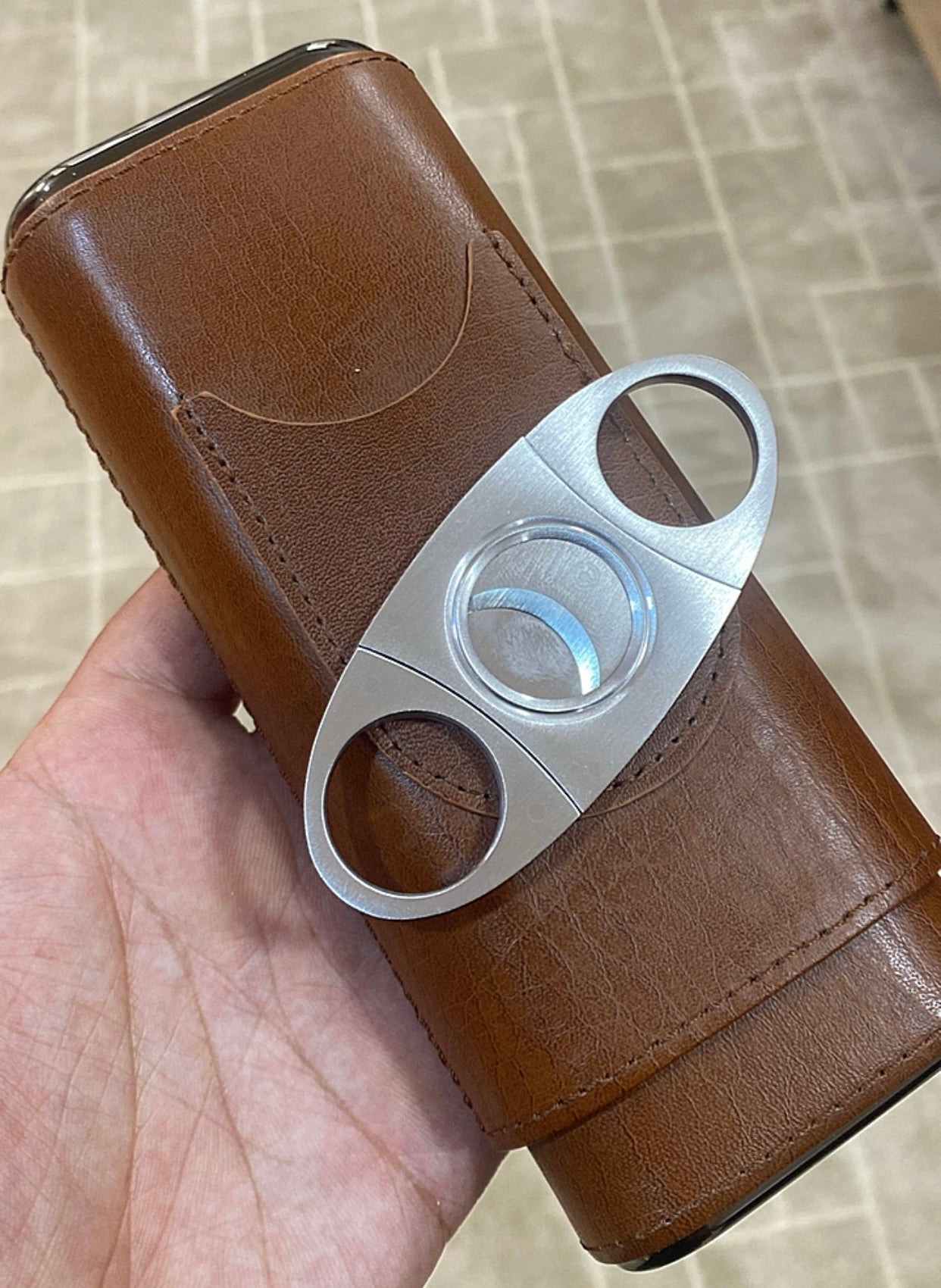 حافظة السيجار جلد بني - الحجم الطويل + كاتر ( قطاعة ) هانكوك اصلي