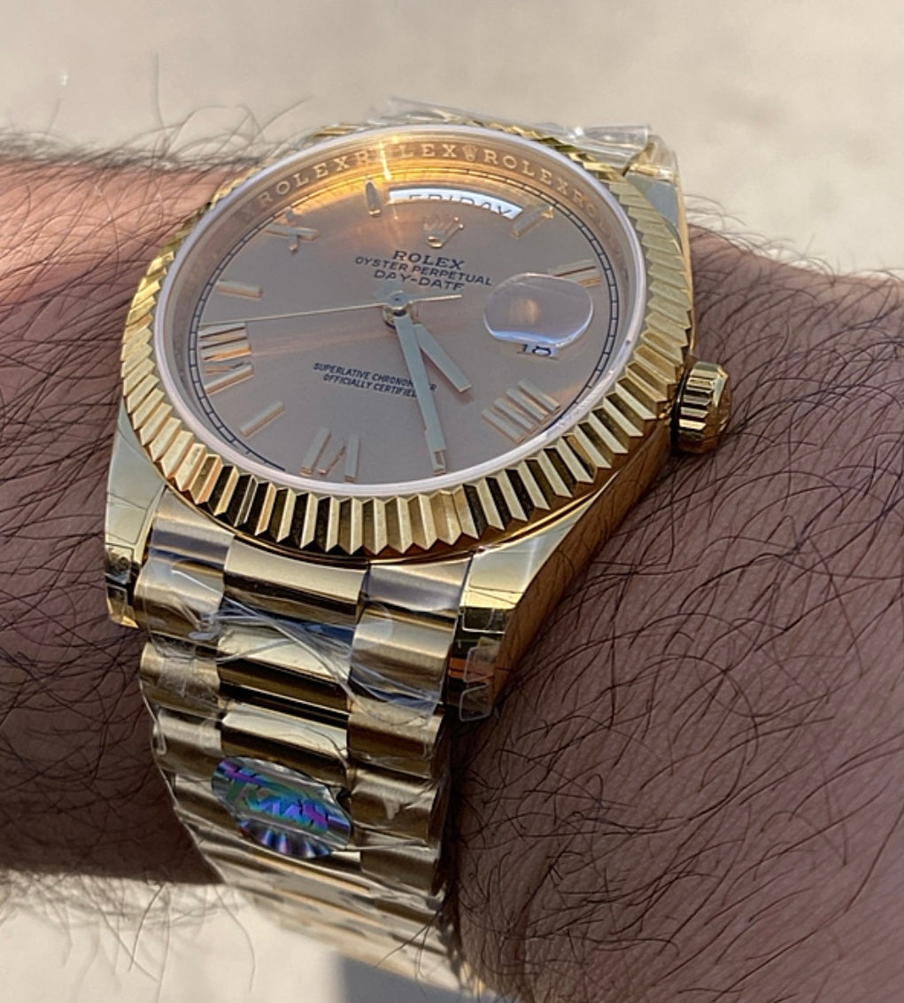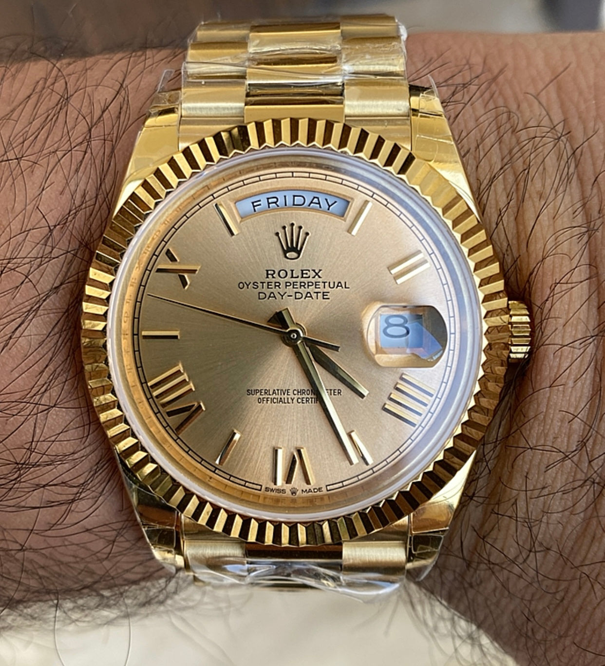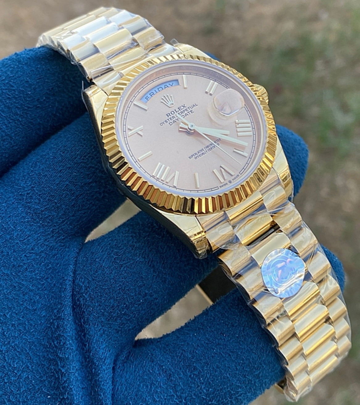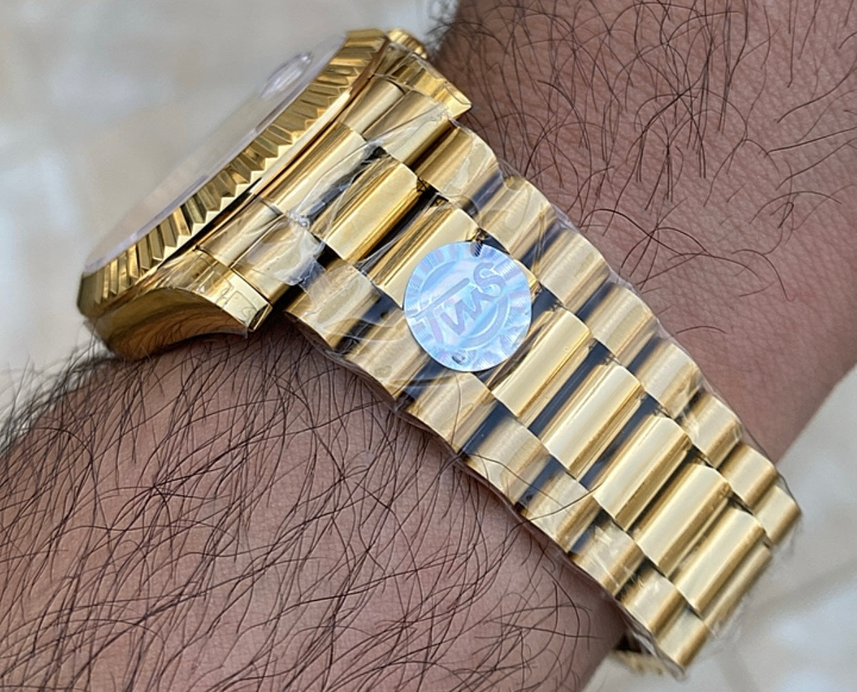 حبة واحدة في العراق- رولكس داي ديت فول ذهب اصفر طلاء ١٨ - الساعة طبق الأصل برقم تسلسلي اصلي و ماكينة سويسري مطابقة للأصل