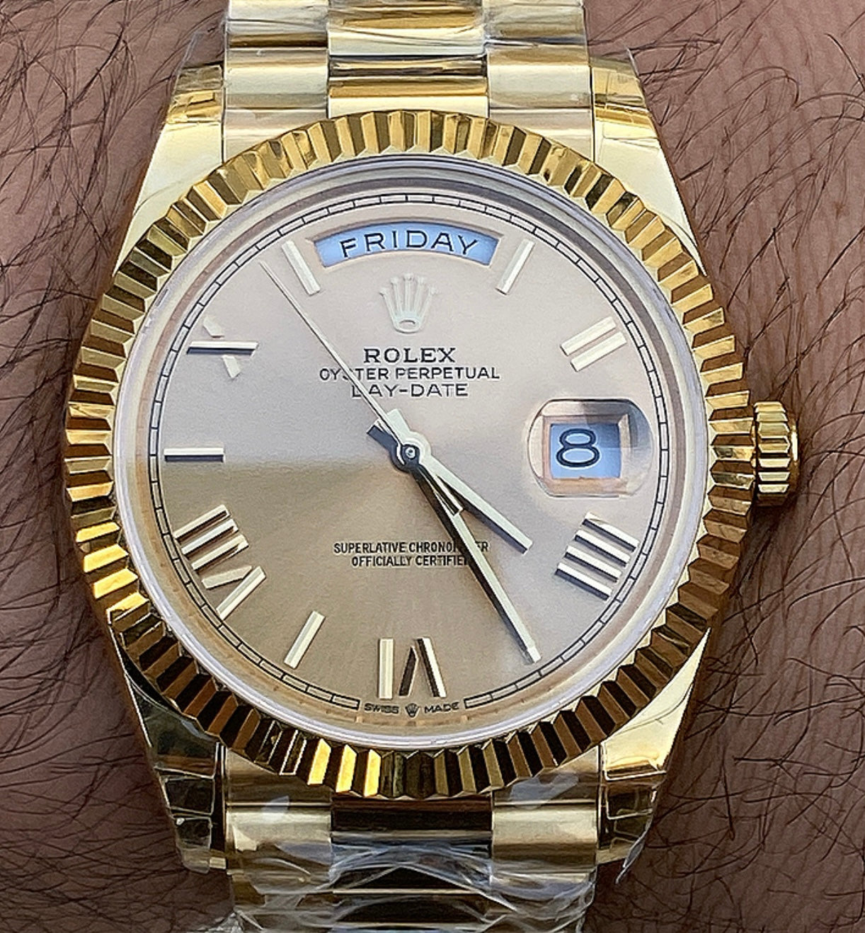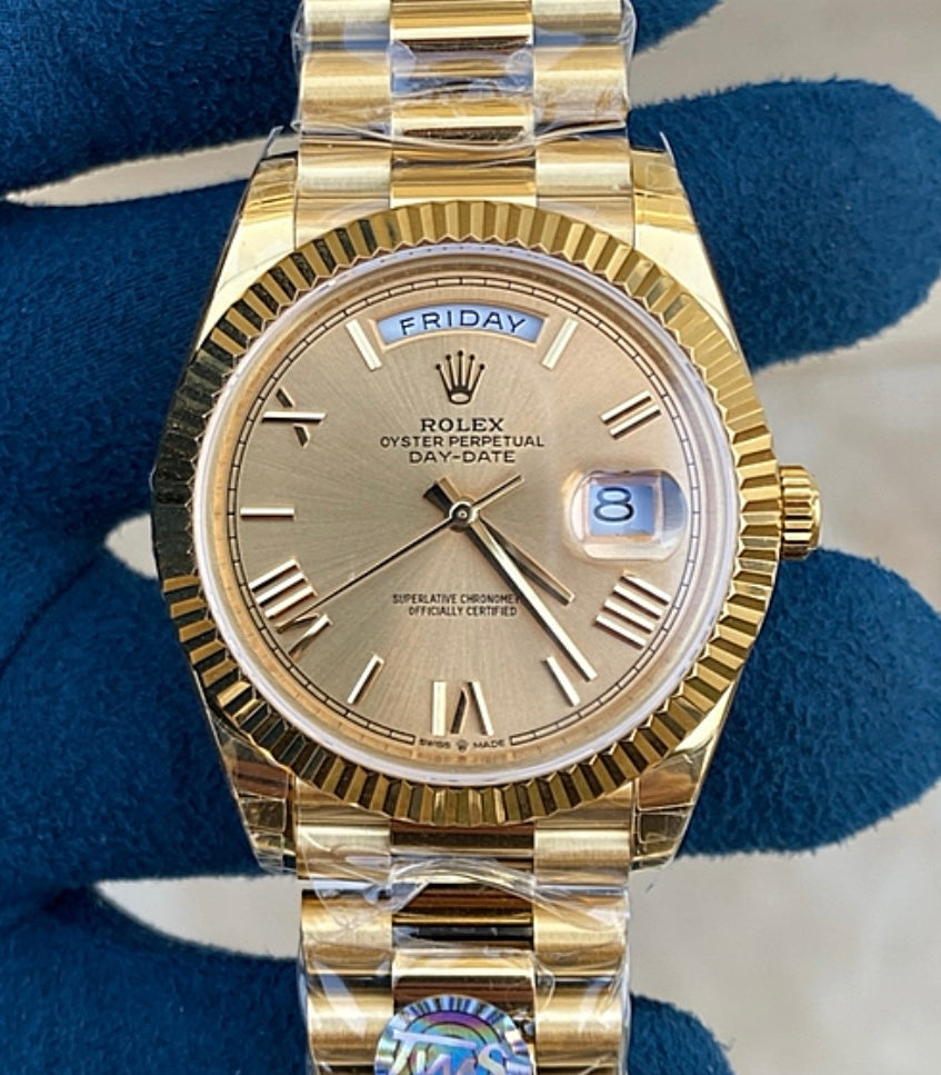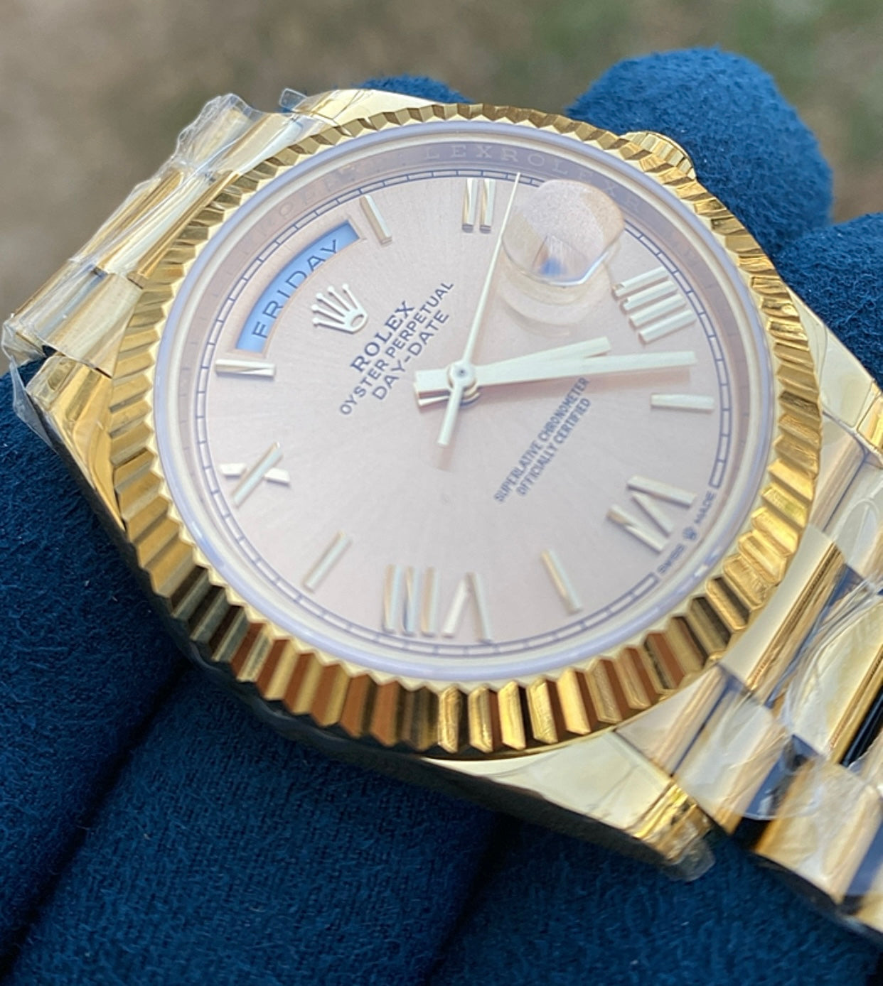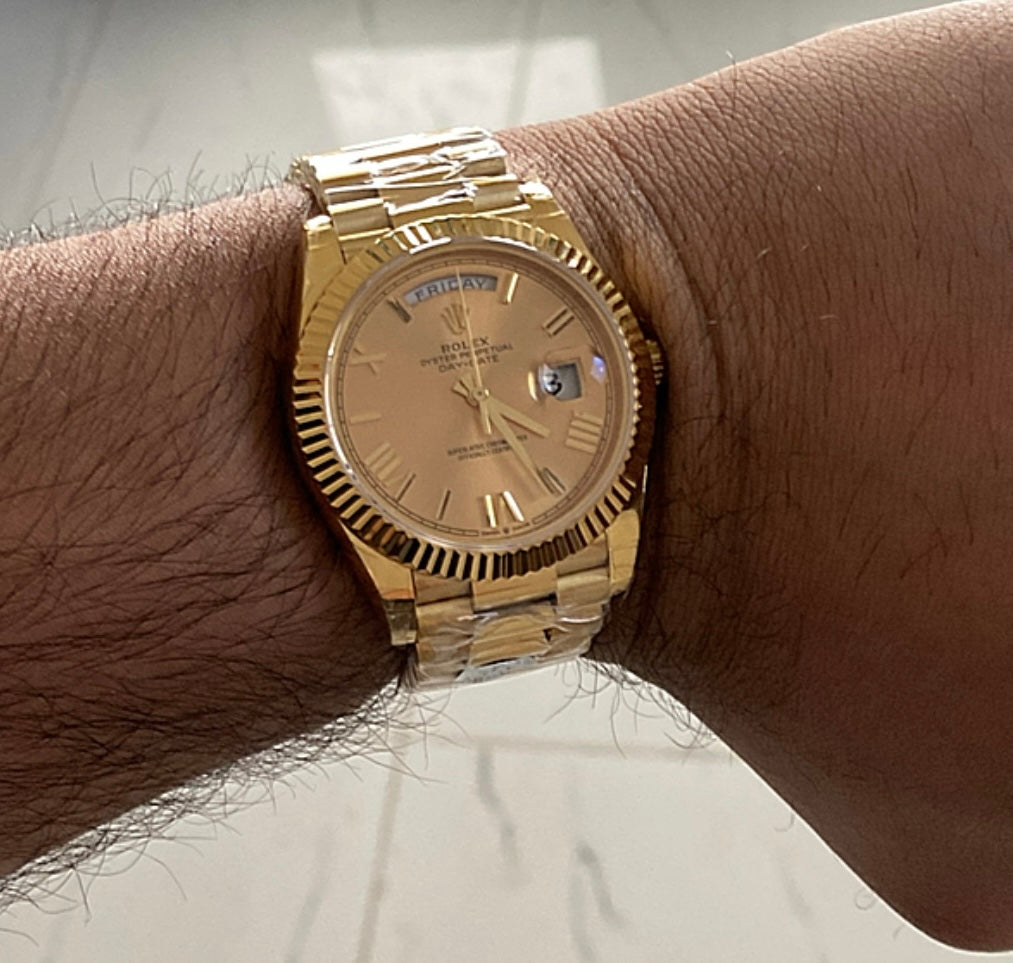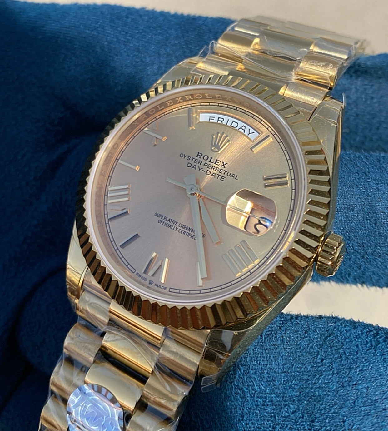 حبة واحدة في العراق- رولكس داي ديت فول ذهب اصفر طلاء ١٨ - الساعة طبق الأصل برقم تسلسلي اصلي و ماكينة سويسري مطابقة للأصل