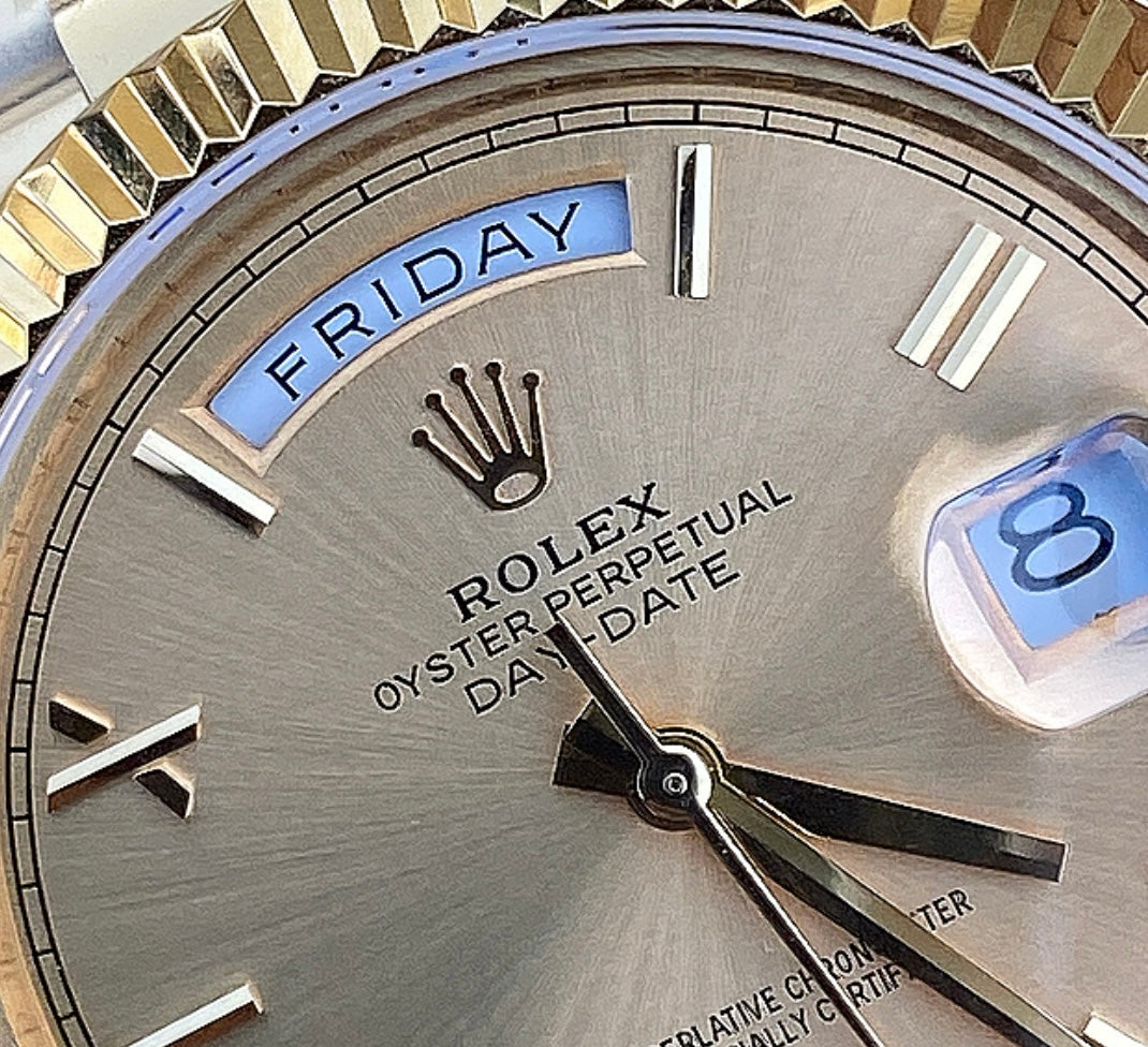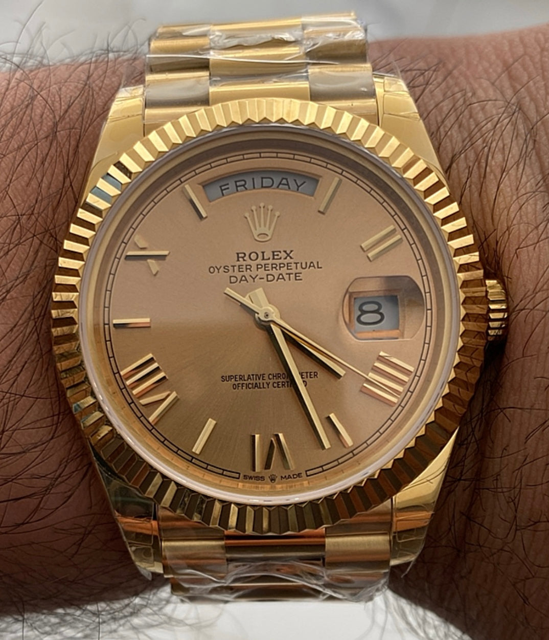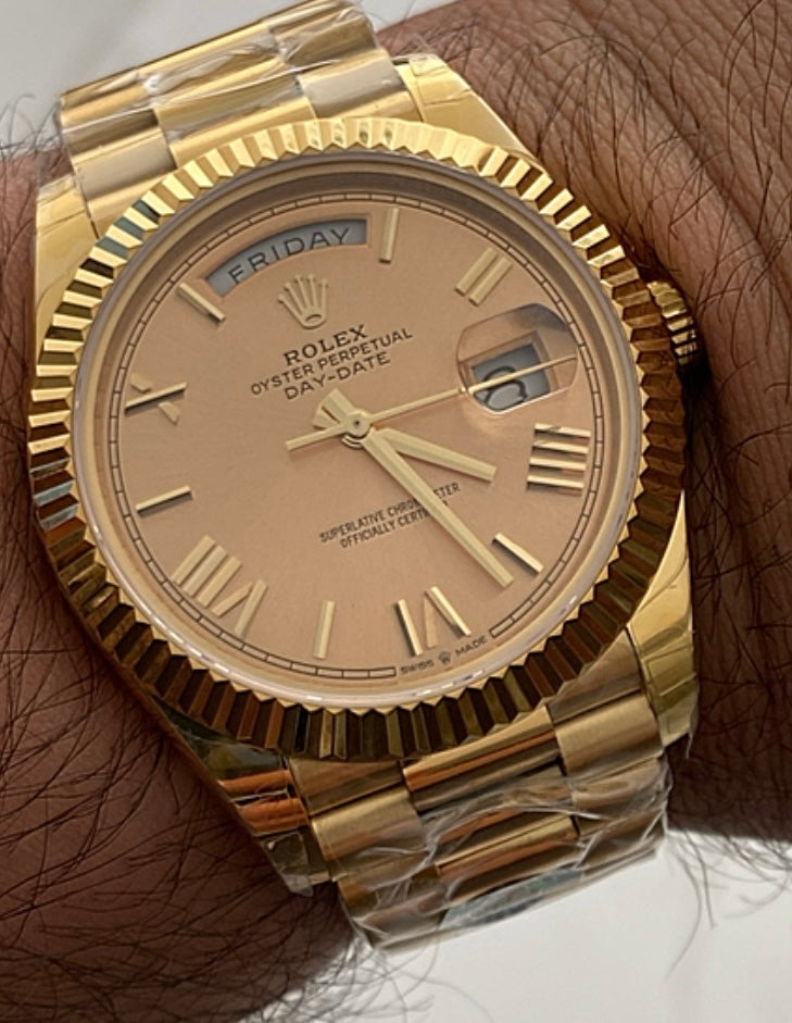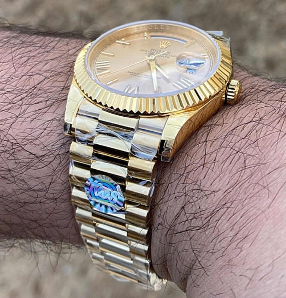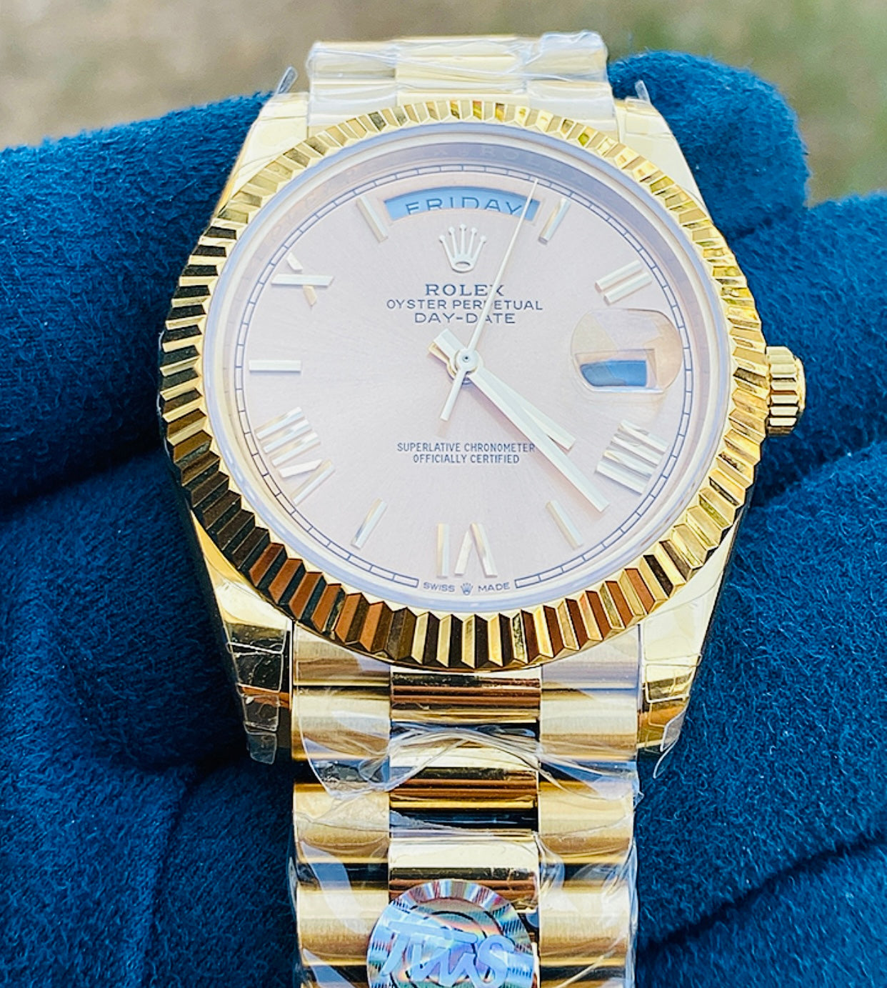 حبة واحدة في العراق- رولكس داي ديت فول ذهب اصفر طلاء ١٨ - الساعة طبق الأصل برقم تسلسلي اصلي و ماكينة سويسري مطابقة للأصل