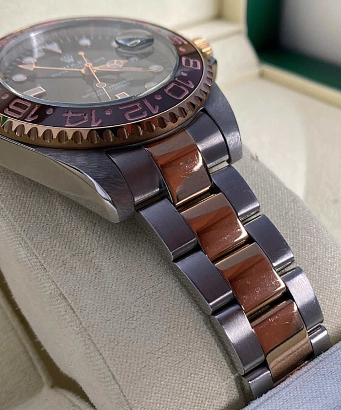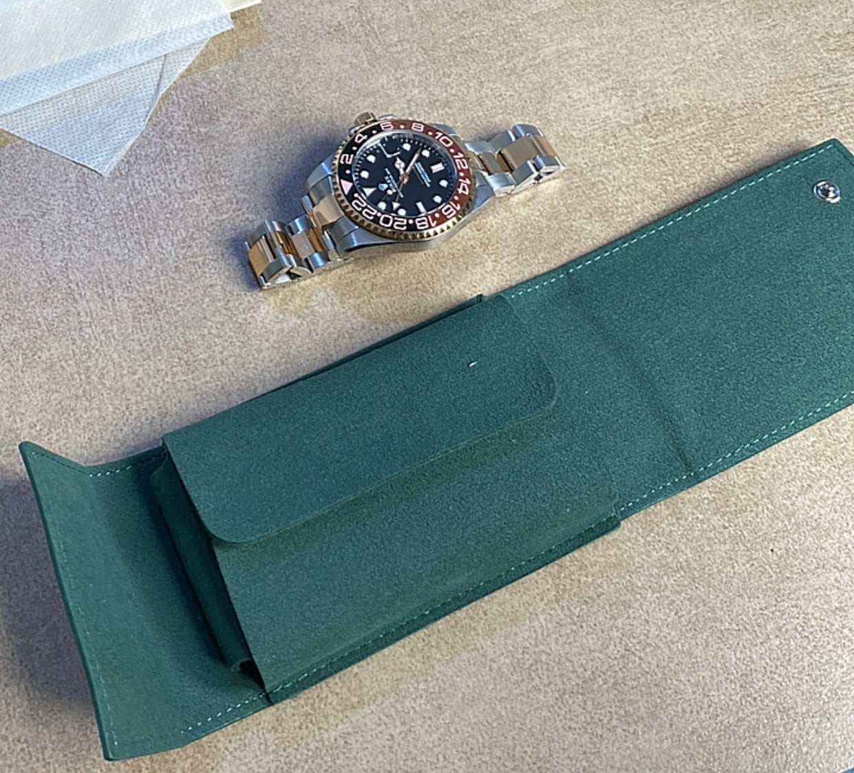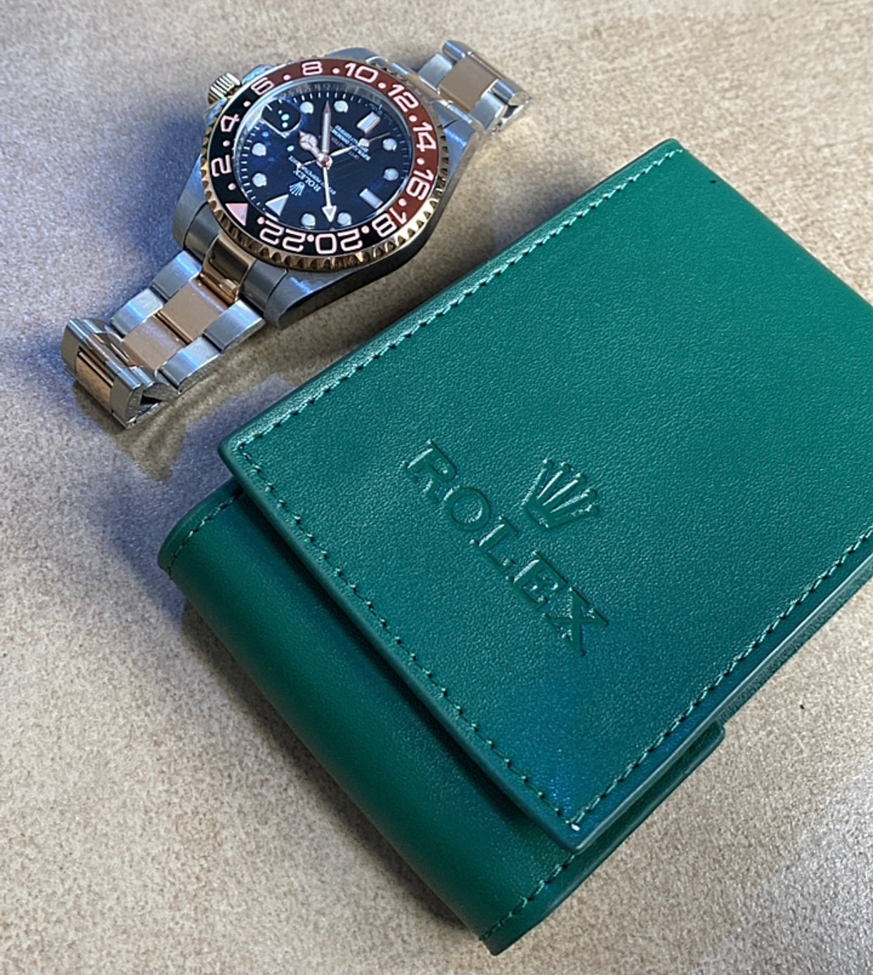 رولكس جي أم تي رووت بيير اصدار ٢٠٢٤ جراند ماستر - مستعملة بحالة الجديد وياها حافظة جلد من رولكس