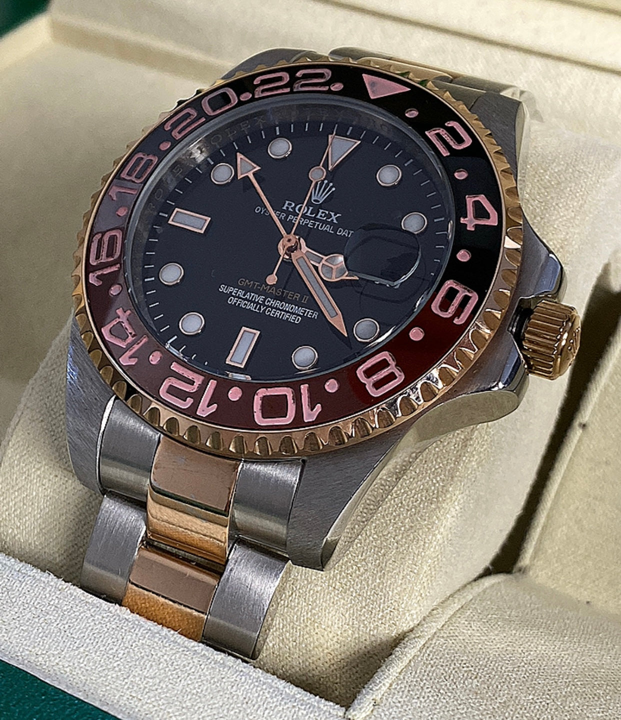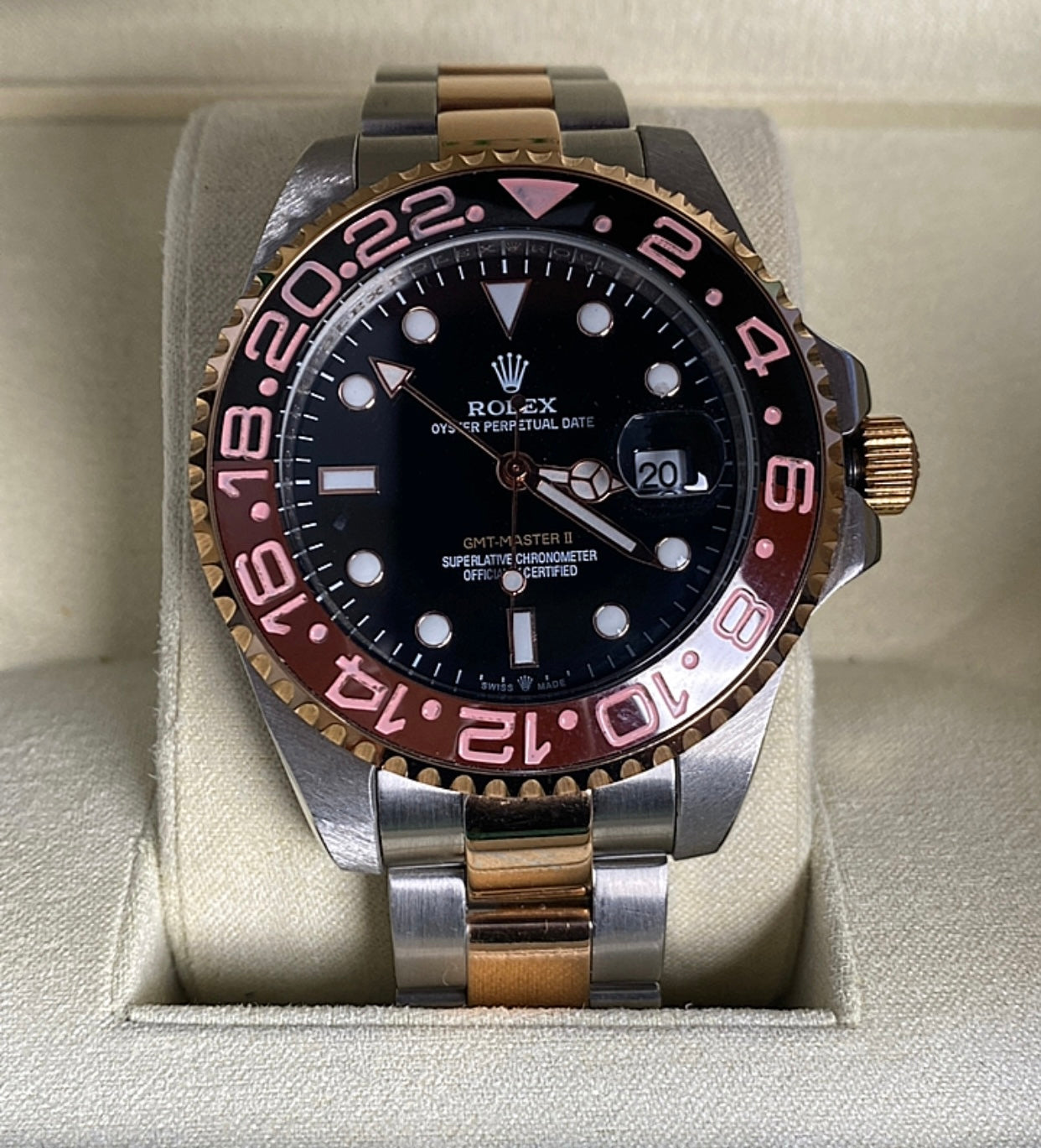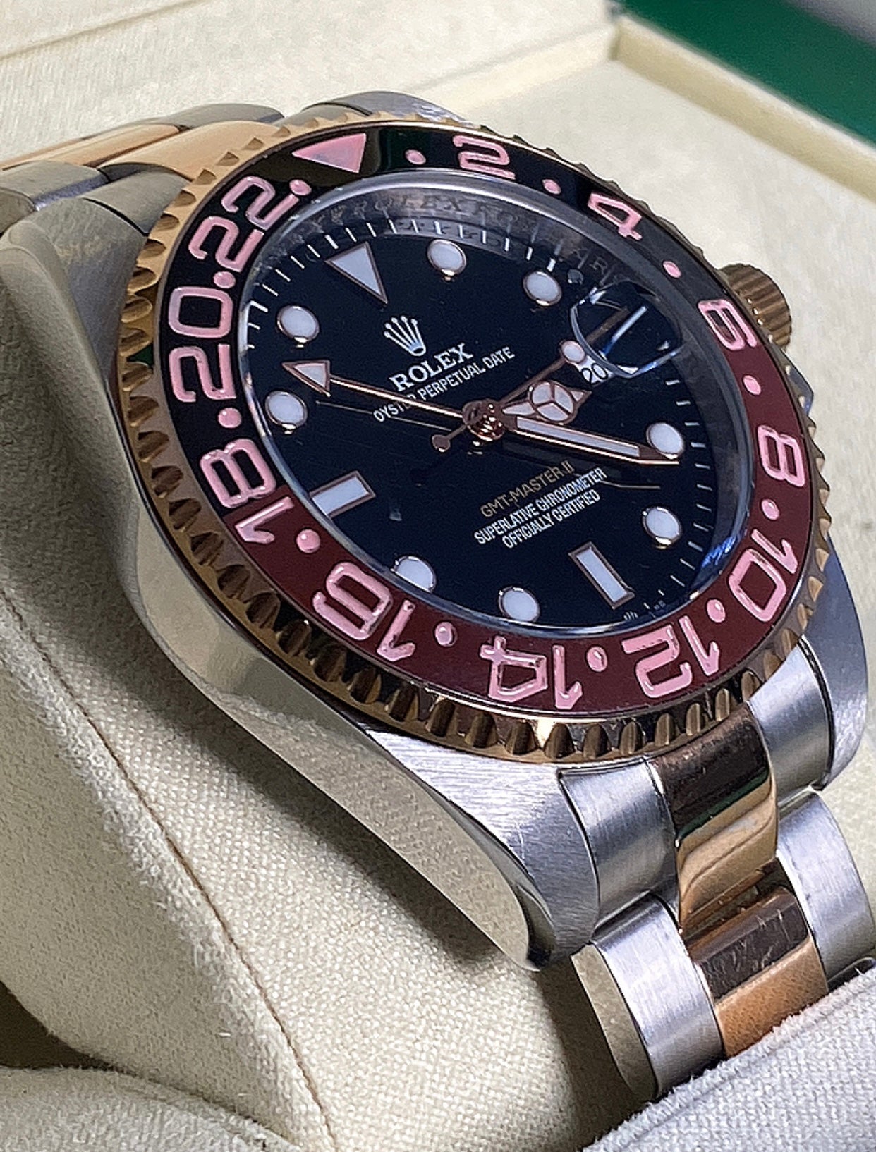 رولكس جي أم تي رووت بيير اصدار ٢٠٢٤ جراند ماستر - مستعملة بحالة الجديد وياها حافظة جلد من رولكس