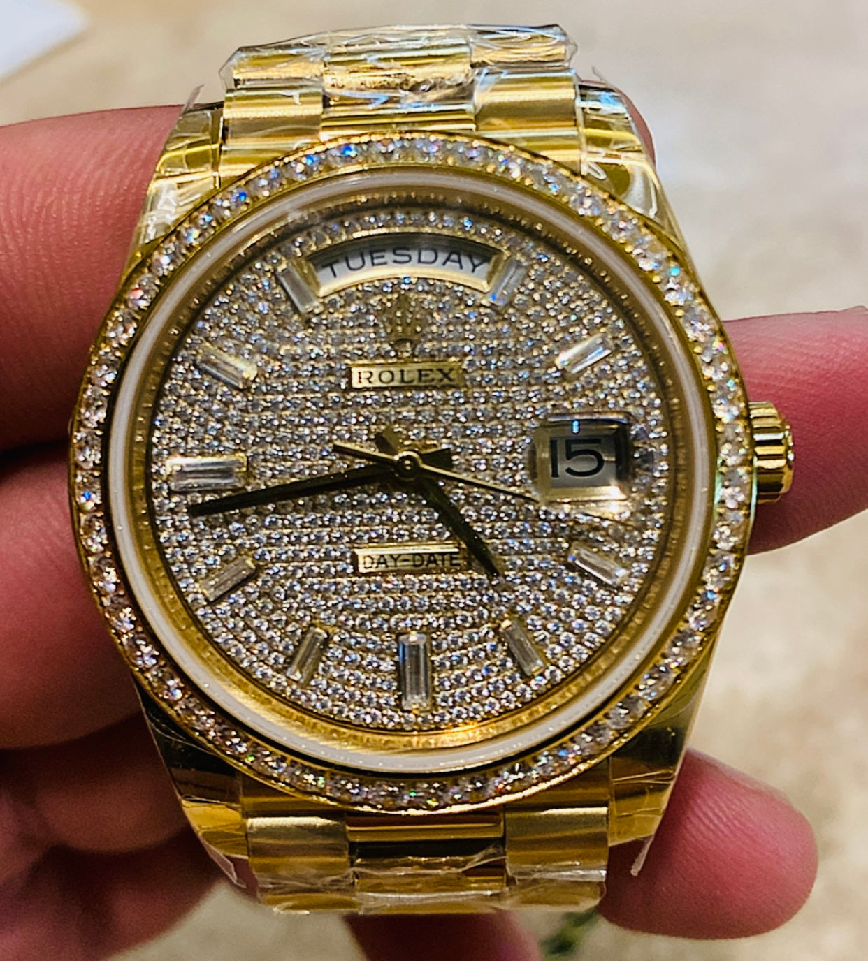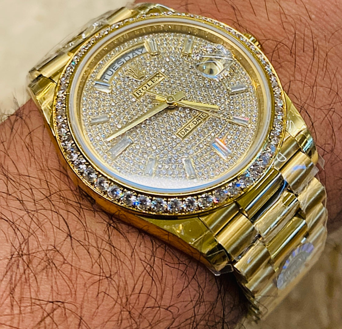 رولكس دايت ديت يالو جولد باڤيد دايال- ماكينة سويسري طبق طبق الأصل