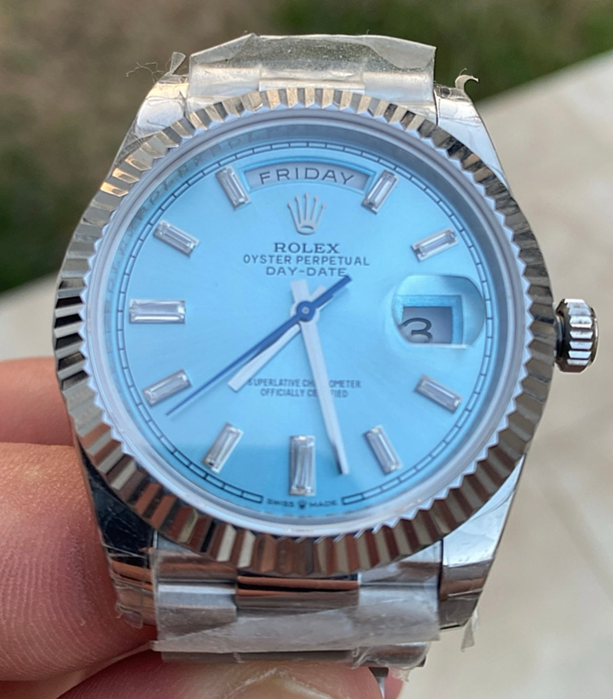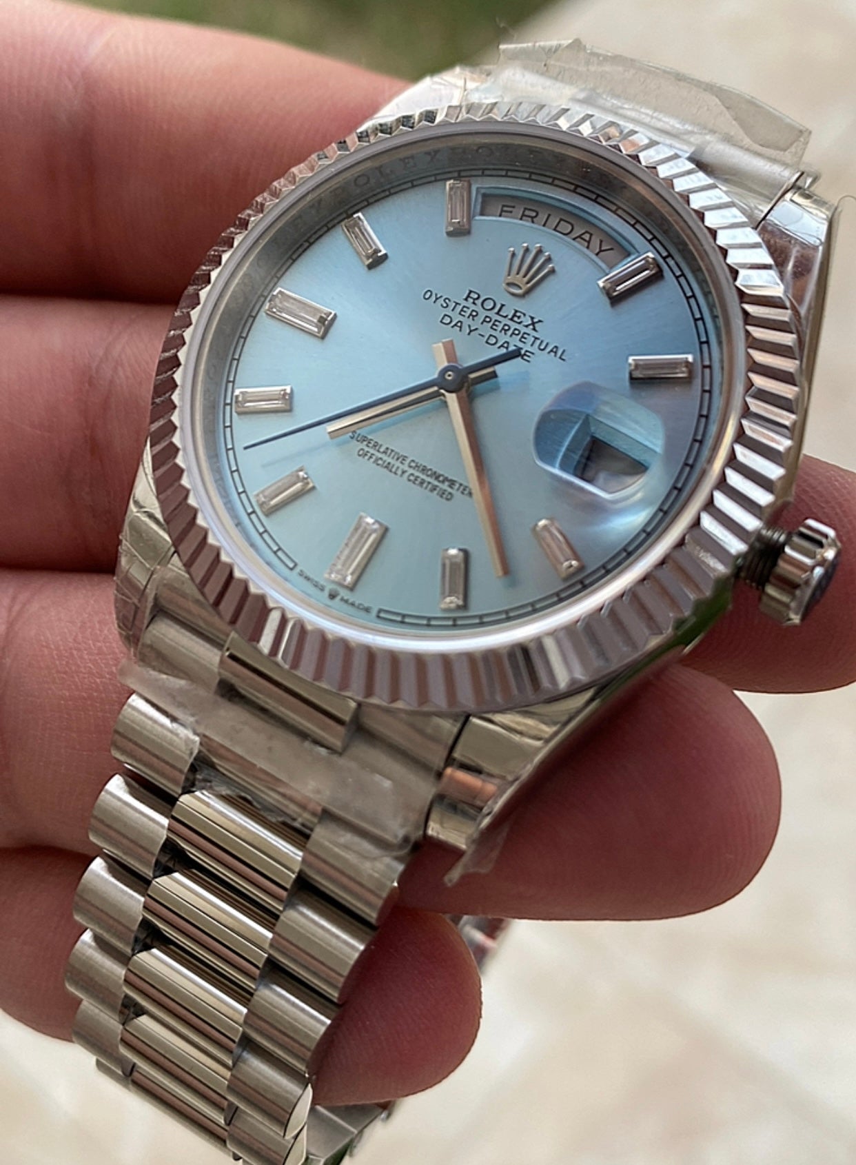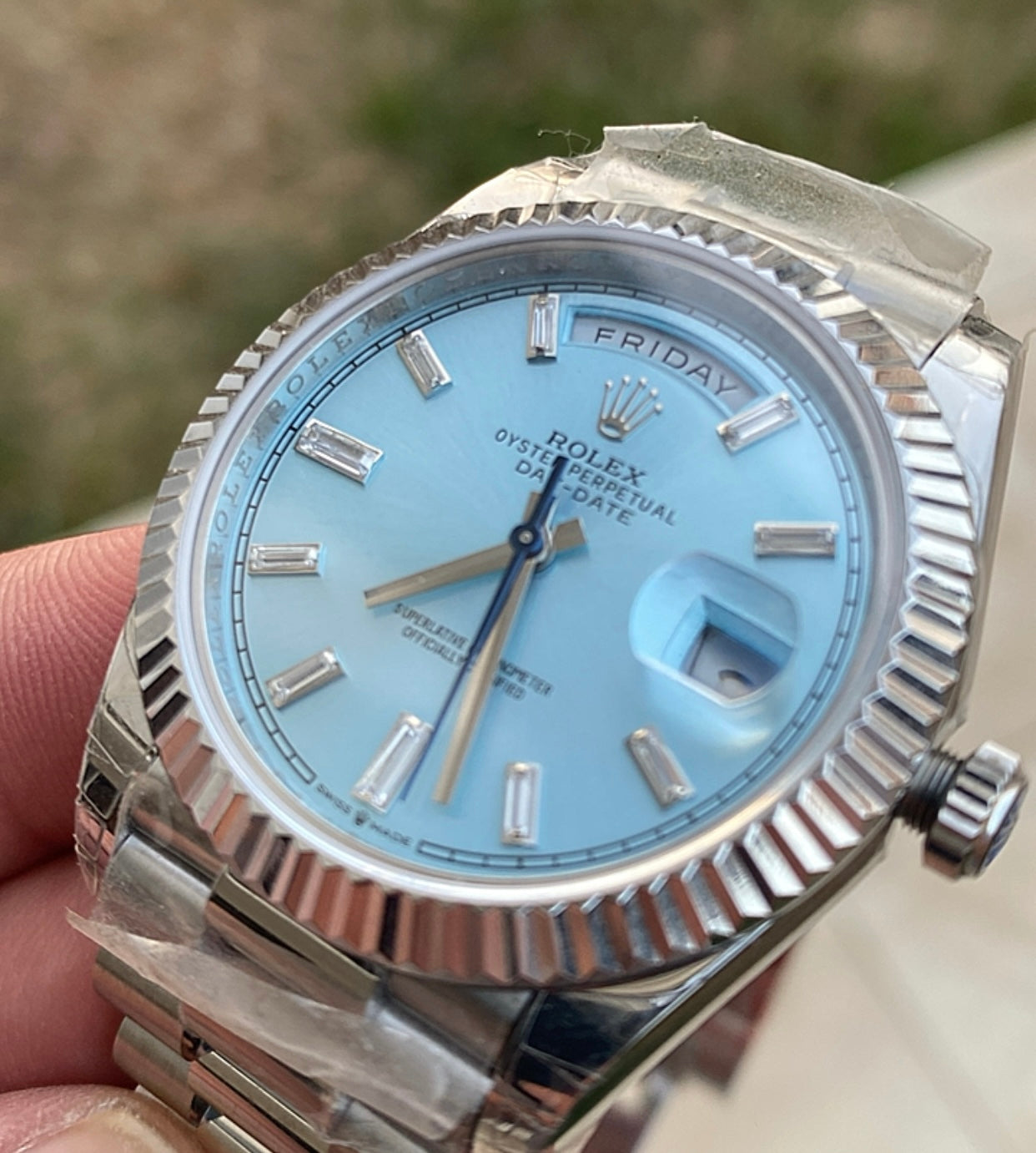رولكس داي ديت مينا ايس بلو- كلين طبق الاصل لاتفرق - ماكينة مطابقة لرواكس الاصلية - سيريال حقيقي محفور عالساعة