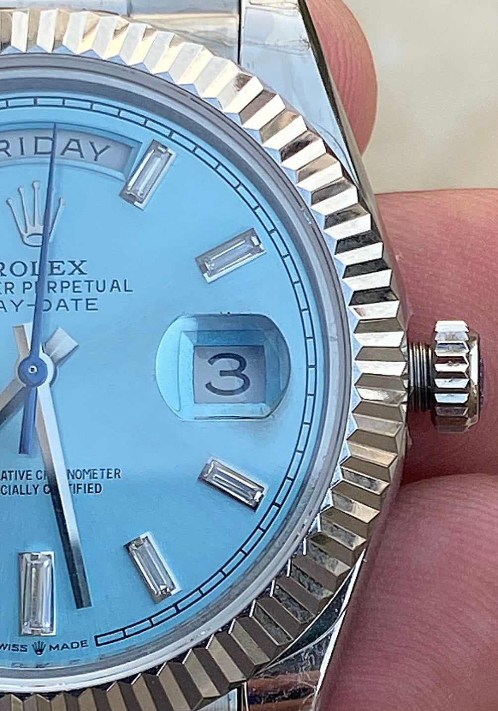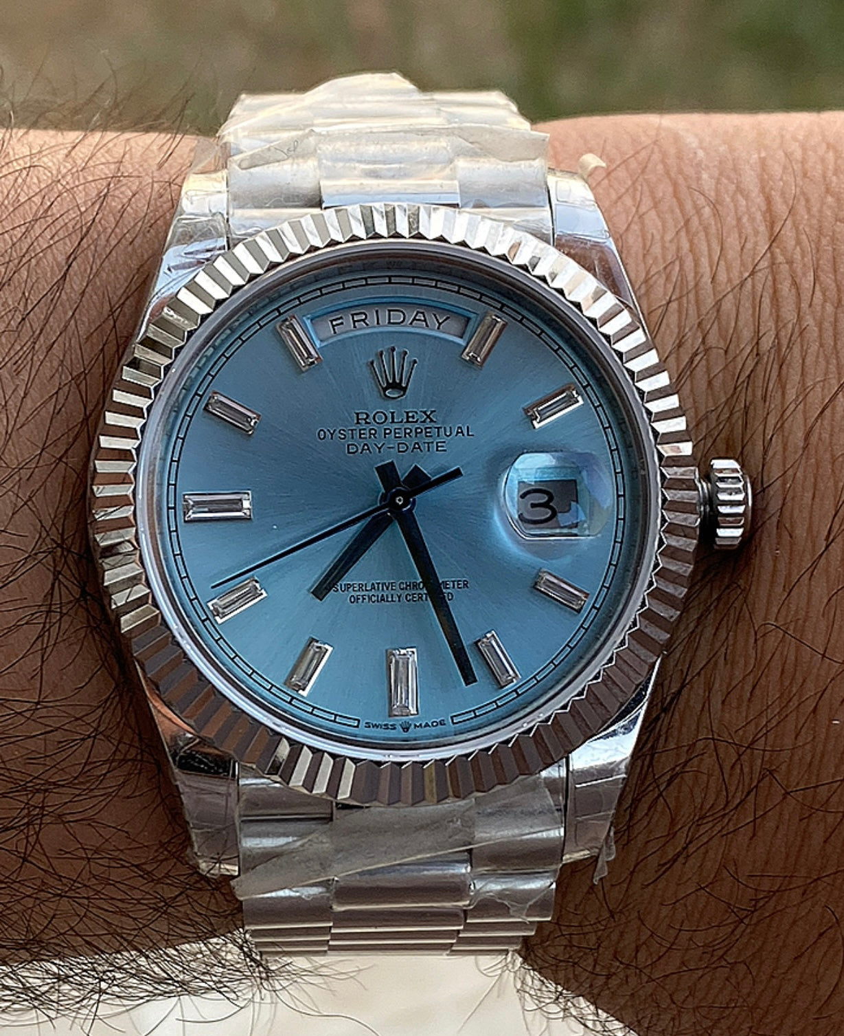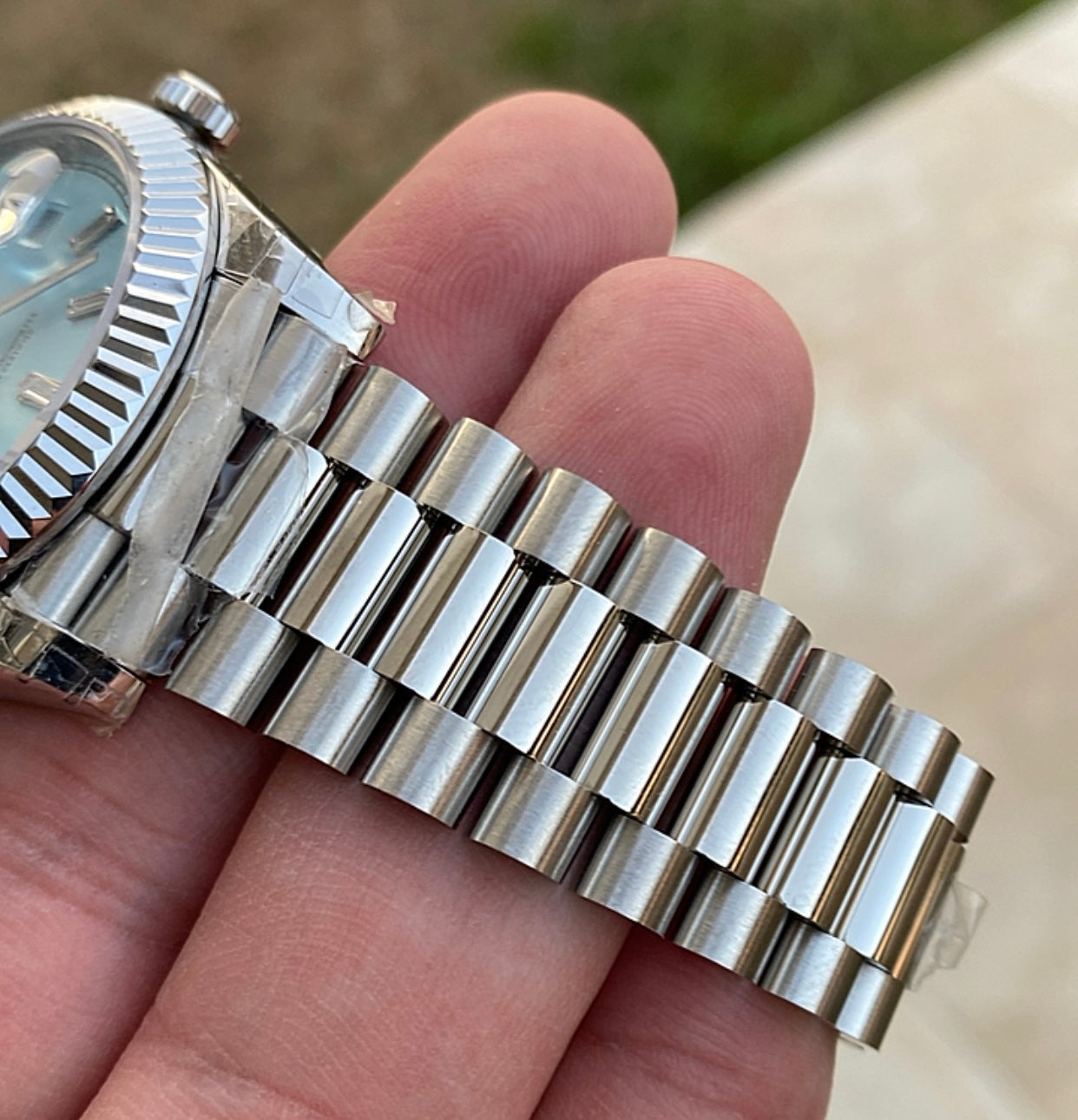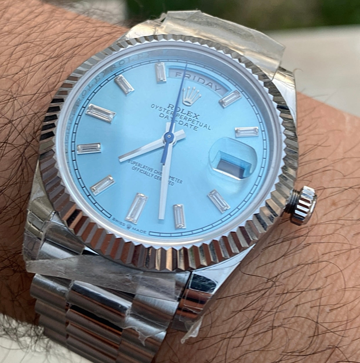 رولكس داي ديت مينا ايس بلو- كلين طبق الاصل لاتفرق - ماكينة مطابقة لرواكس الاصلية - سيريال حقيقي محفور عالساعة