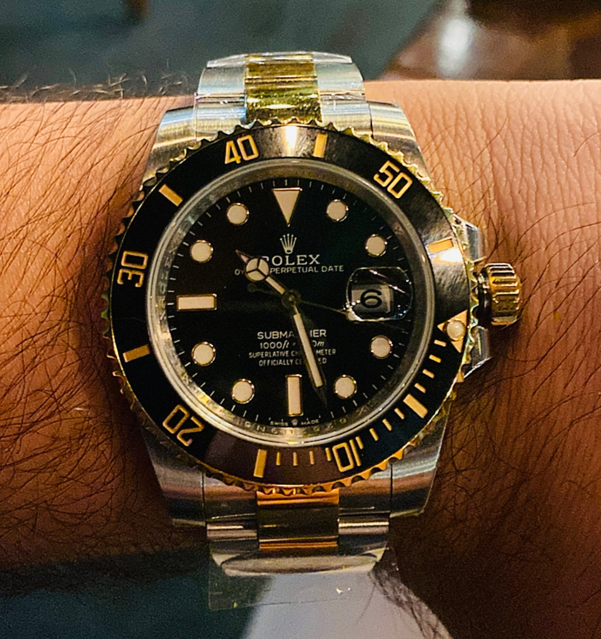 رولكس سابمارينر تو تون جولد كلين طبق الأصل - ماكينة سويسري - هذه صور الساعة الحقيقية