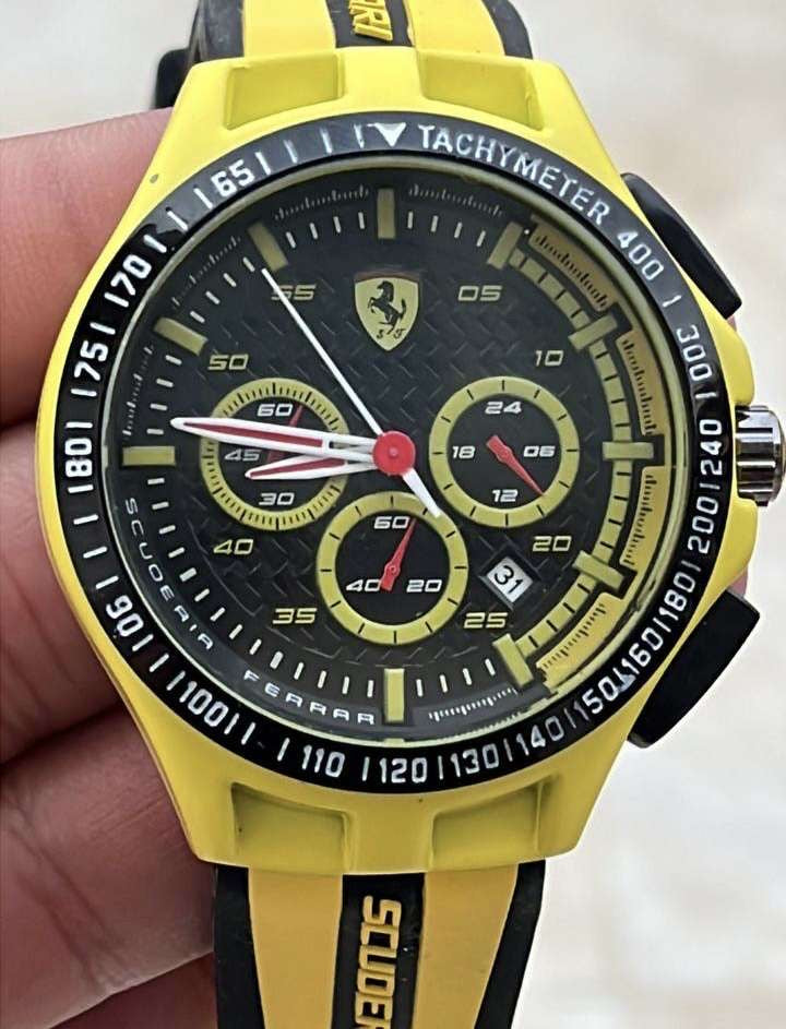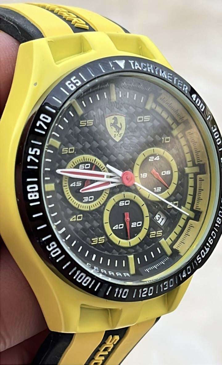 ساعة فيراري اصدار نادر باللون الاصفر جودة عالية