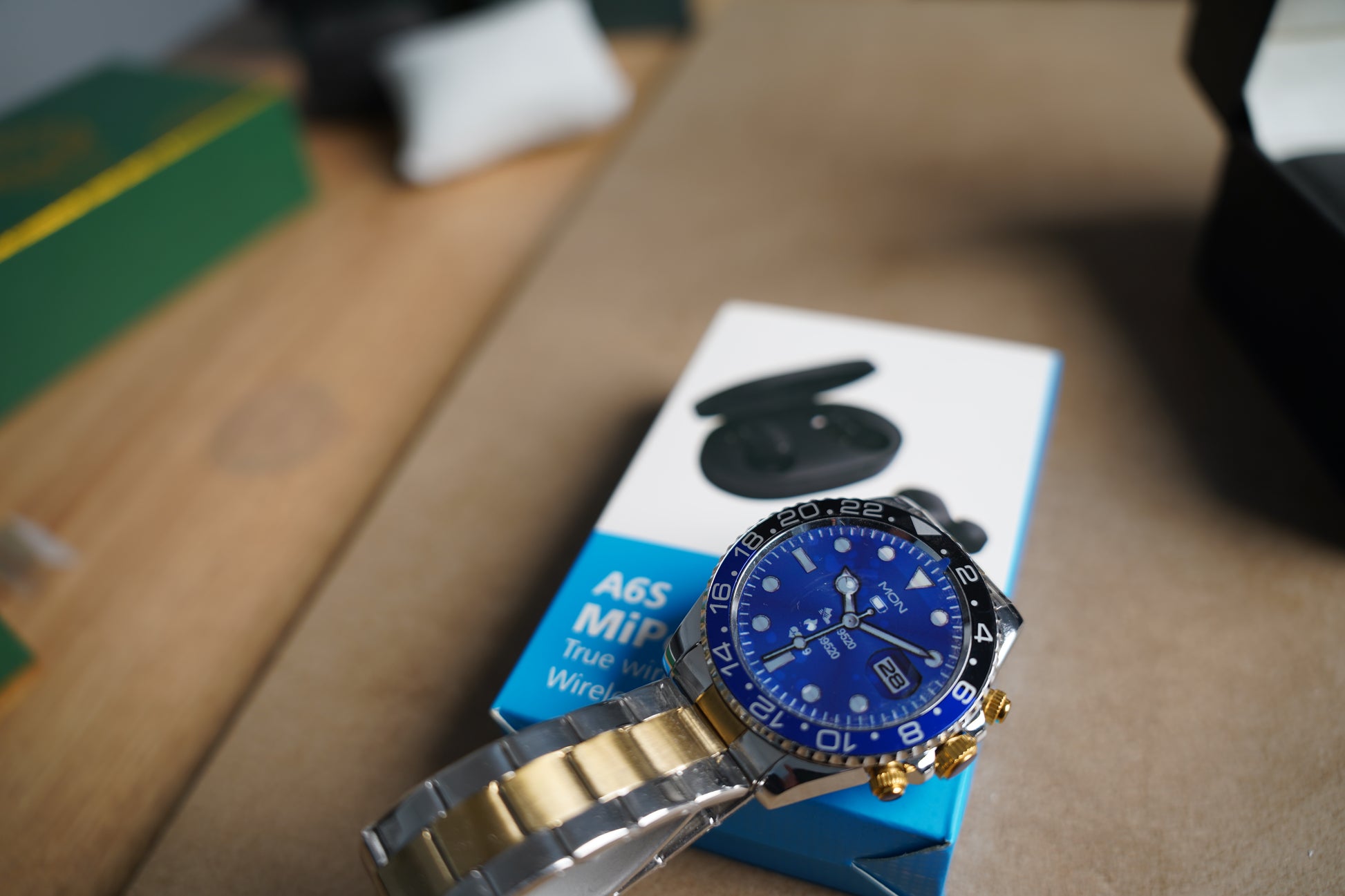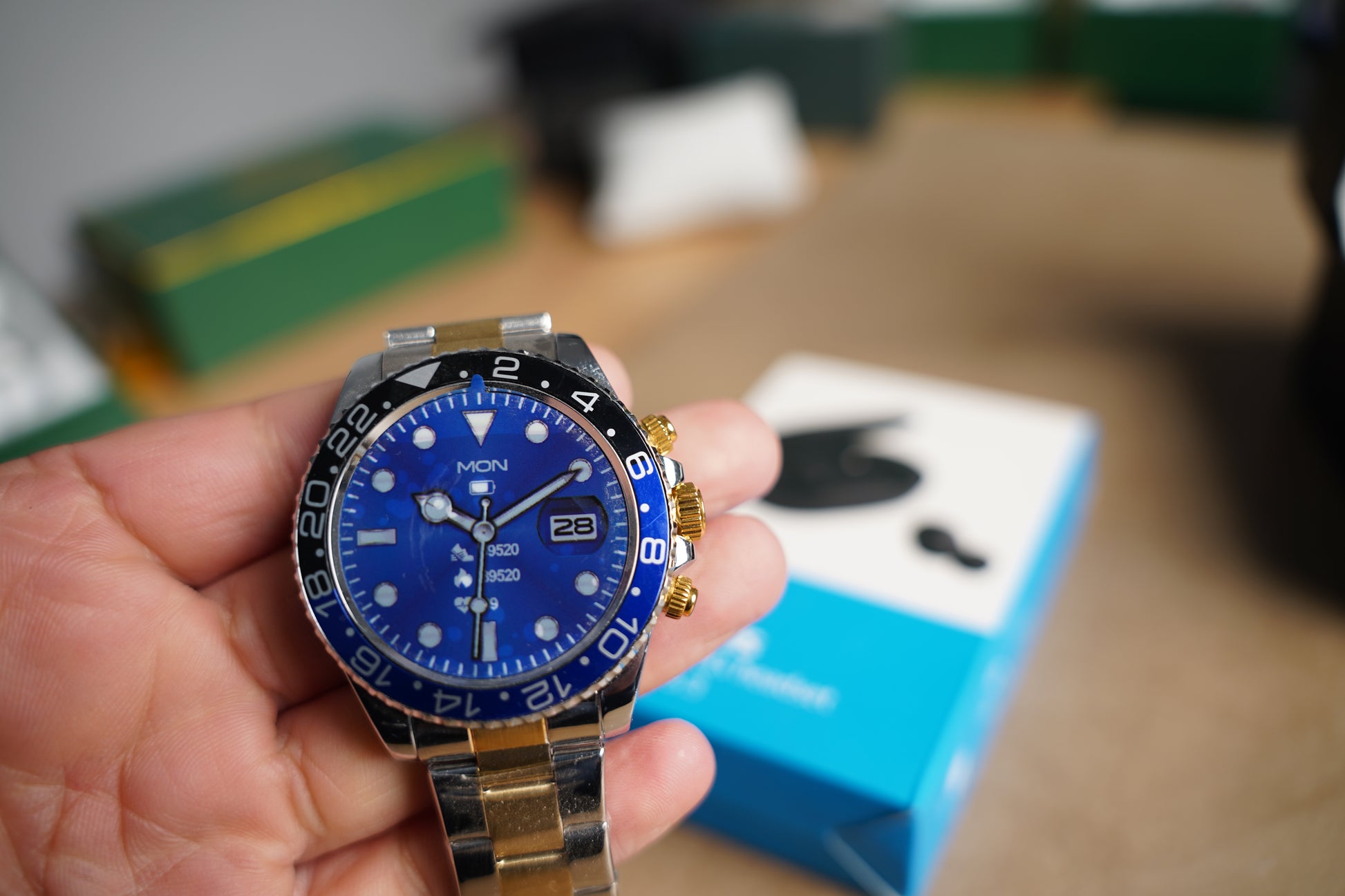ساعة رولكس باتمان الذكية الجيل الثالث ذهبي، تجمع بين الفخامة والتكنولوجيا بلمسة أنيقة وعمليّة، تساعدك بمتابعة يومك بكل سهولة. وياها هدية ماي بودز، سماعات لاسلكية بجودة عالية، حتى تستمتع بصوت نقي ويتناسب ويا ستايلك اليومي.