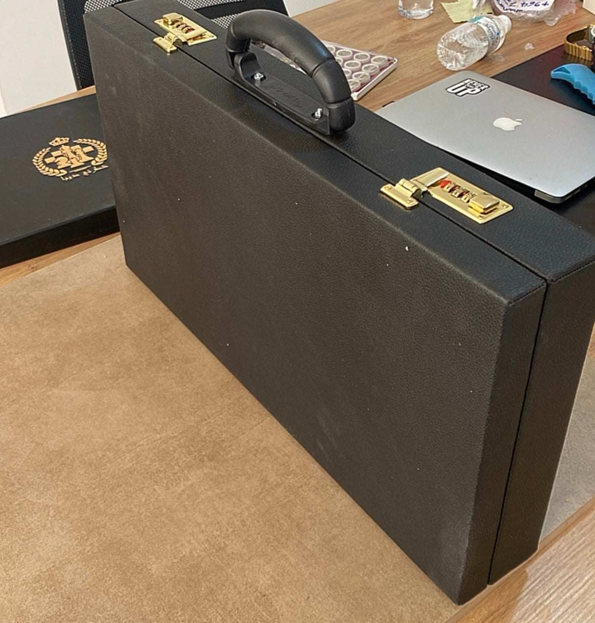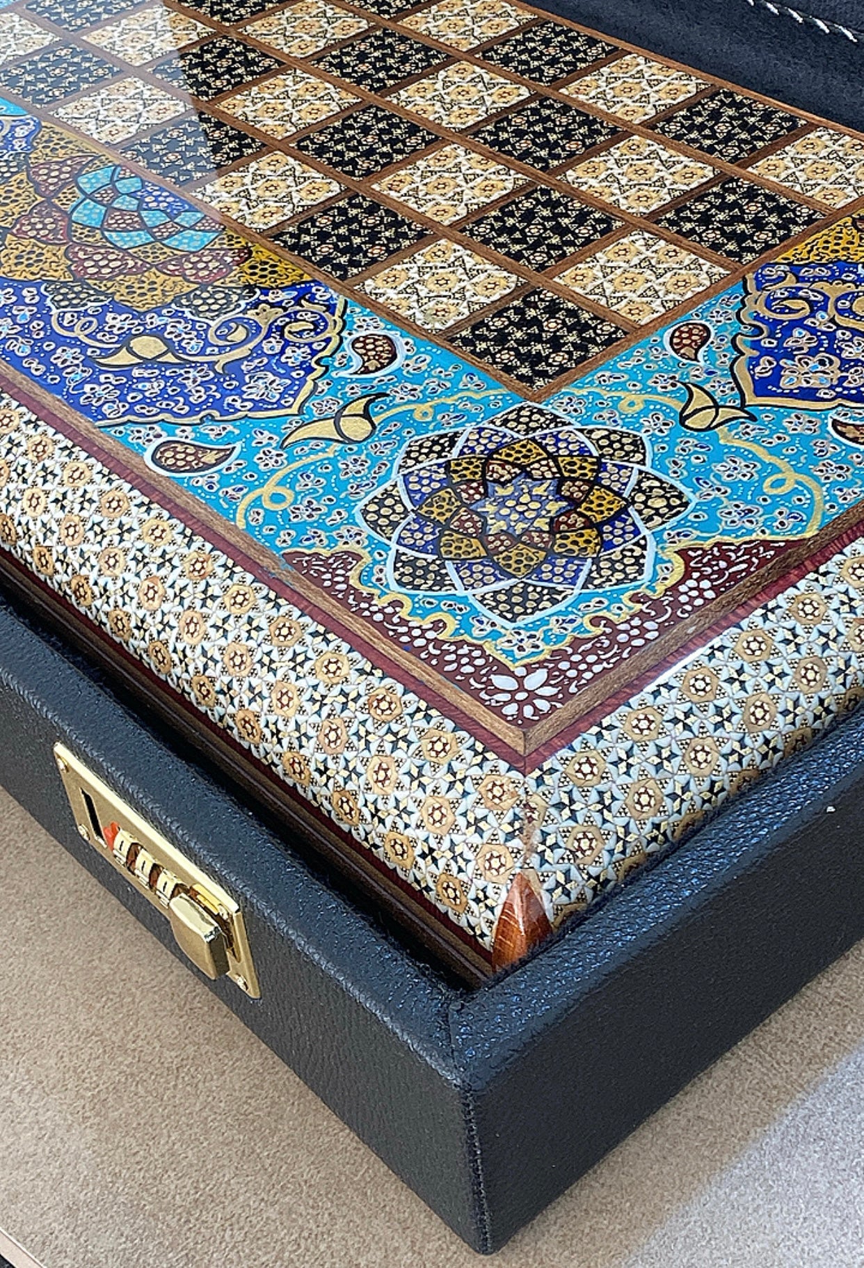 طاولي + شطرنج زخرفة سوداء راقية صناعة يدوية - جنطة جلد فاخرة السعر بدون احجار شطرنج ٥٥٠ الف ومع احجار شطرنج ٦٥٠ الف