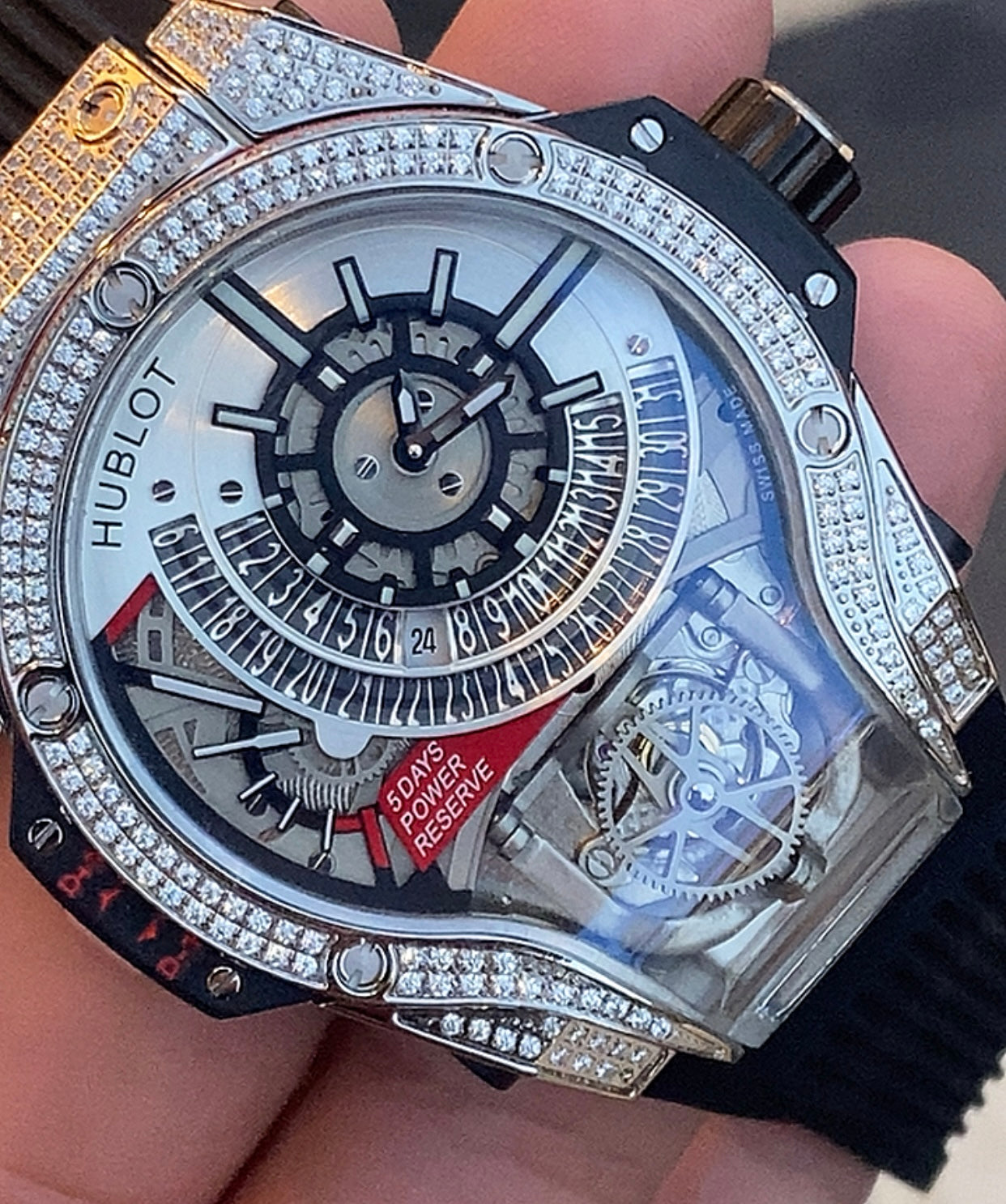 هوبلوت بيجبانج فلوتينج توربيون سلڤر دايموند ( زركونيا نقي و الساعة اعلى جودة بعد الاصلية ) - صور حقيقية بالموبايل بدون تعديل (السعر بالدينار الاردني 600 دينار)