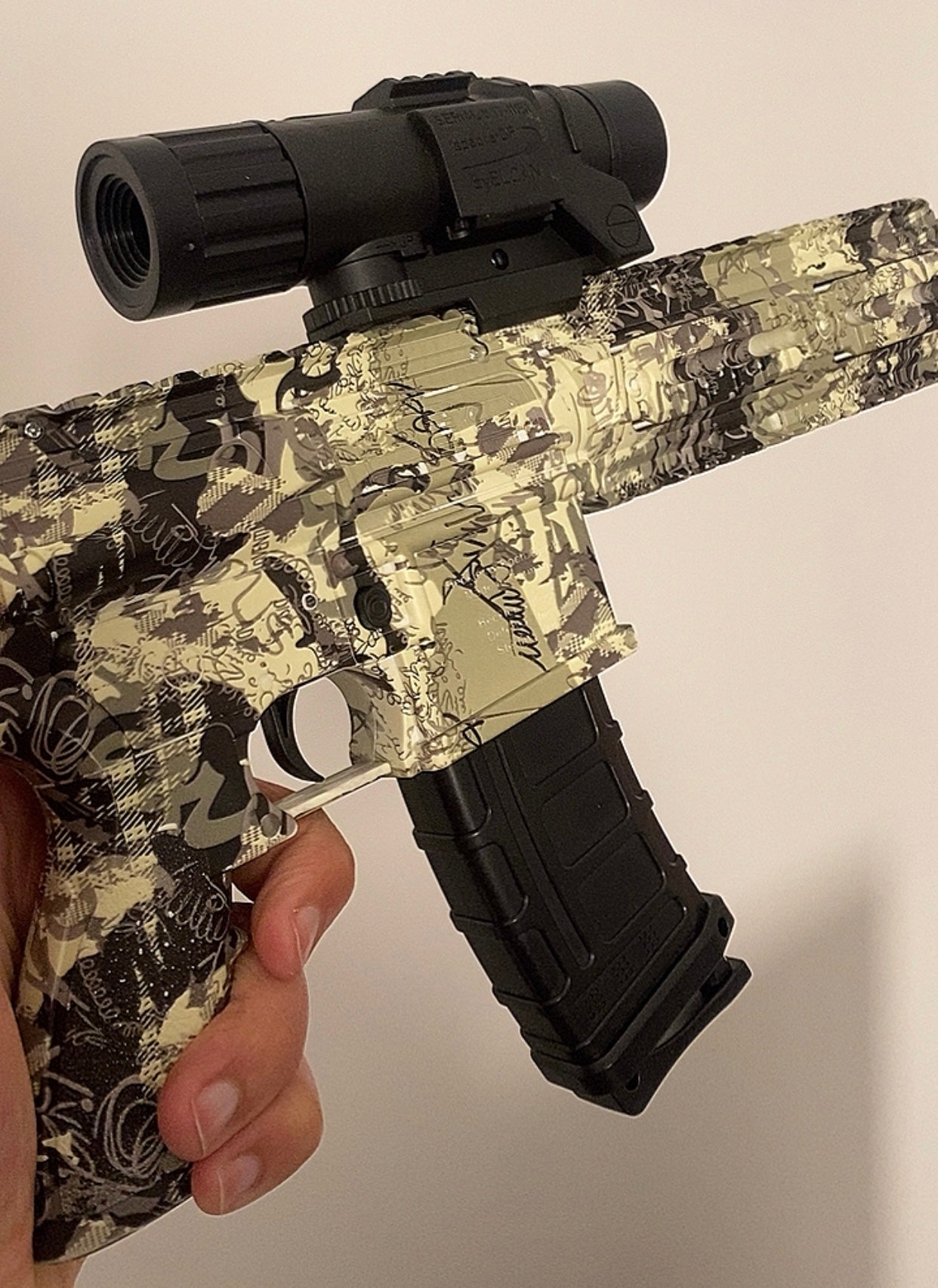 بندقية رش بكرات الماء M416 مستوحاة من تصميم بندقية HK416 الشهيرة، تأتي هذه اللعبة بتصميم واقعي وأداء ممتاز لإطلاق كرات الماء، مما يجعلها مثالية للعب في الهواء الطلق. تتميز بقوة دفع عالية ودقة في التصويب، وهي آمنة للاستخدام للأطفال والكبار، لتجربة ممتعة ومليئة بالإثارة.