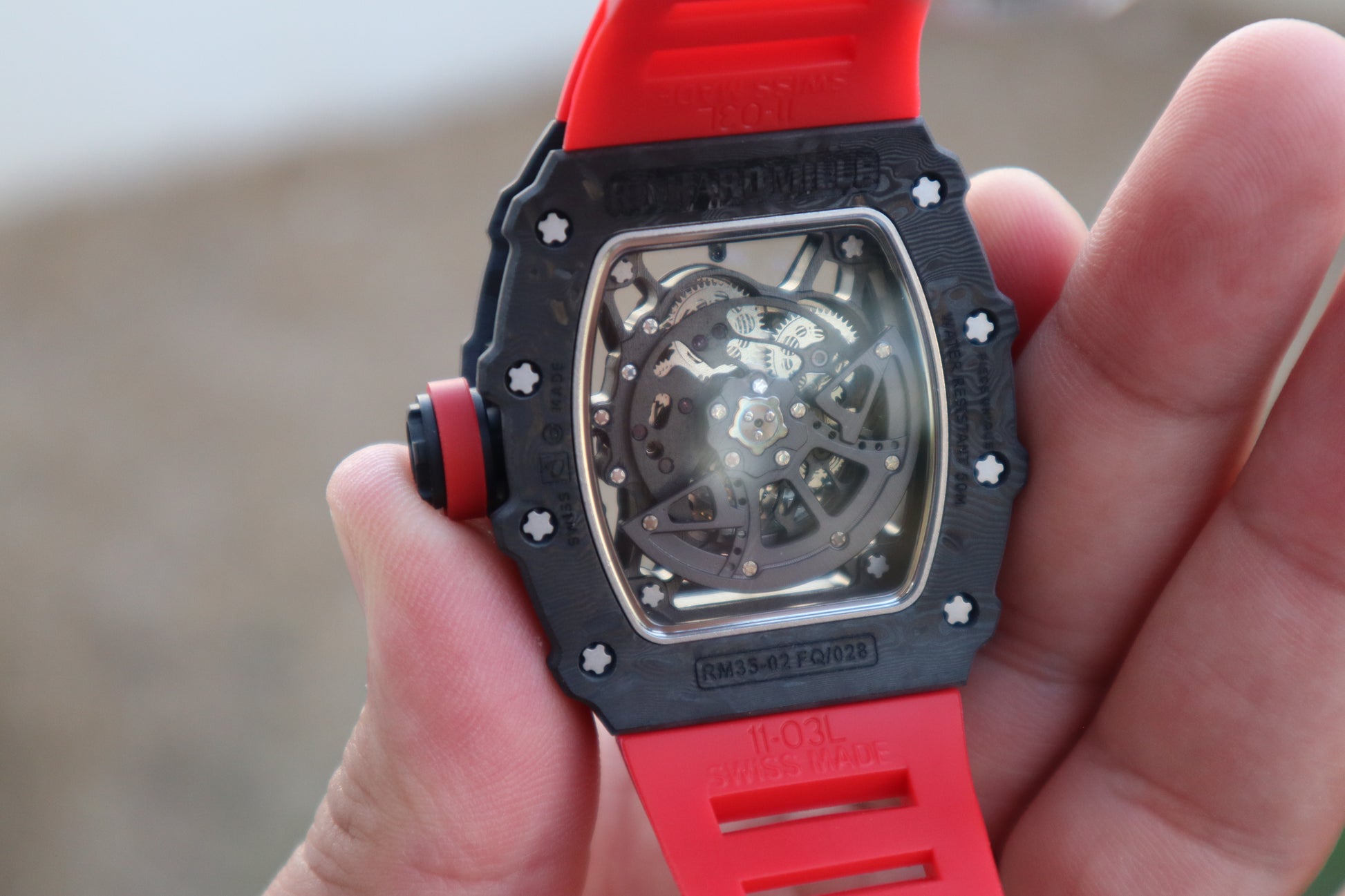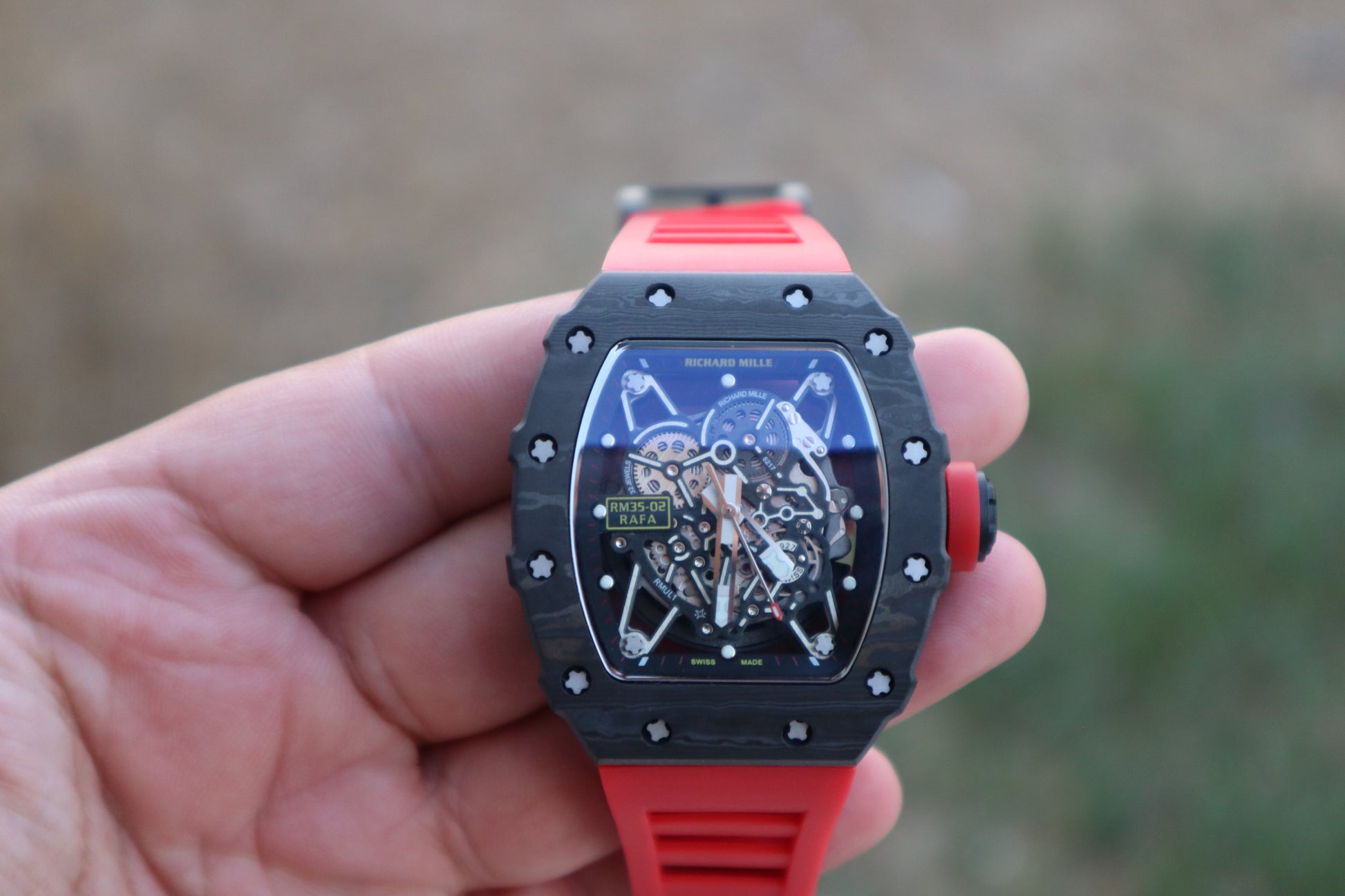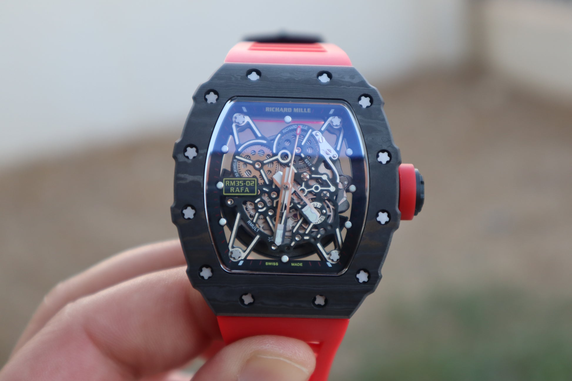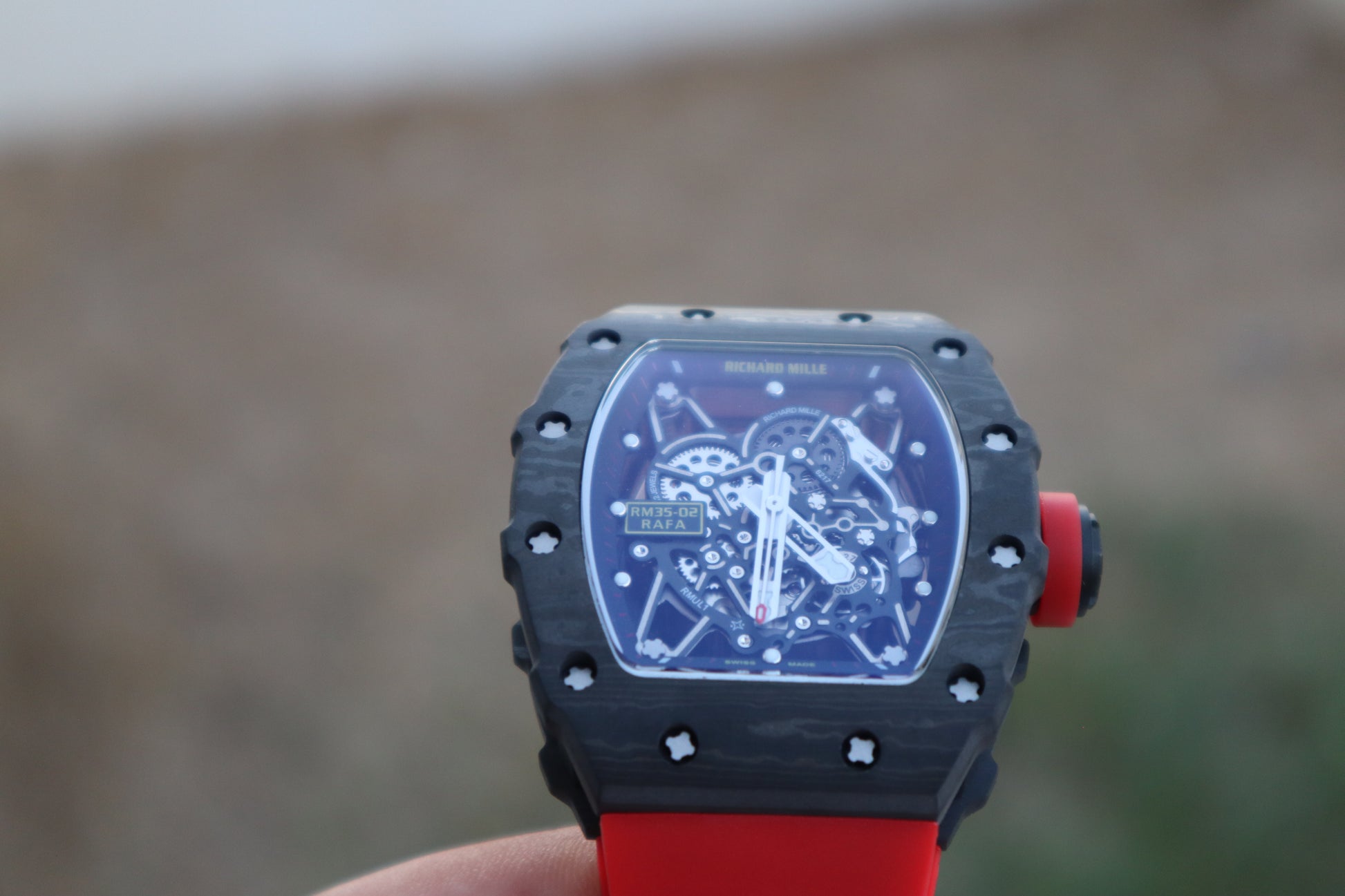 RM 35-02 RAFA - ريتشارد ميل اصدار ليميتد رافايل مادال ستراب احمر (السعر بالاردني 550 دينار واصلة لعمان)