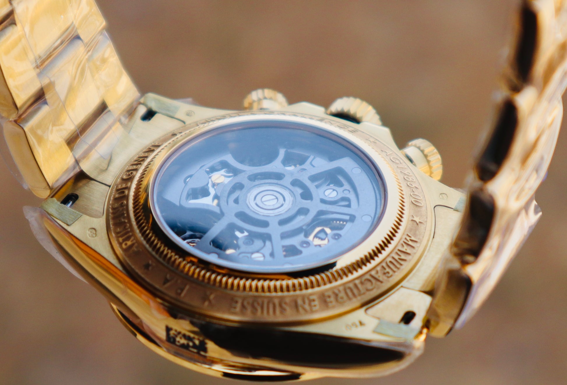 Rolex Daytona Yellow Gold Ruby - رولكس دايتونا ذهب اصفر ياقوت اخضر طبق الأصل ماكينة سويسري نادرة جداً