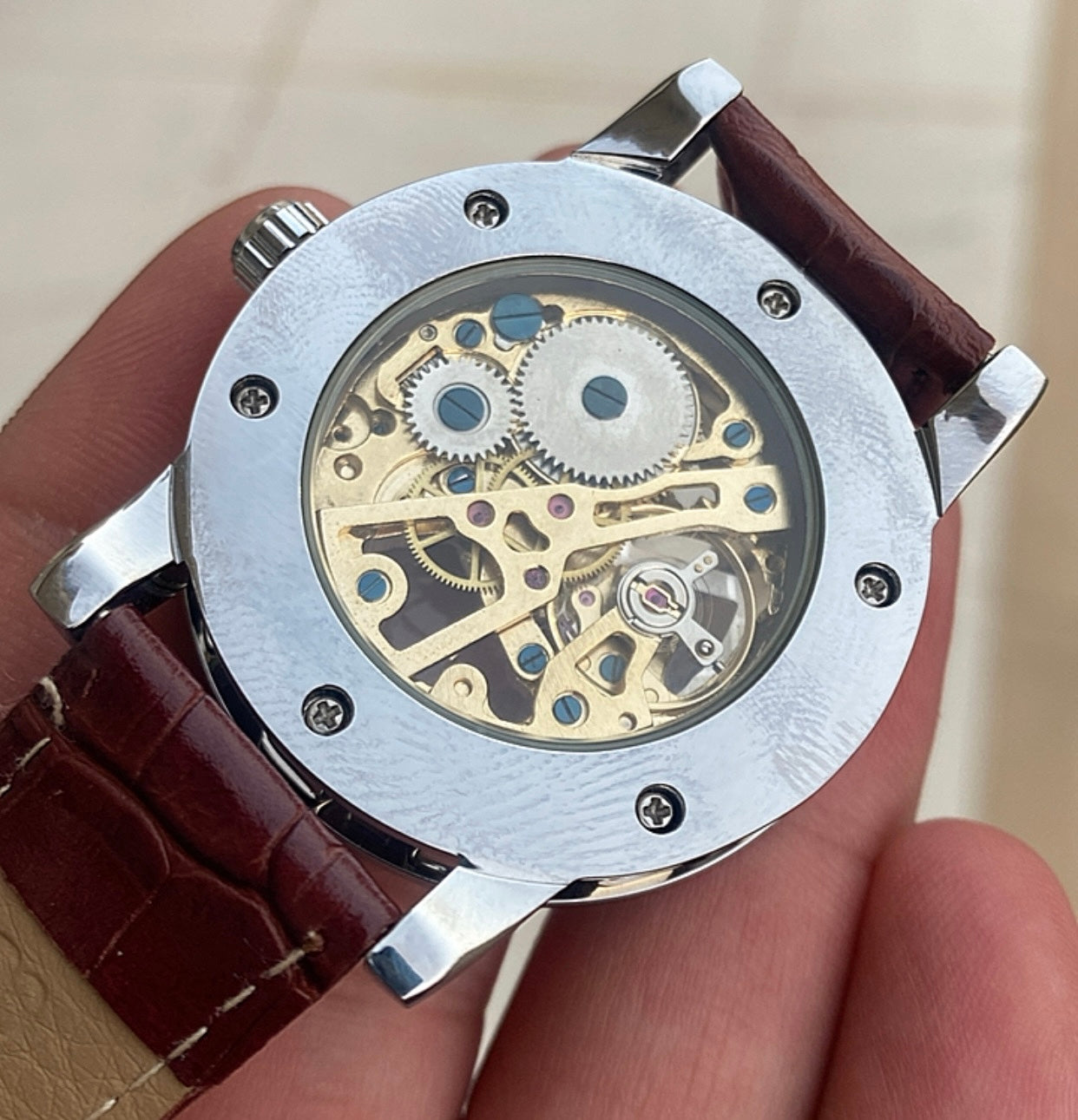 الفكرة ببساطة الساعة من مصنع ساعات انت بتصنع ساعة يدوياً - هذي الساعة تصميمي ركزت بيها على الوزن و ماكينة يدوية فينتج - حبة واحدة فقط
