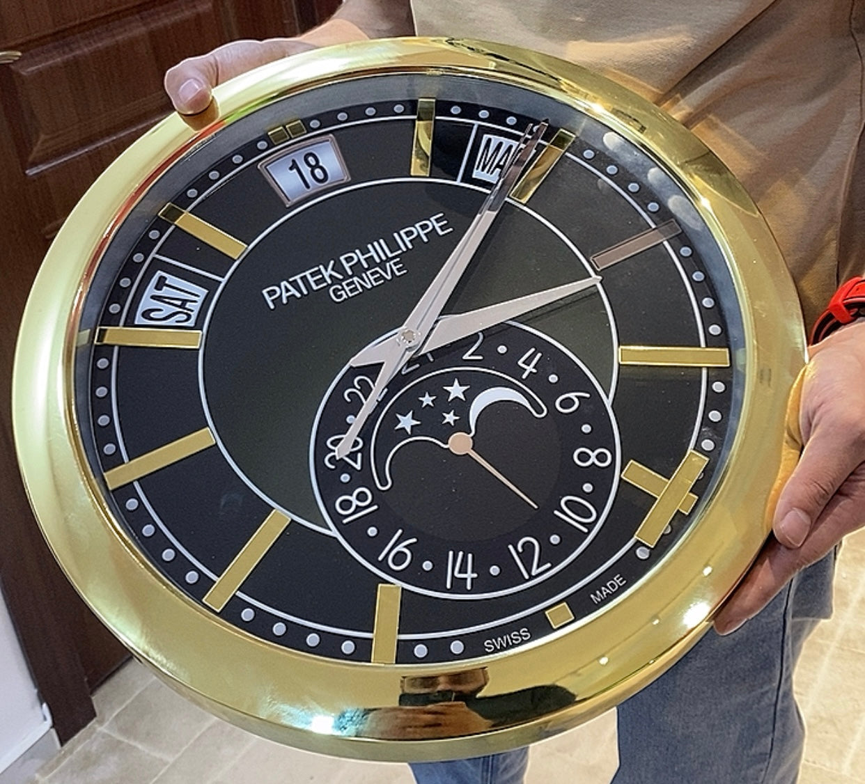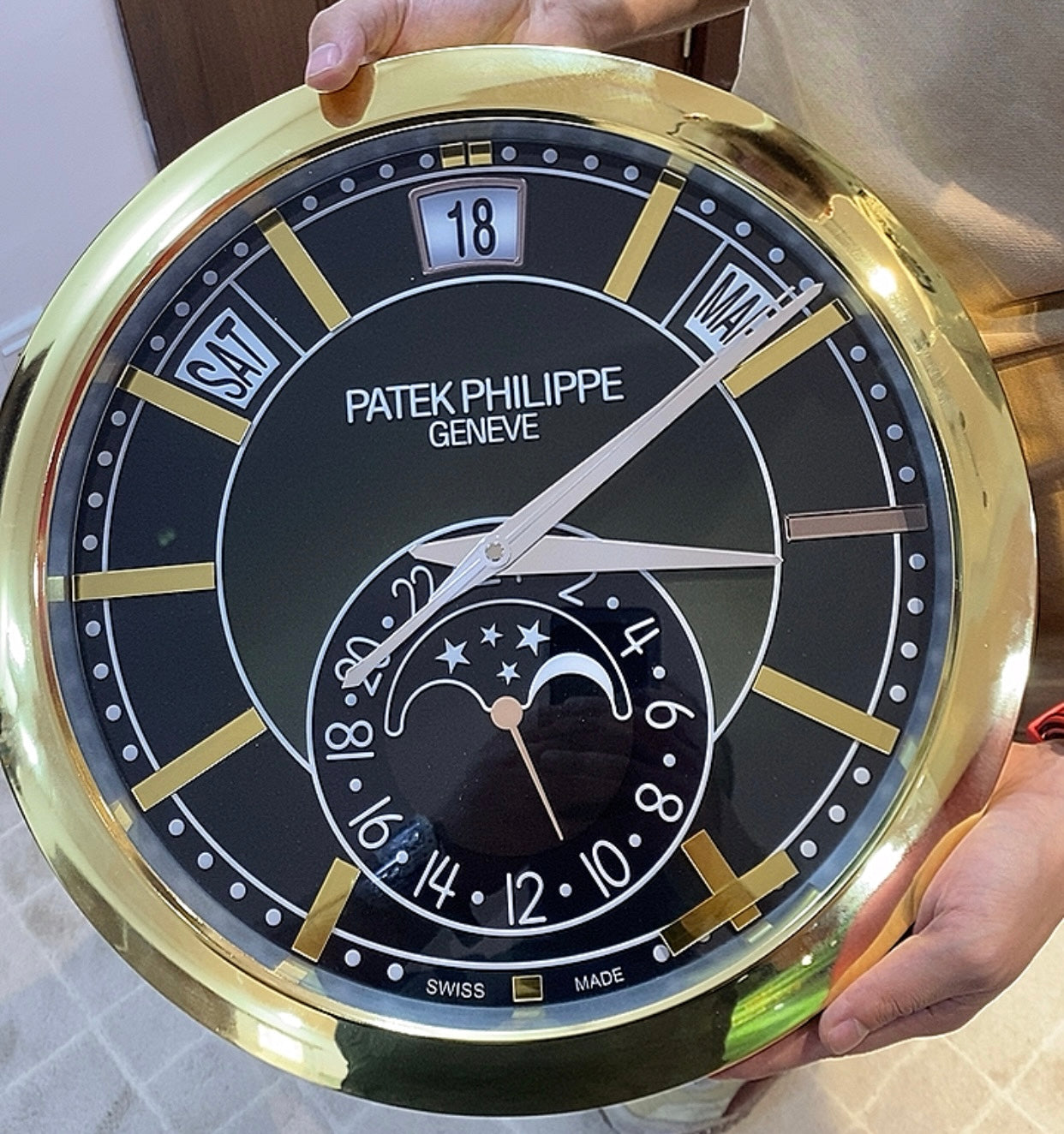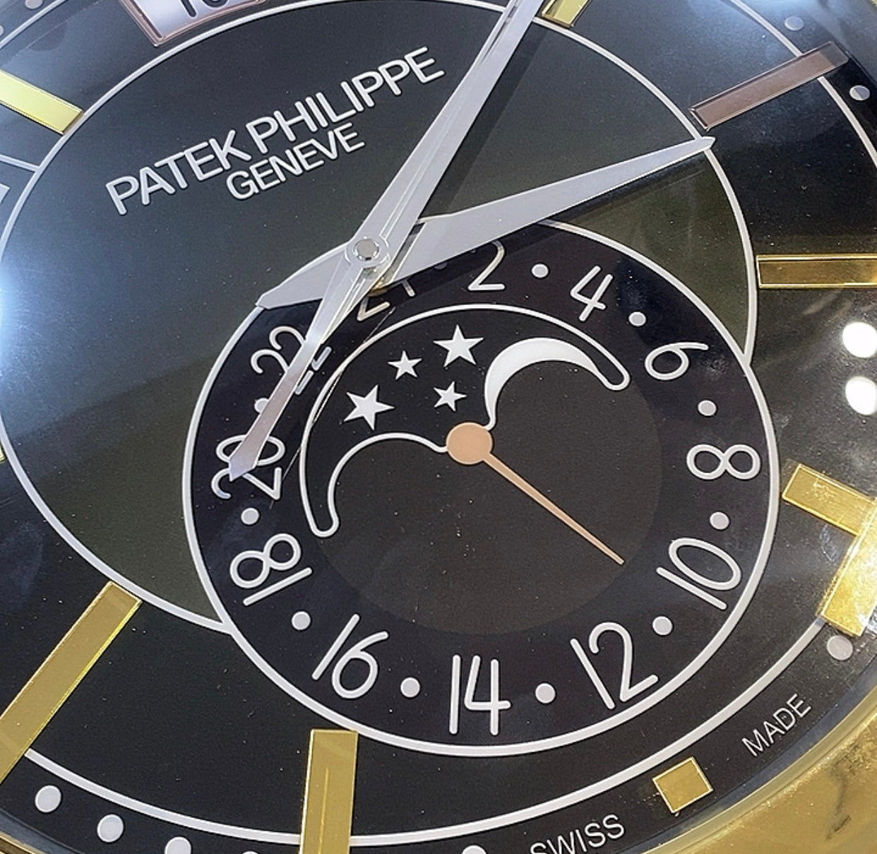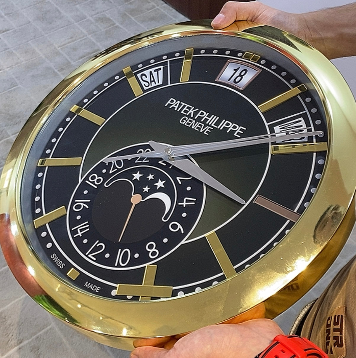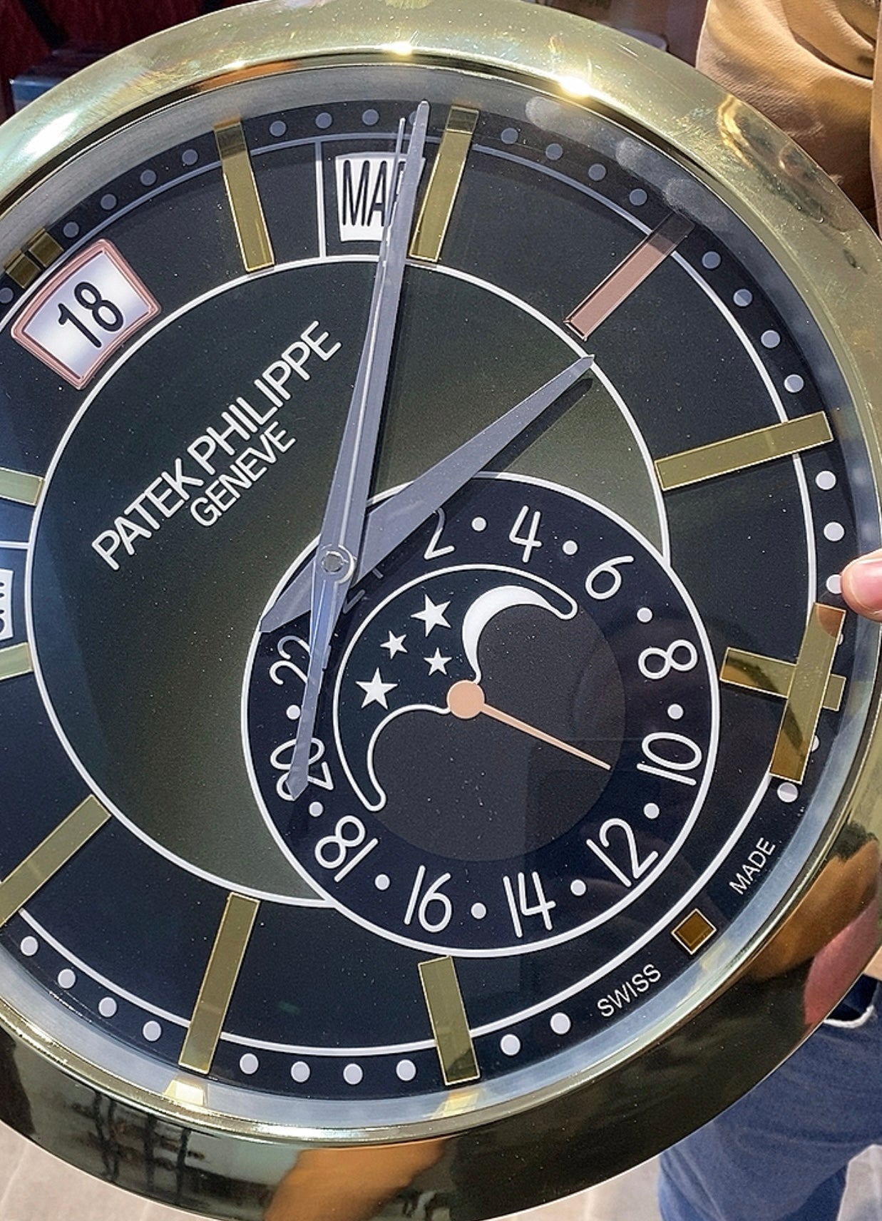 باتيك فيليب ساعة لاحائط اطار ذهبي مينا اخضر اومبريه