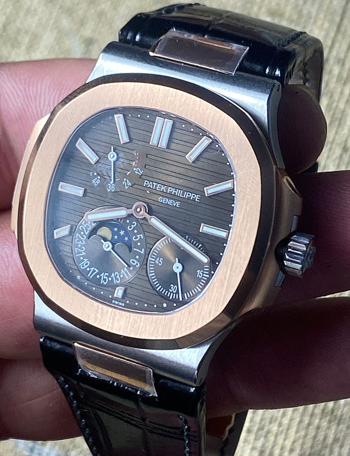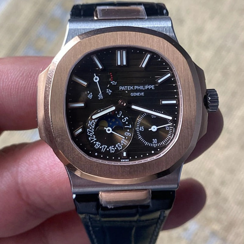 السعر بالدينار الاردني ٥٥٠ دينار باتيك فيليب 5712 – كلين – جلد اسود – نسخة كلين