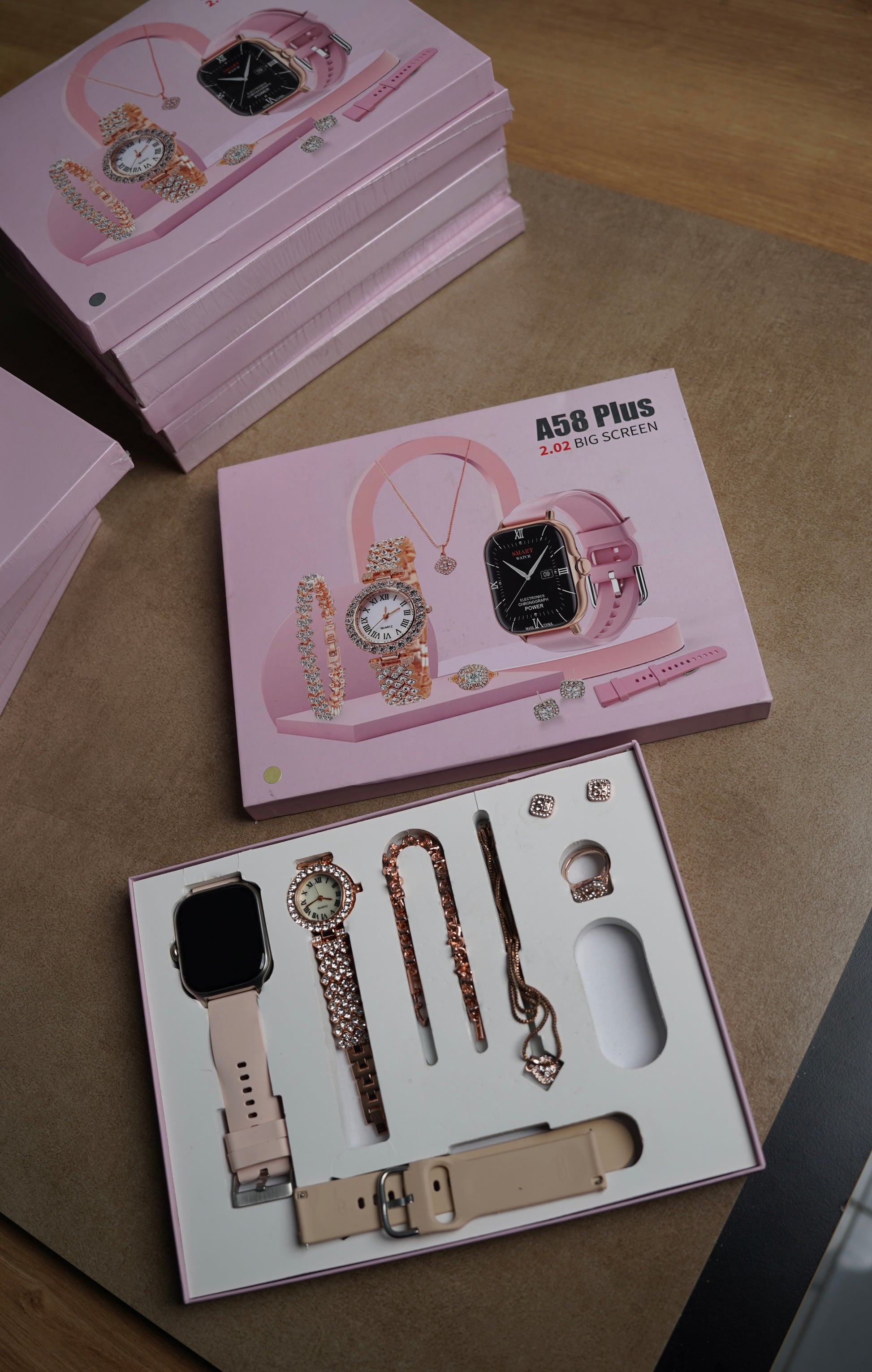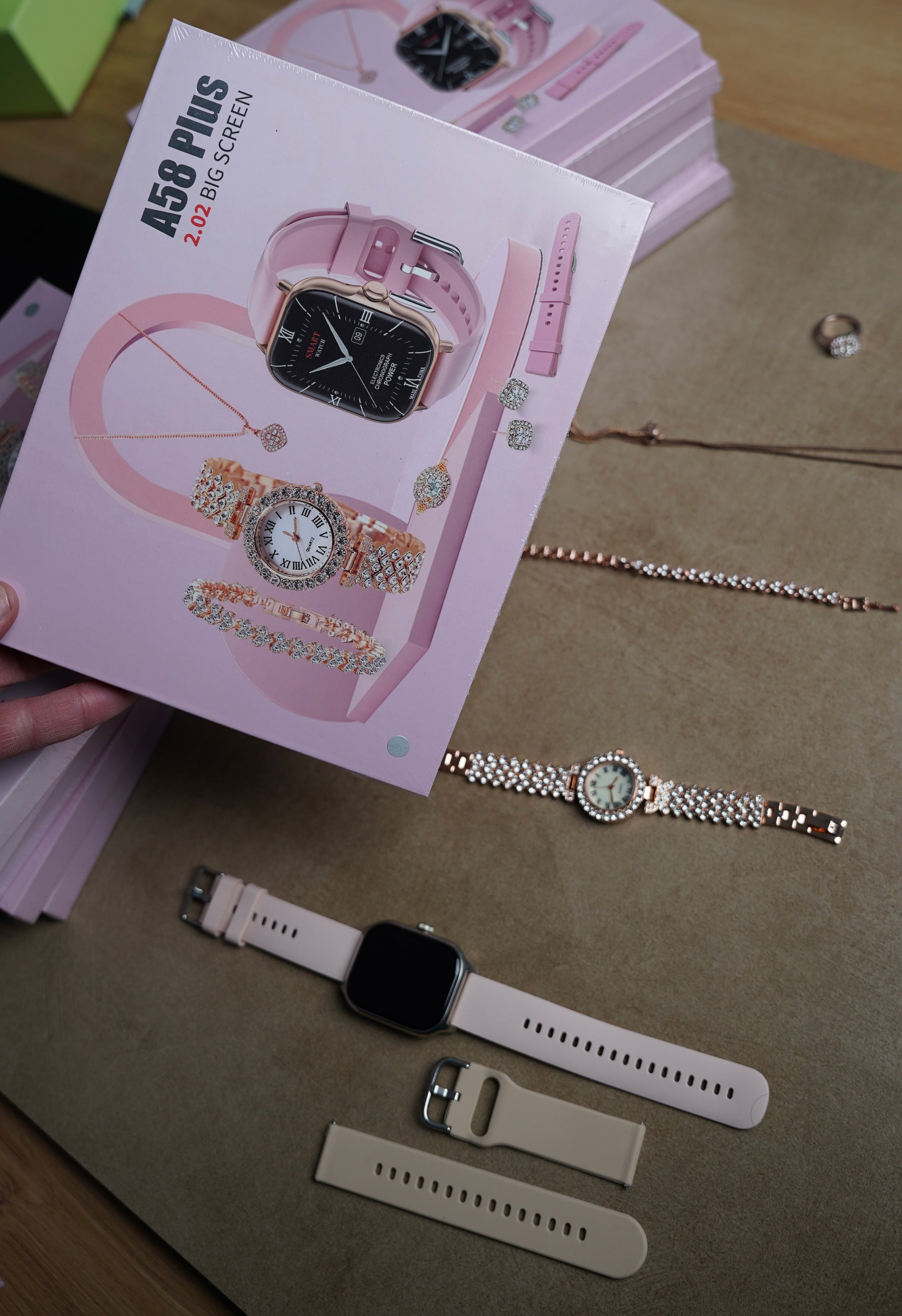 ساعة ذكية + ساعة كوارتز + اسوار + سلسلة + خاتم + حلق