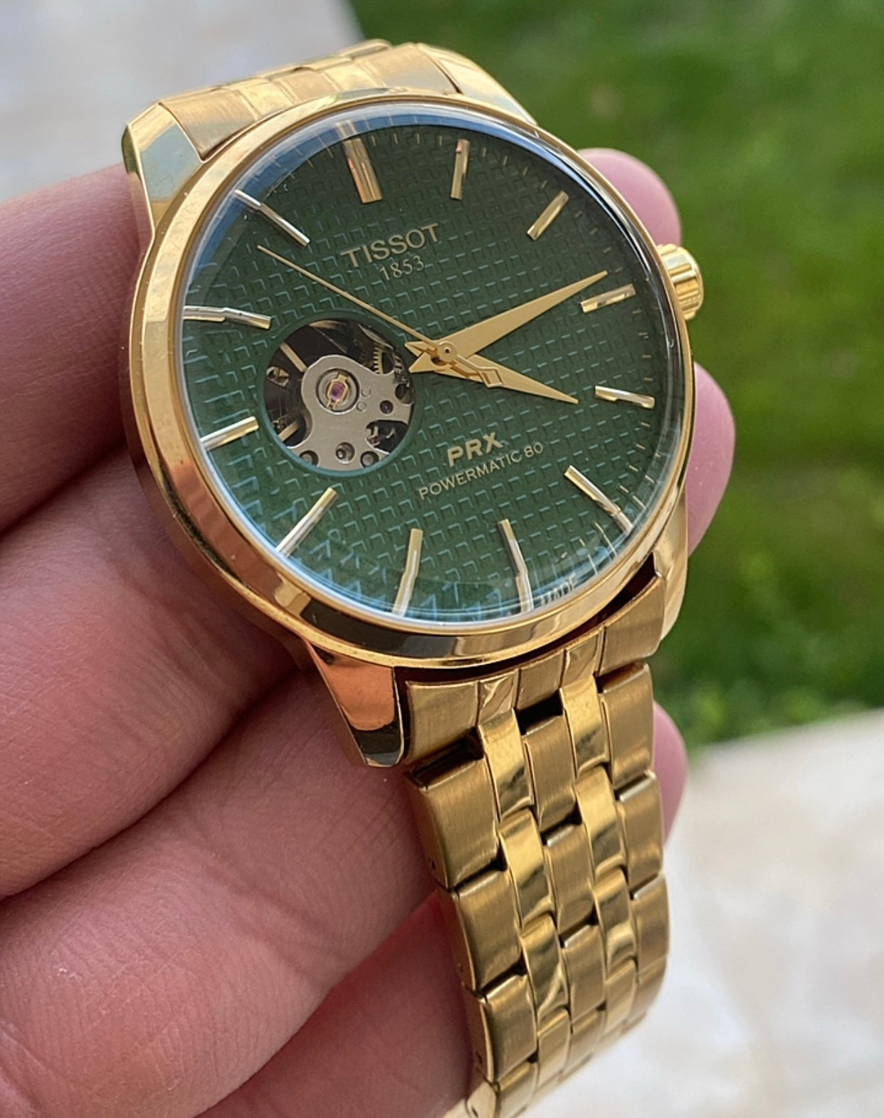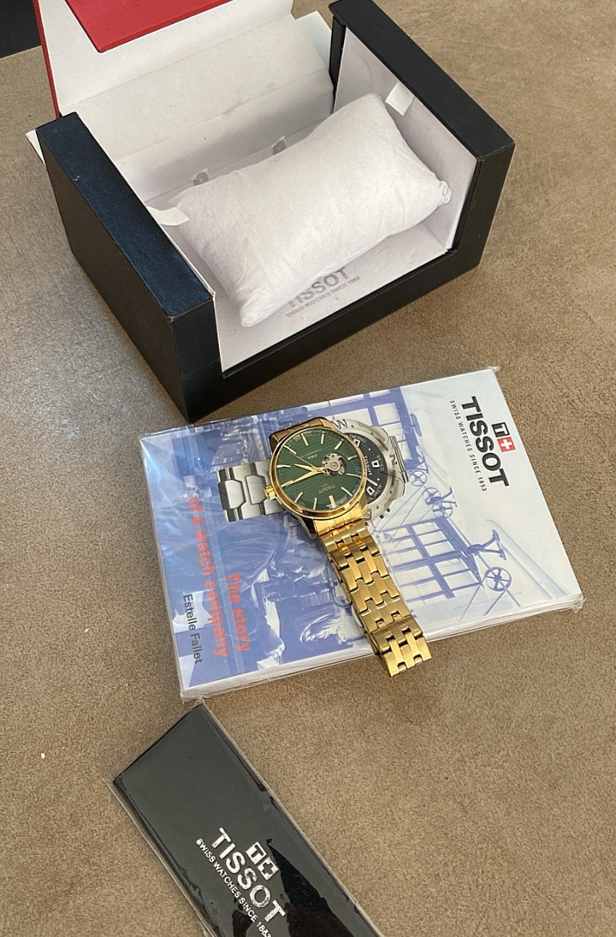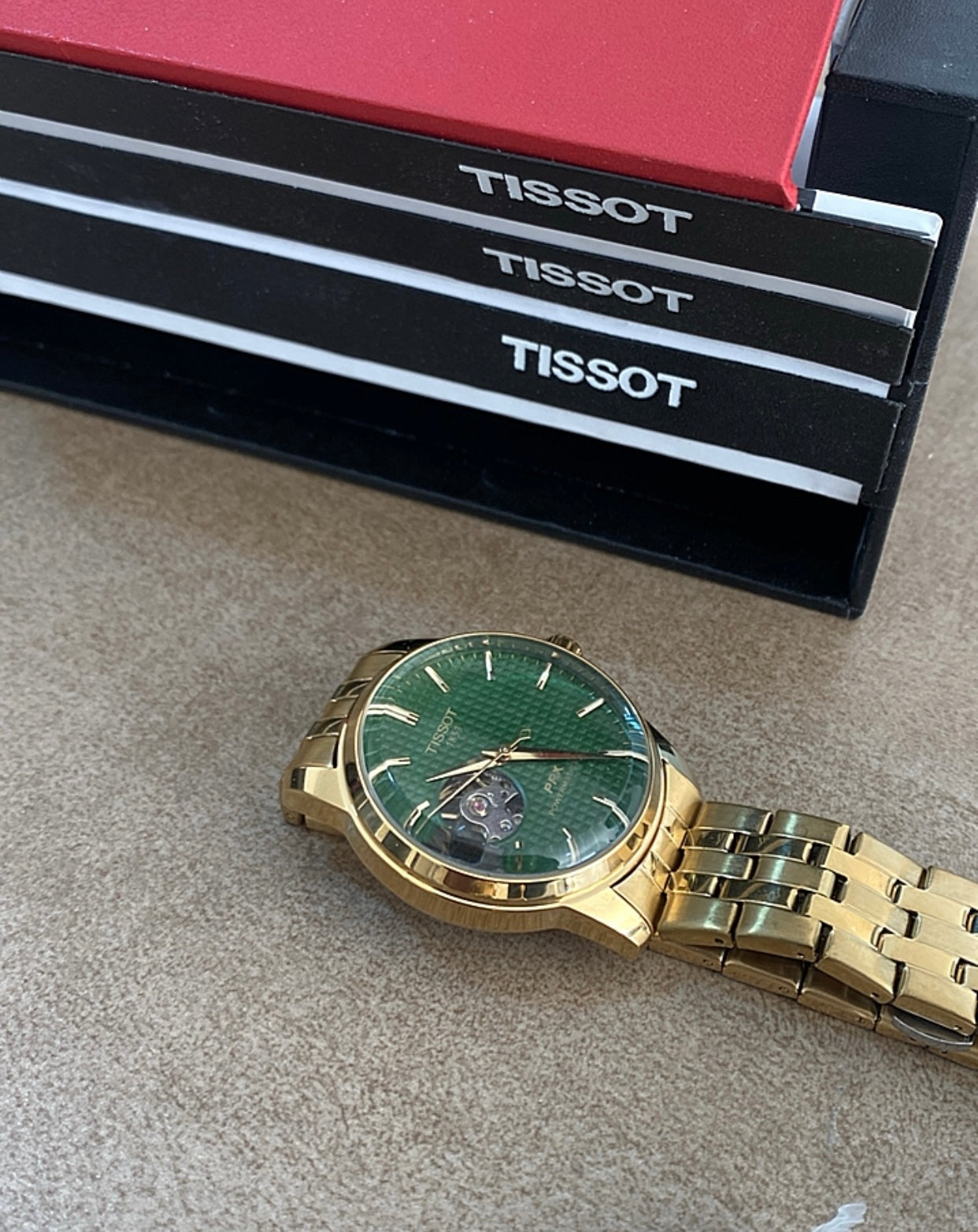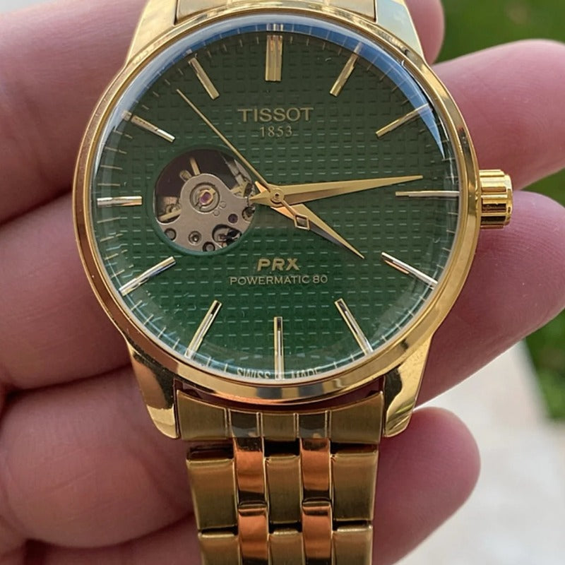 تيسوت باكس اوبن هارت مينا اخضر و السير ذهبي كلين تايتل