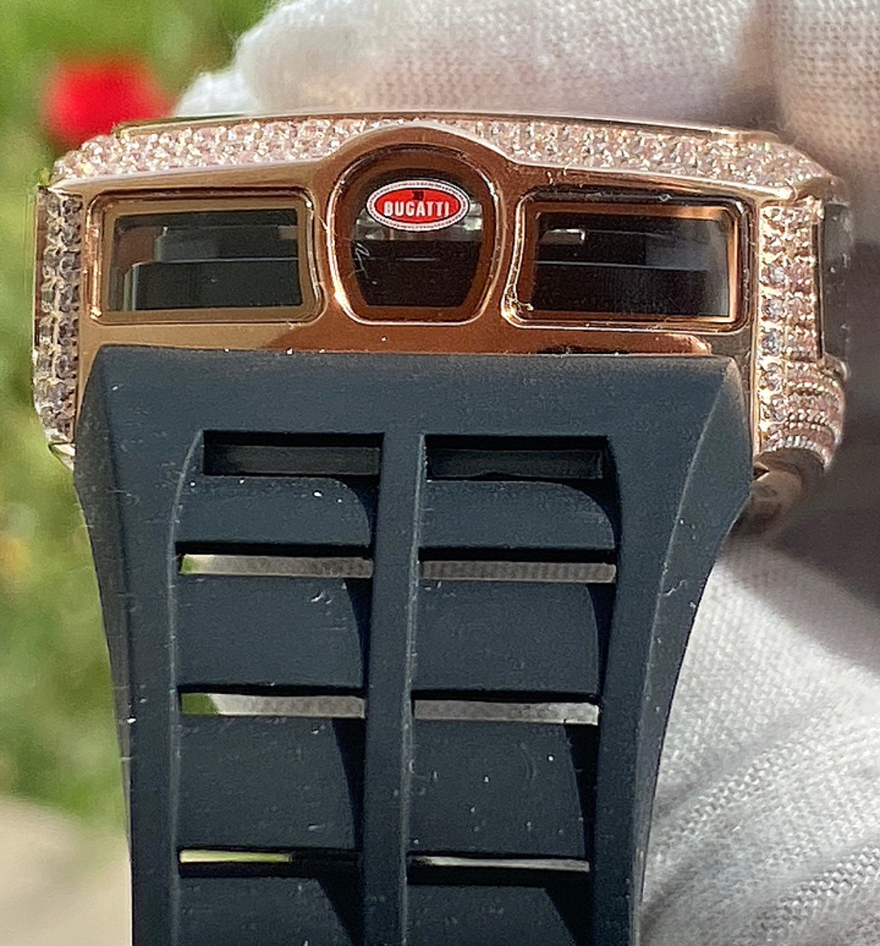 🖤 سير مطاطي فاخر بنمط رياضي ومشبك يحمل شعار Bugatti