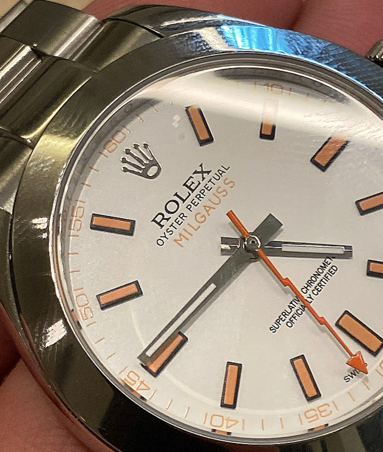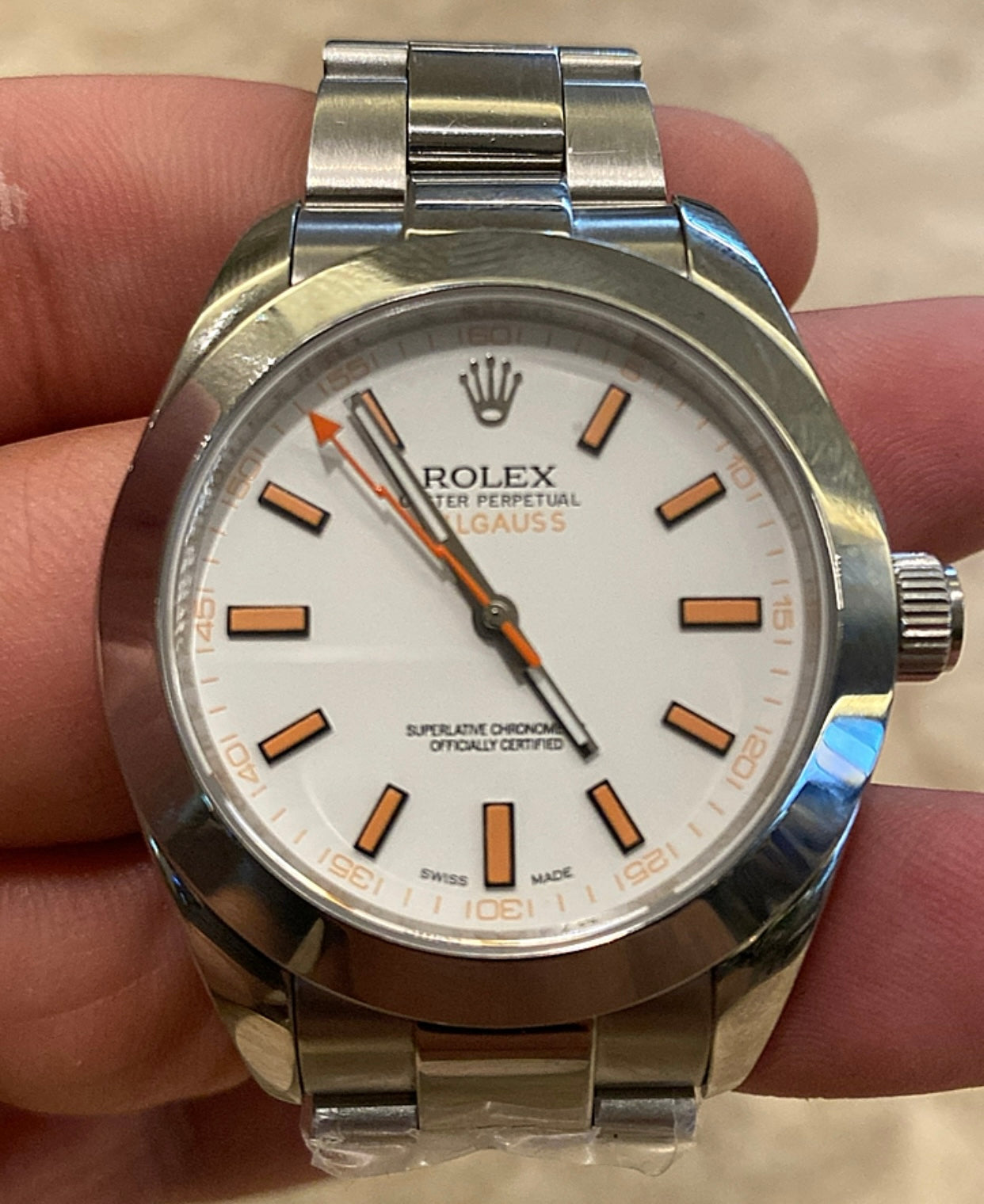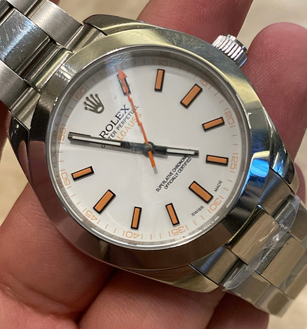 رولكس اويستر ميلاجوس لم يتم التعديل عليها - الساعة كلين ماكينة سويسري جاهزة للتعديل او لاخذ جزء منها مثل المينا او المكينة ( حبة واحدة )