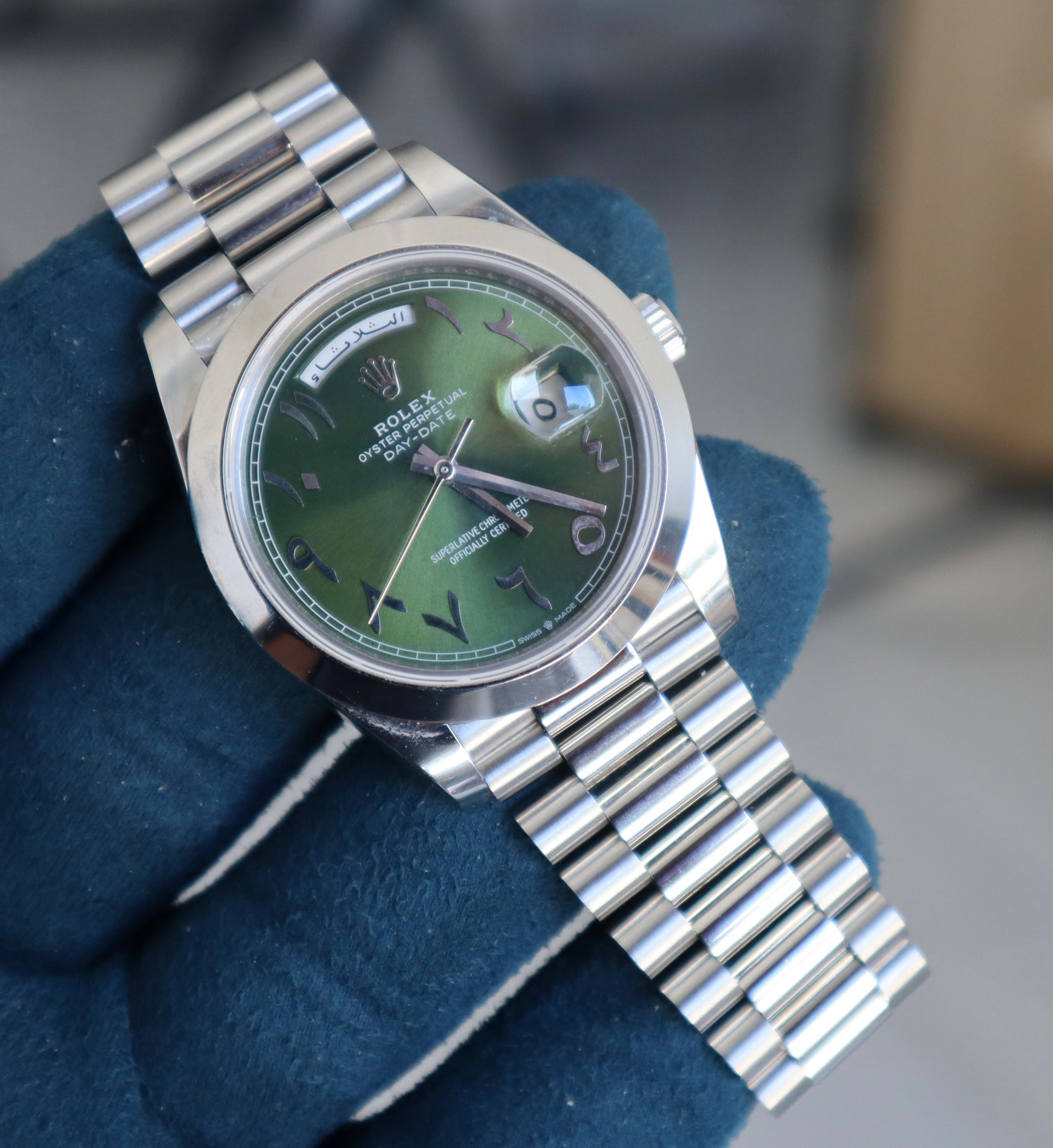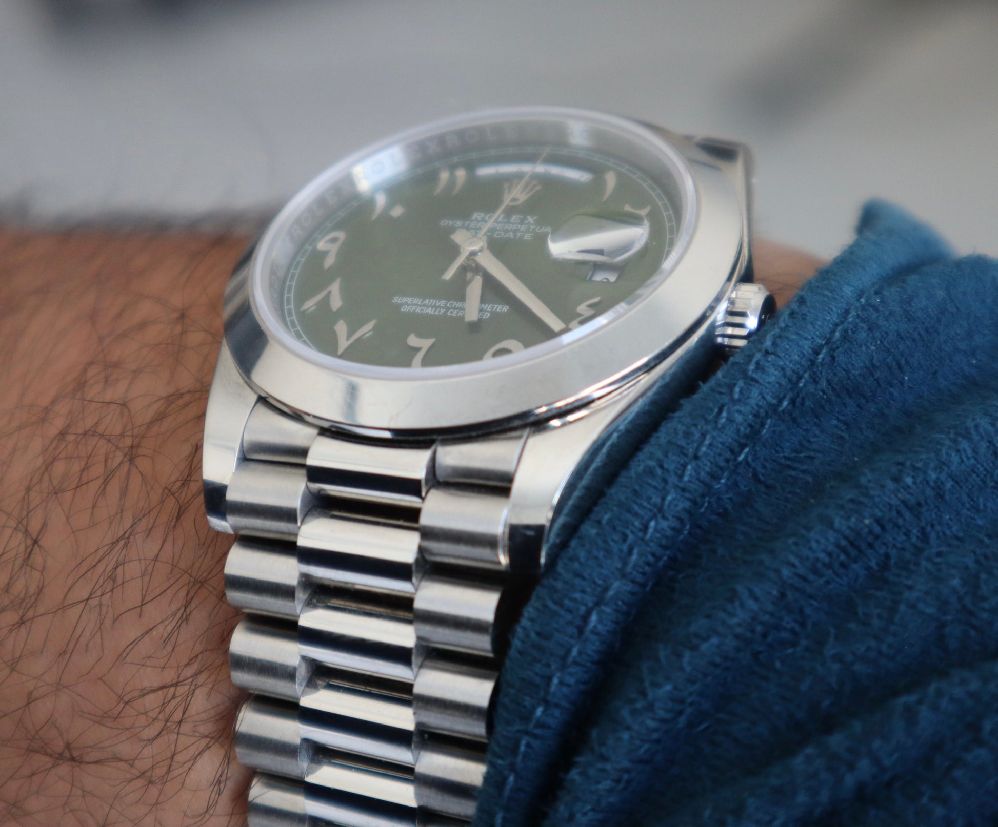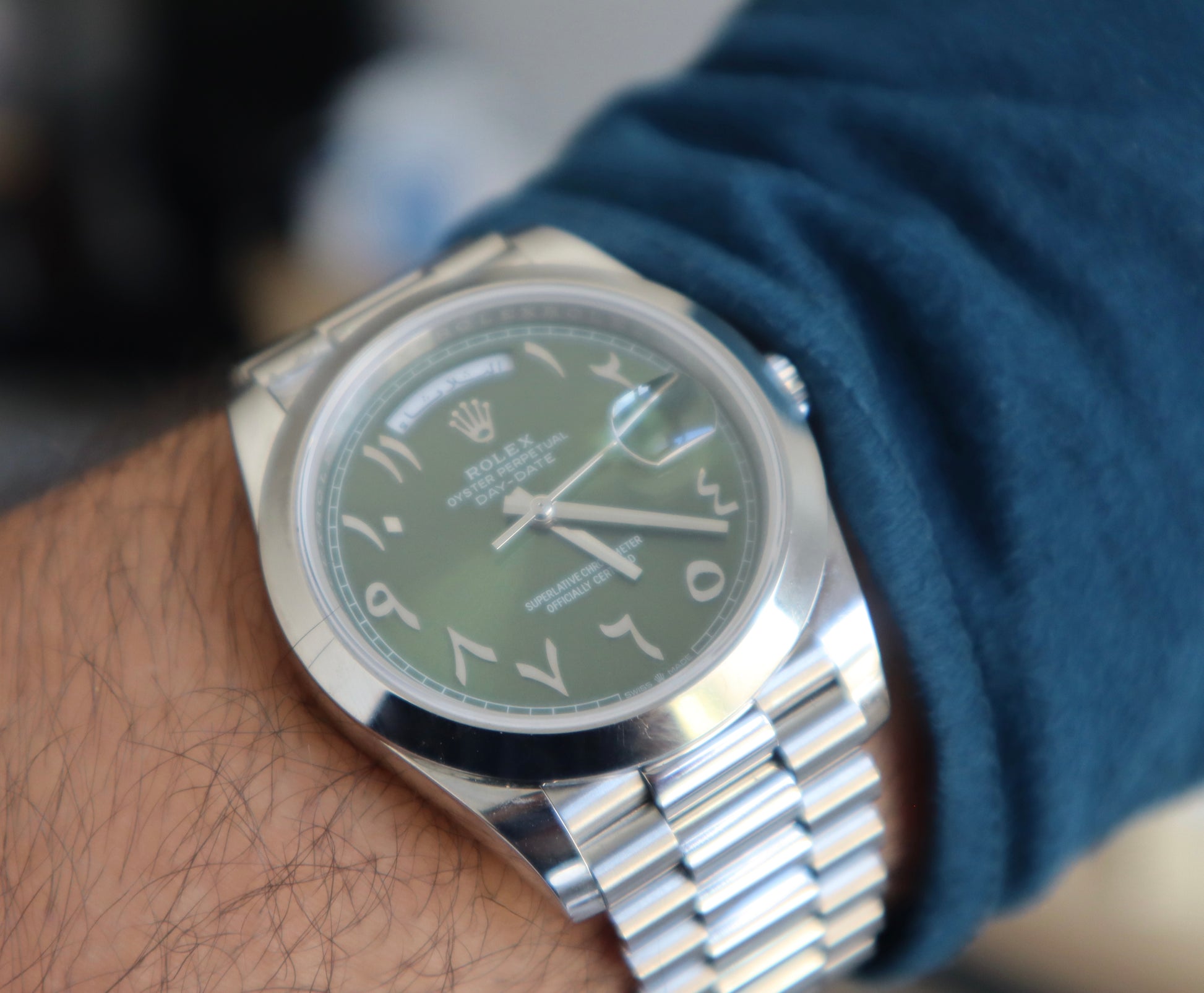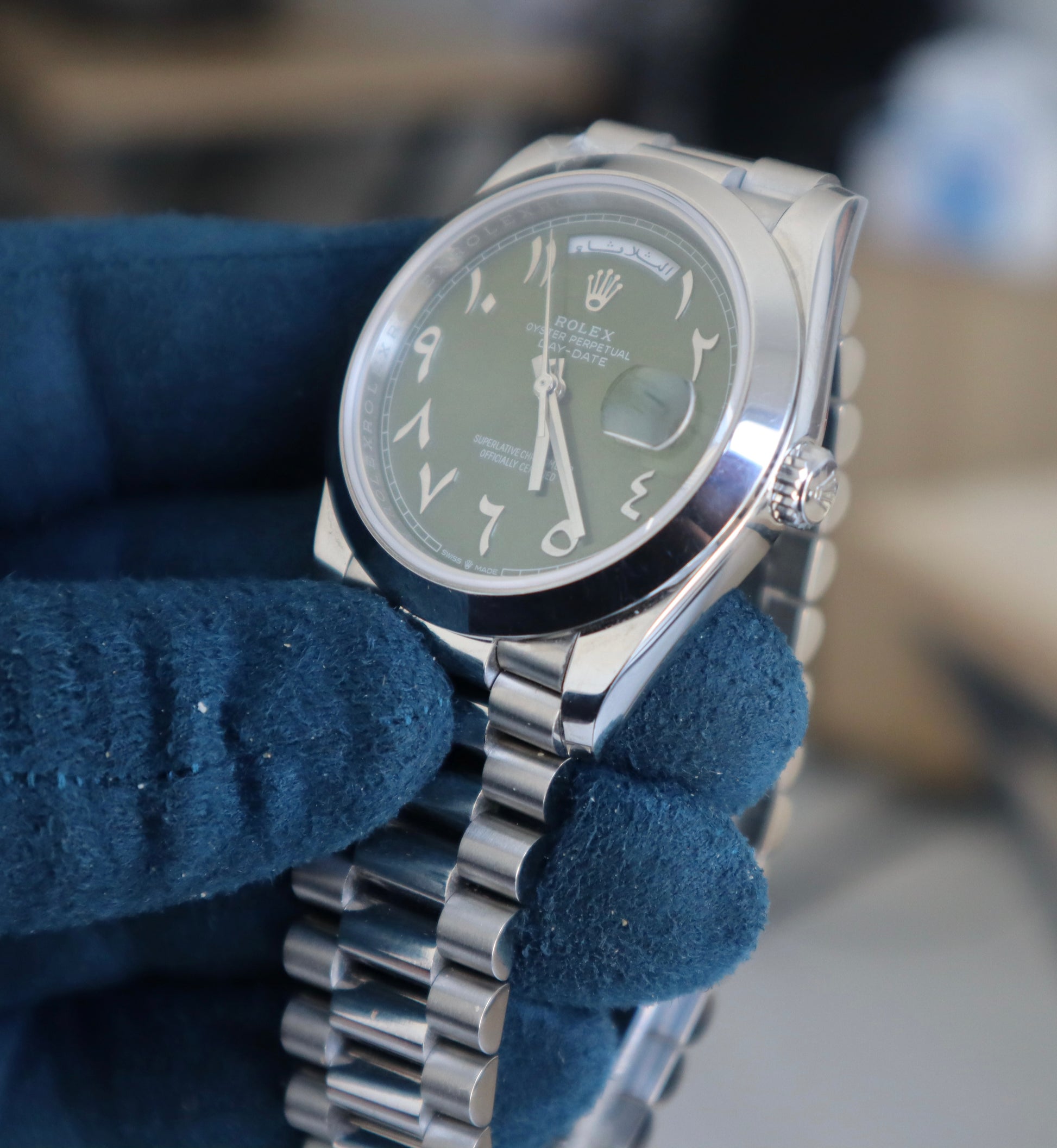 رولكس داي ديت مينا عربي لون زيتوني- الساعة كلين طبق الأصل