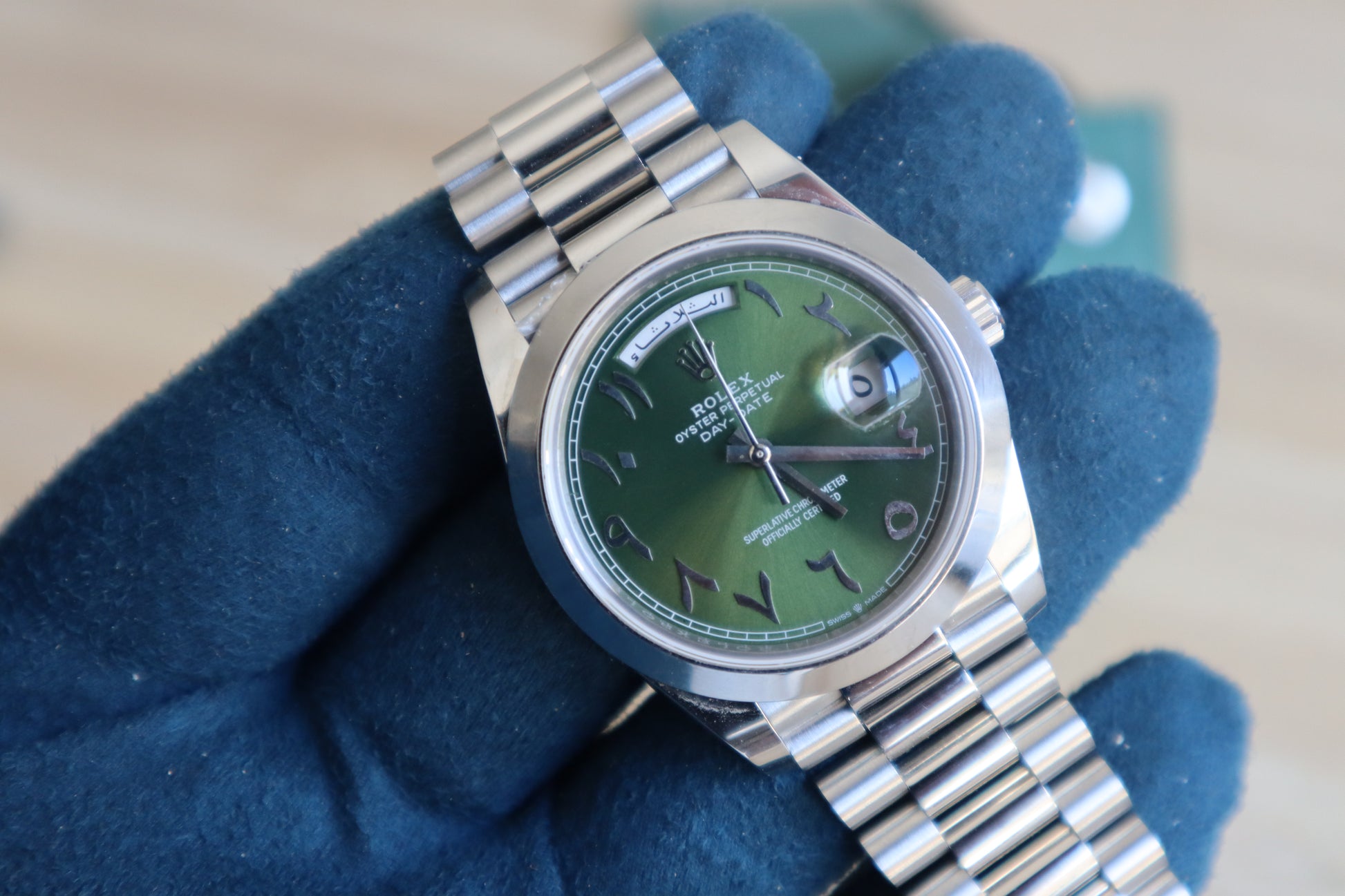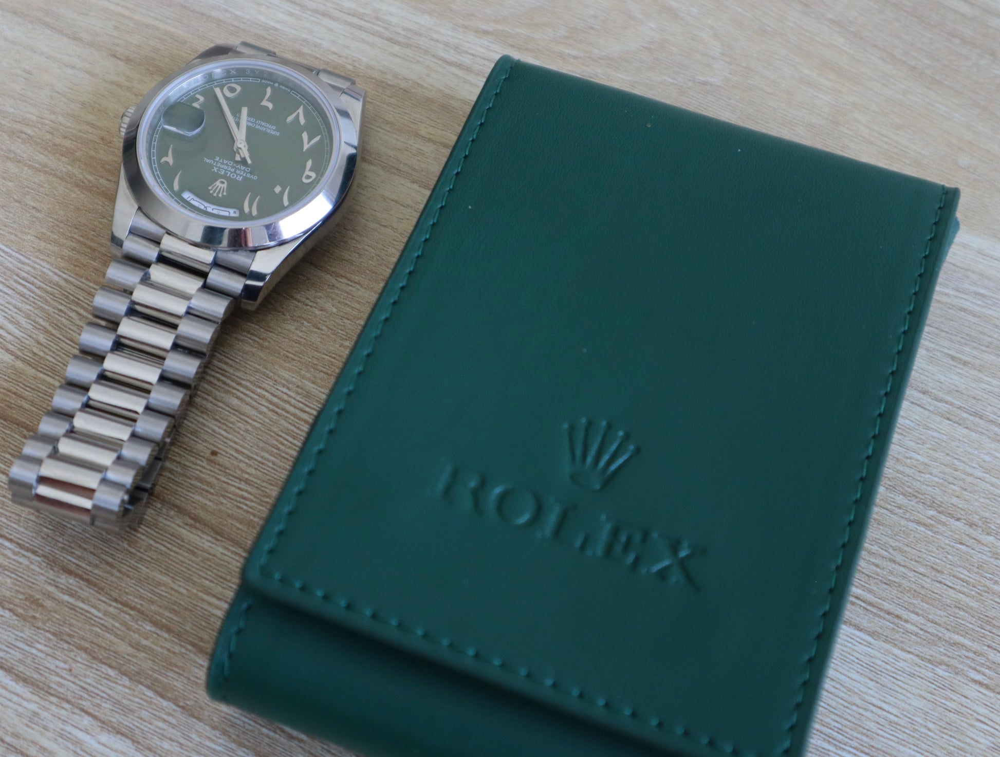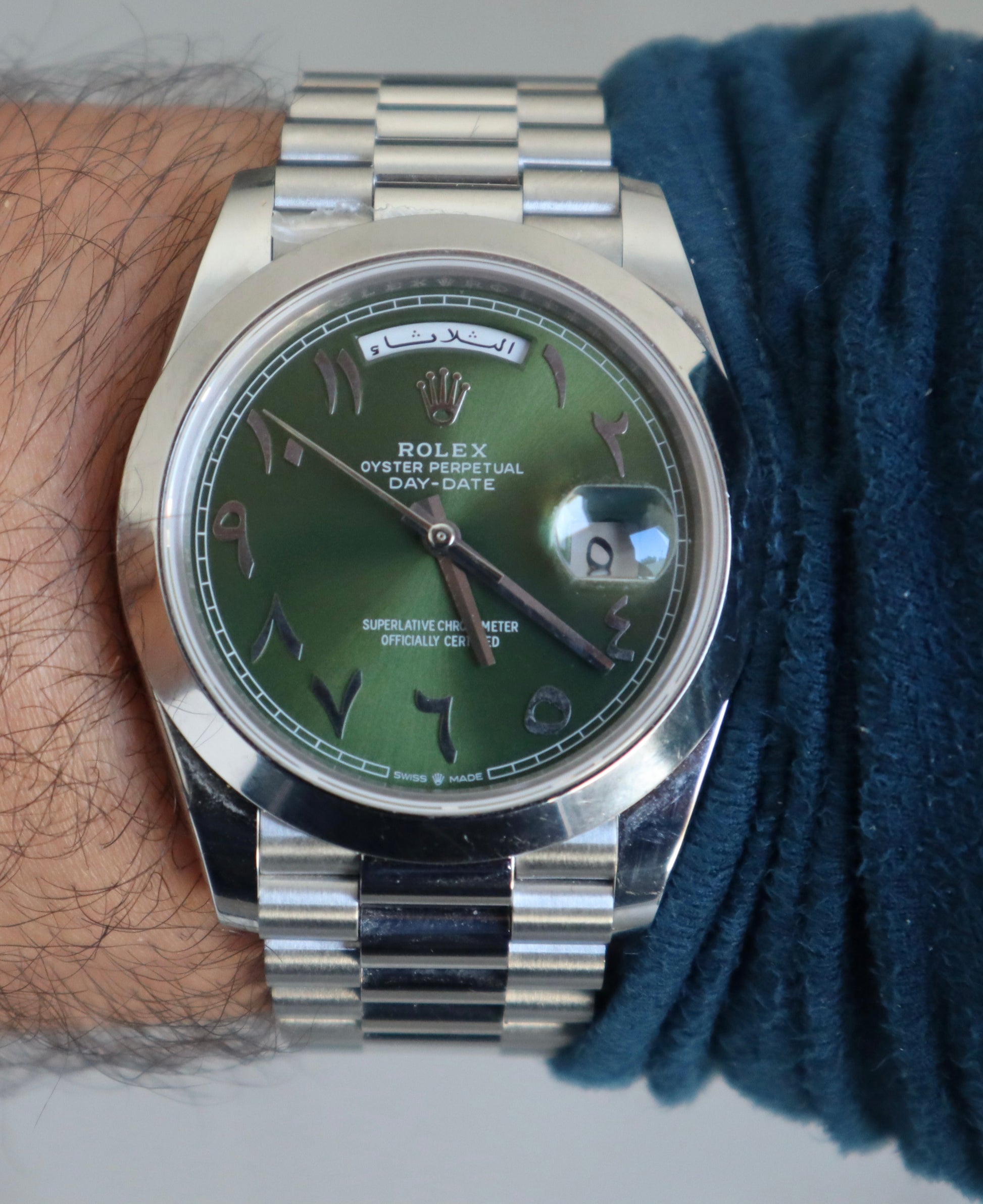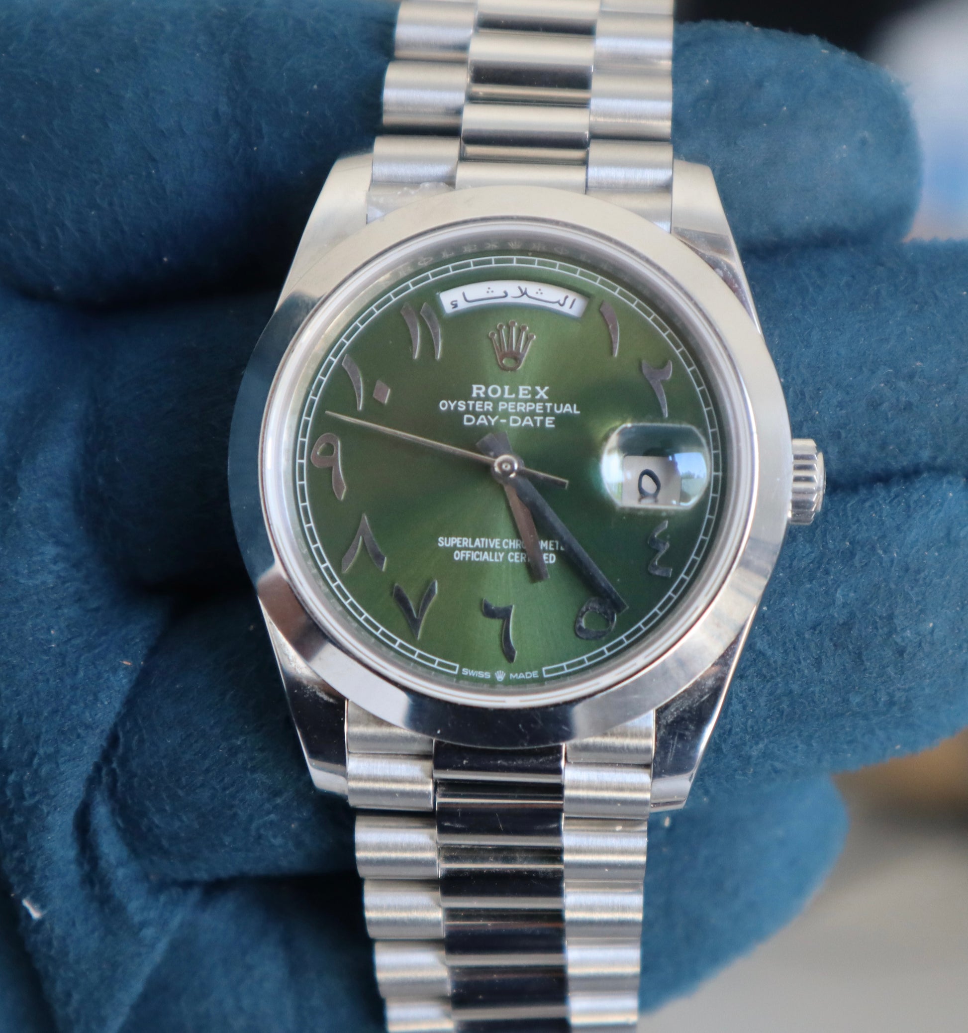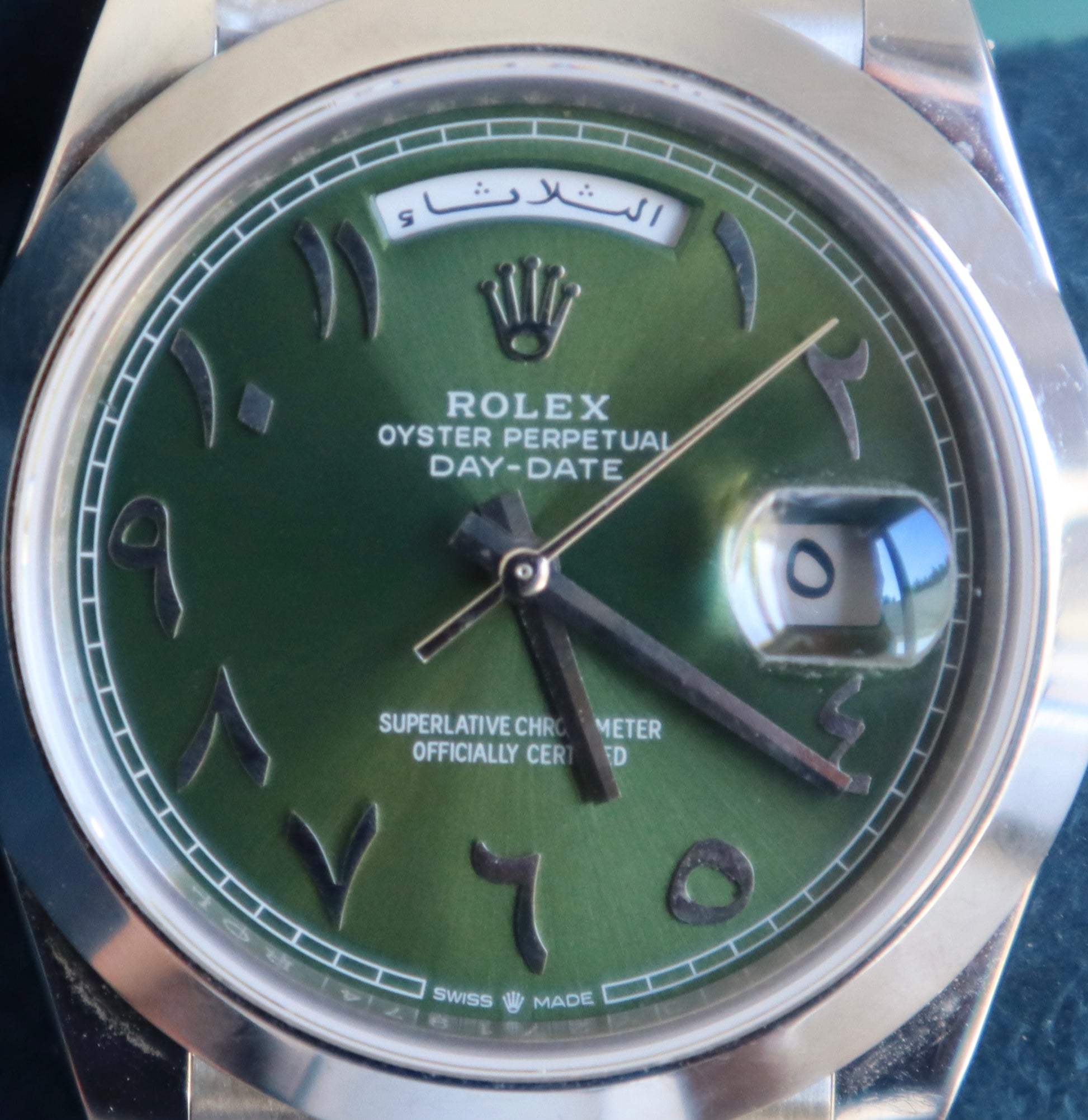 رولكس داي ديت مينا عربي لون زيتوني- الساعة كلين طبق الأصل