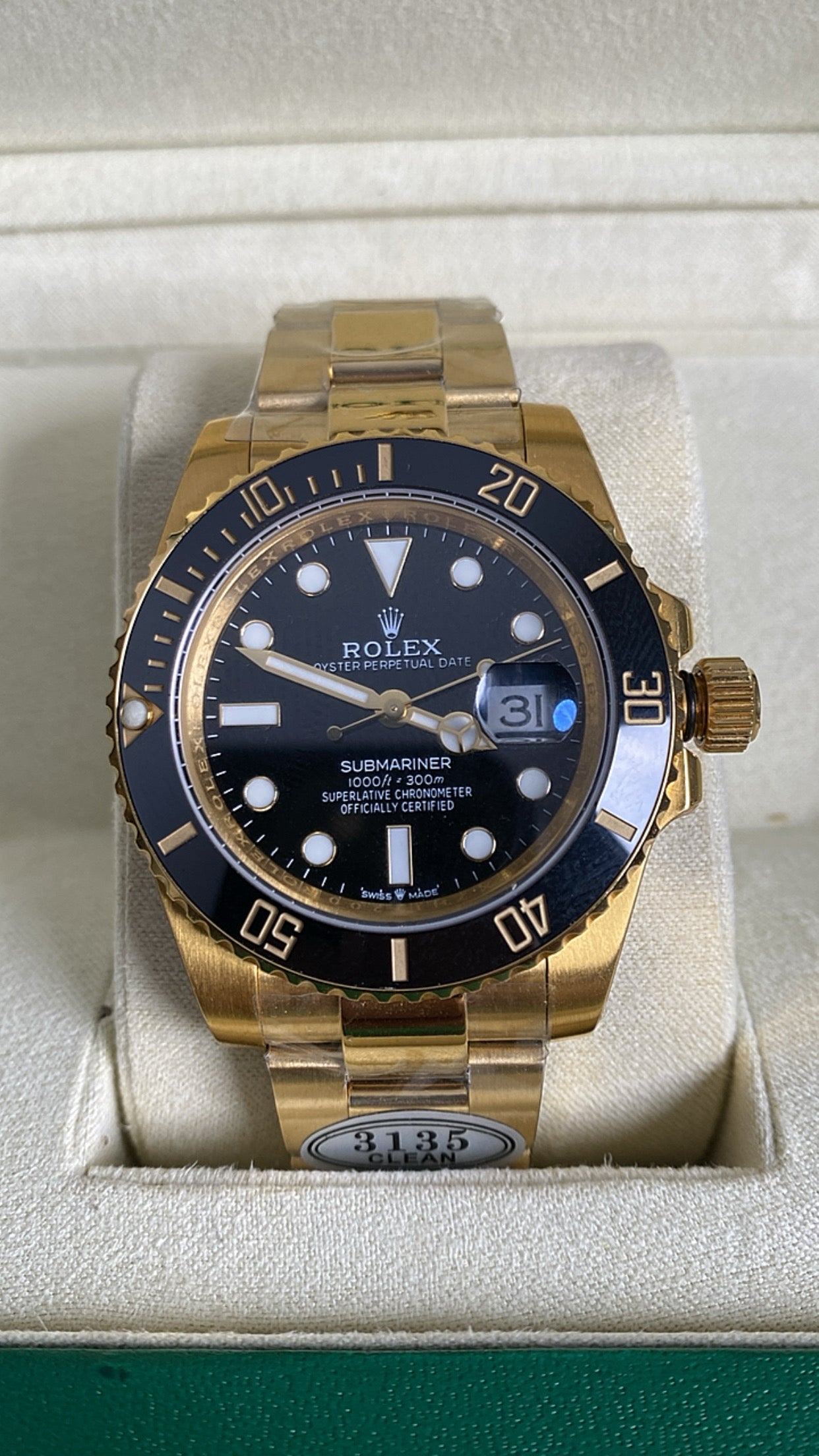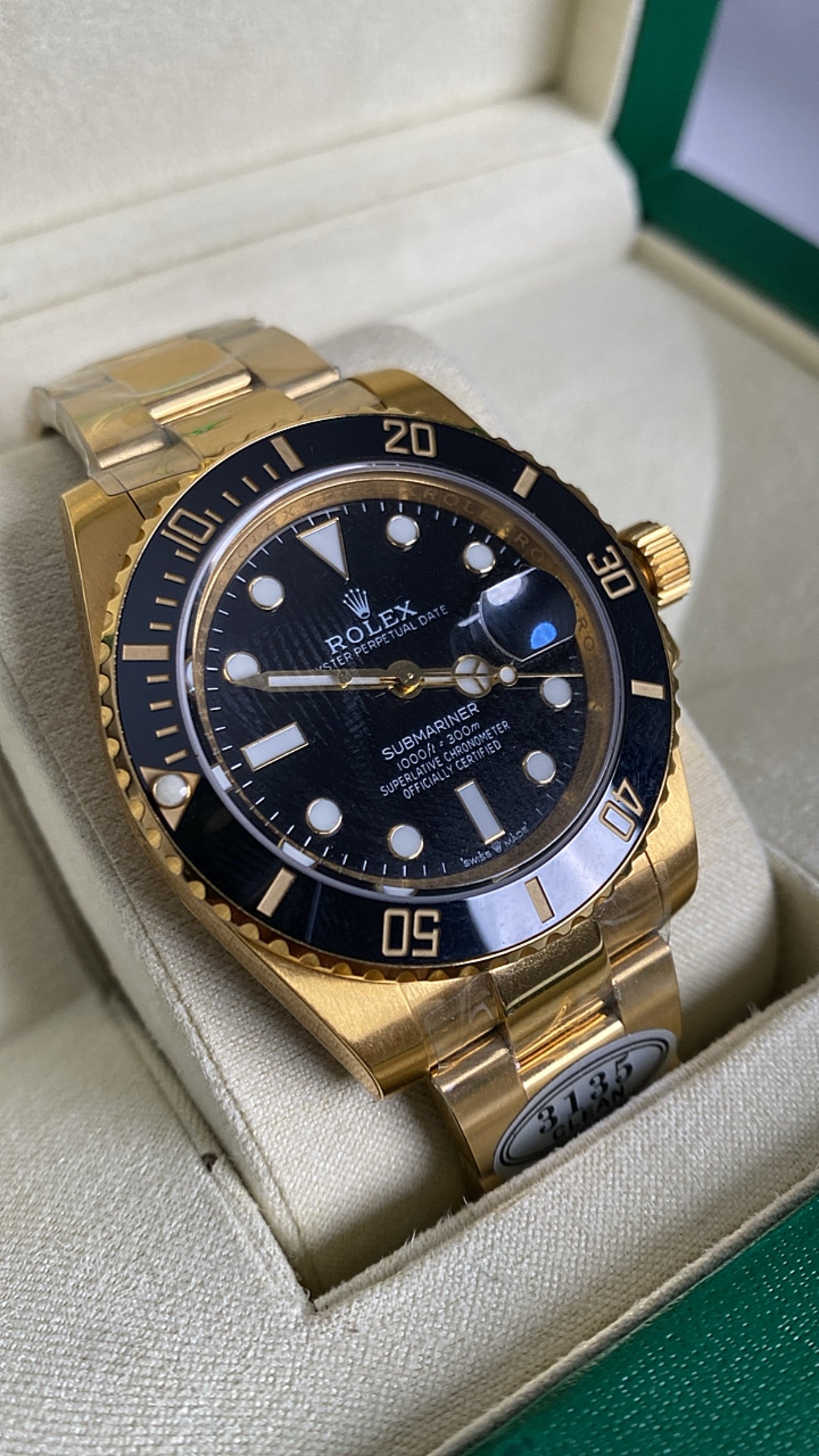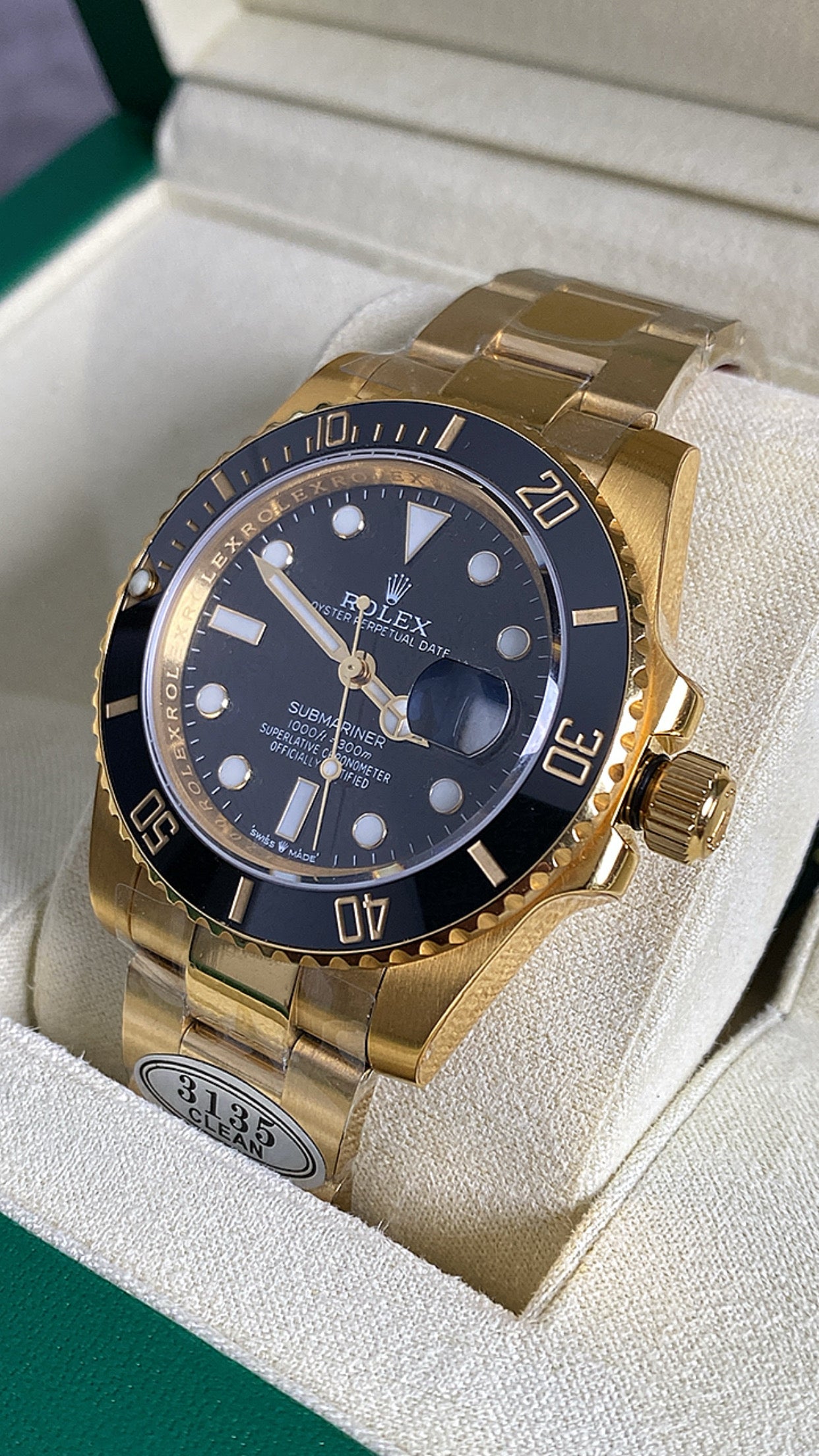 رولكس سابمارينر فول يالو جولد دايال و بيزيل اسود - كلين طبق الاصل