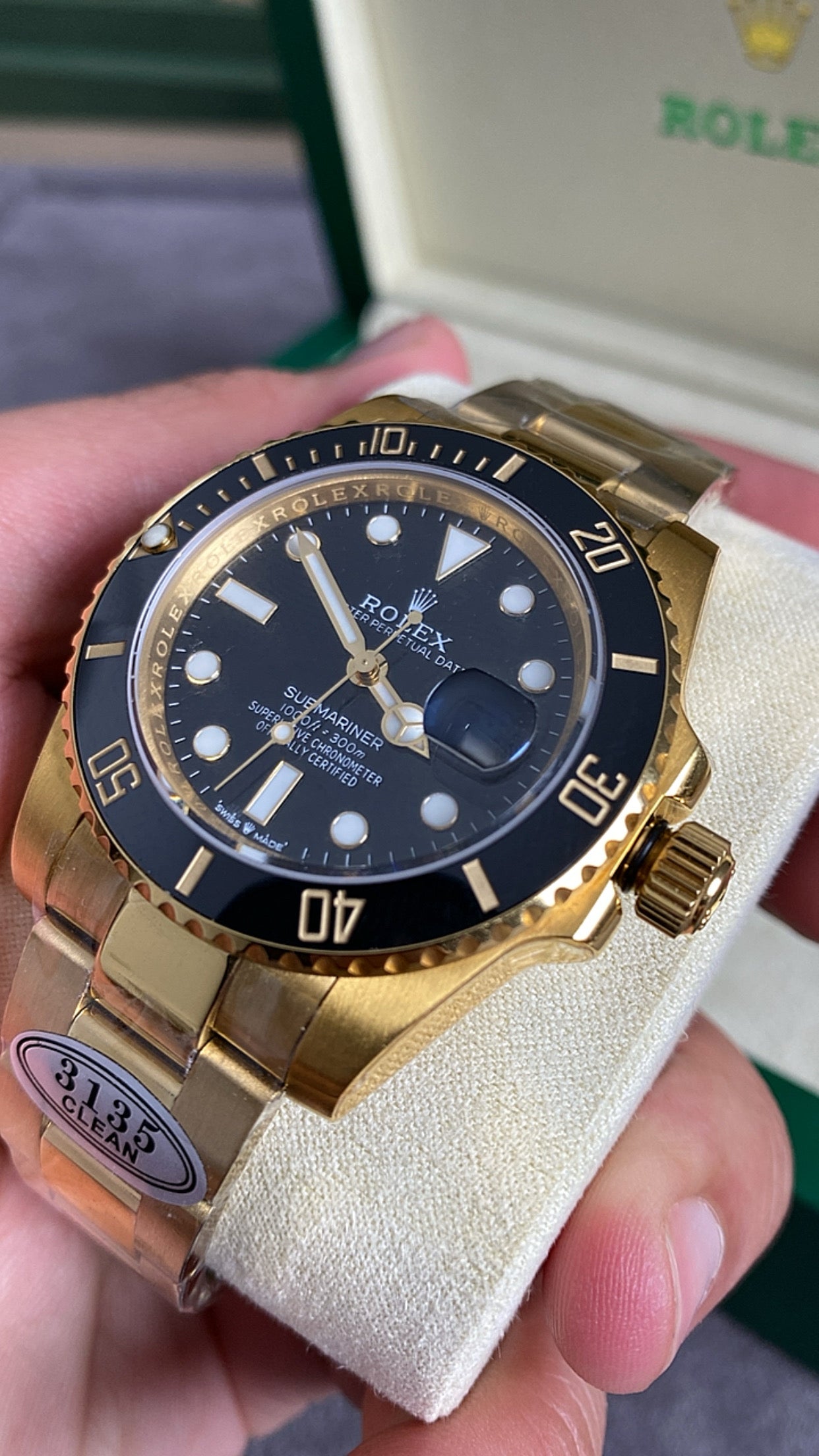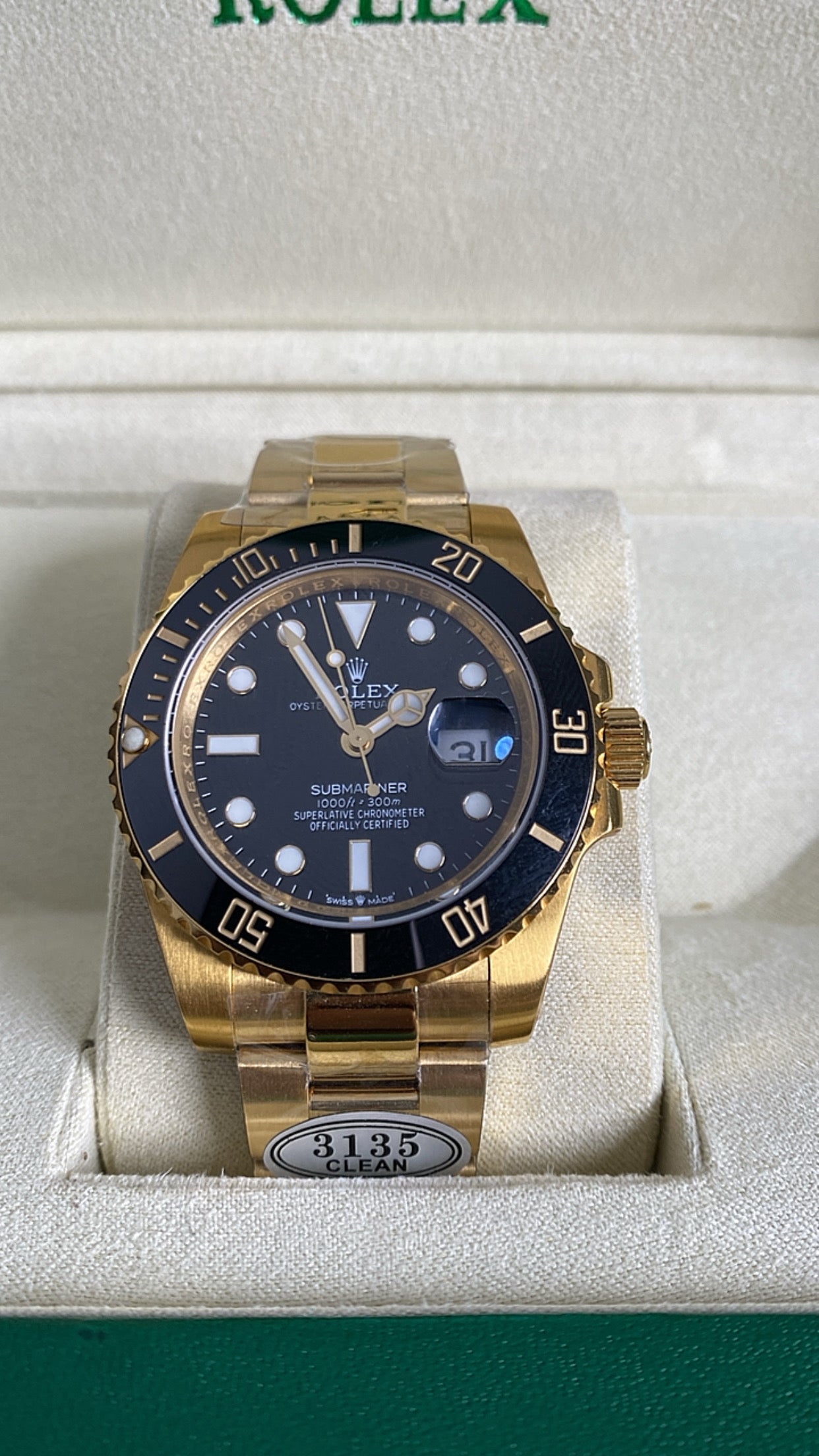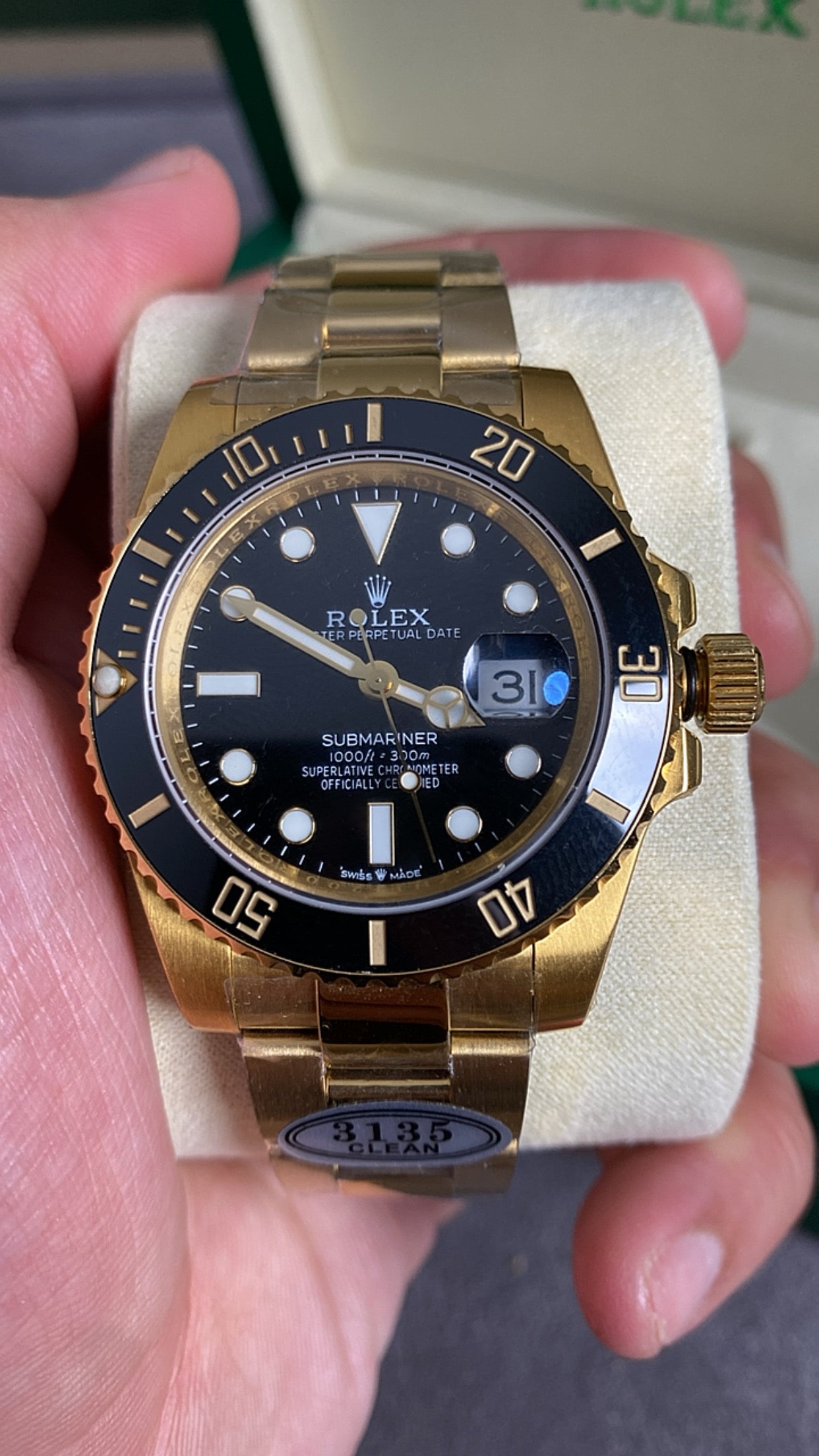 رولكس سابمارينر فول يالو جولد دايال و بيزيل اسود - كلين طبق الاصل