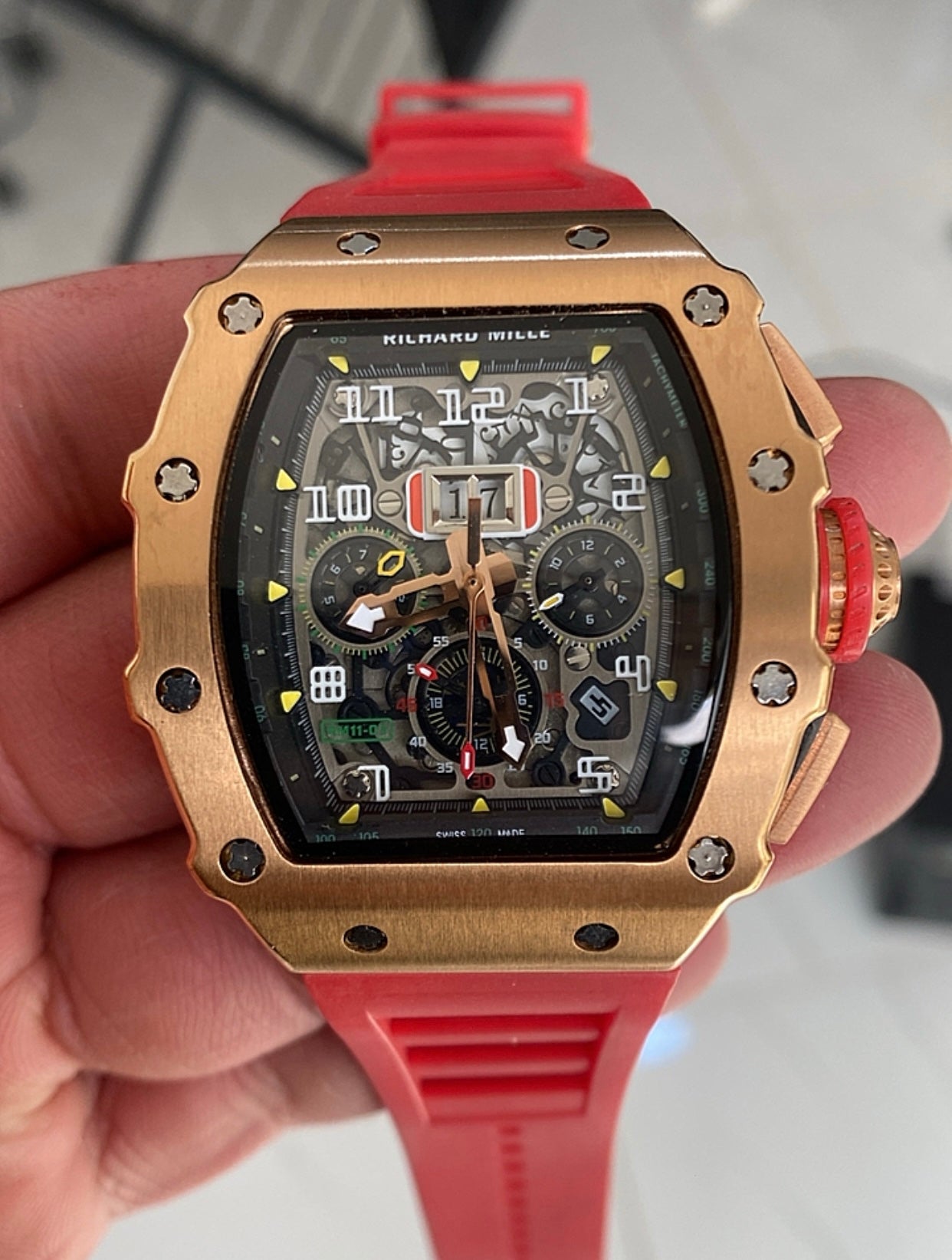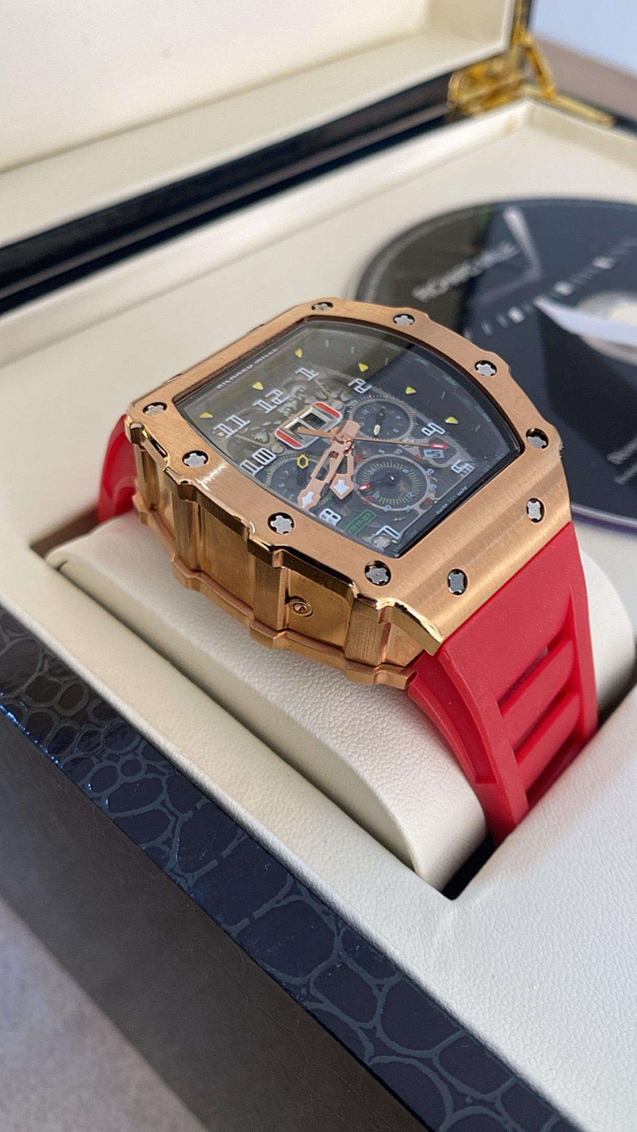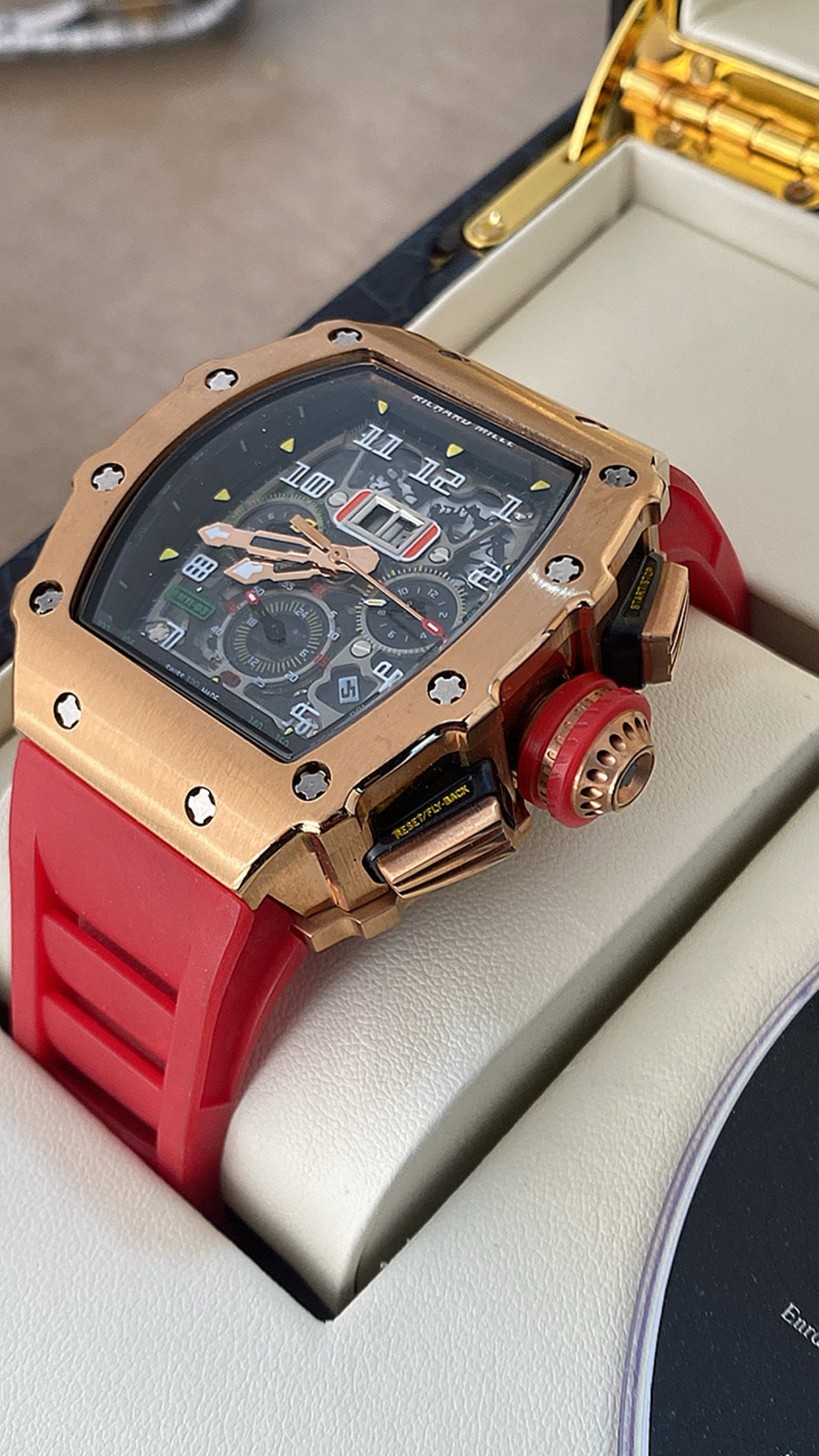 ريتشارد مايل كرونوجراف احمر و روز جولد - كلين ماستر