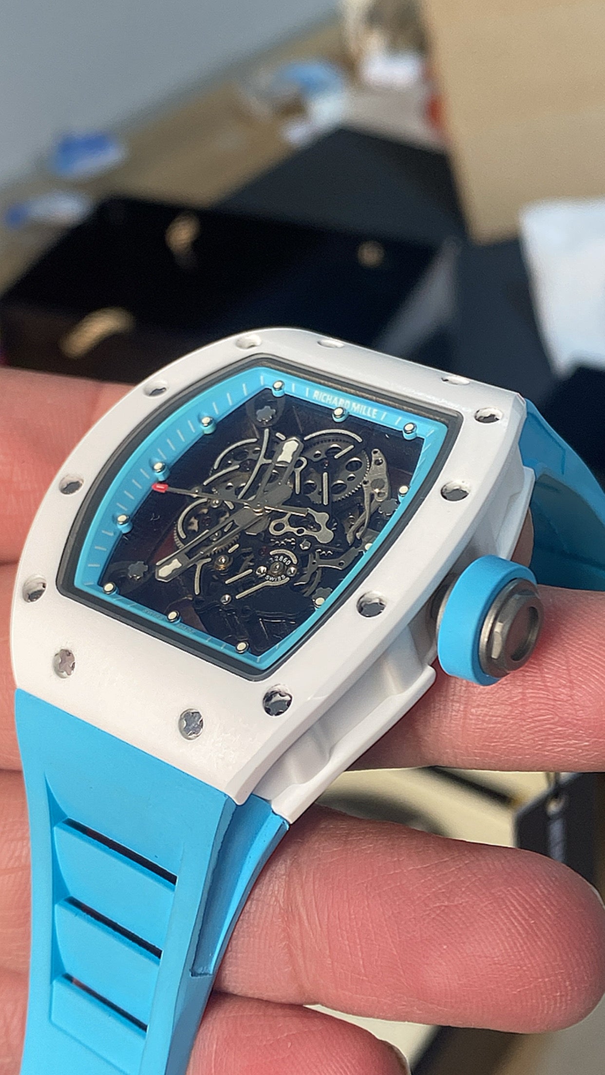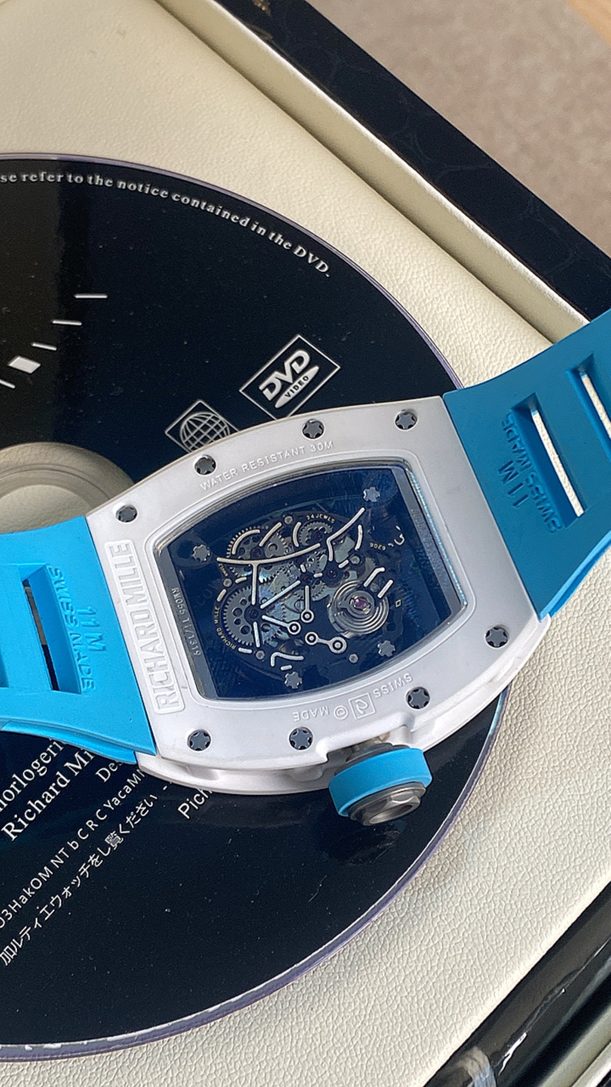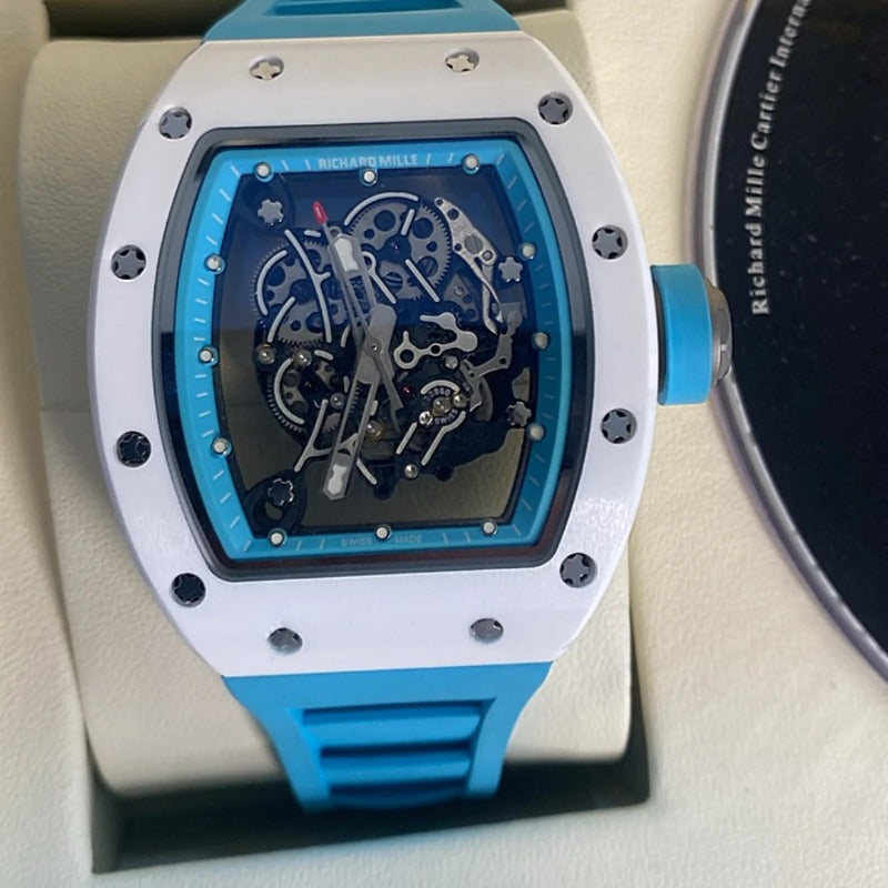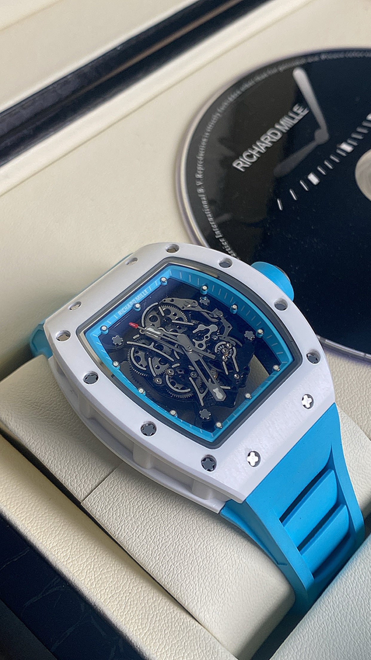 ريتشارد ميل بومبا واتسون وايت سيراميك ستراب ازرق - كلين ماستر مع كامل مرفقاتها