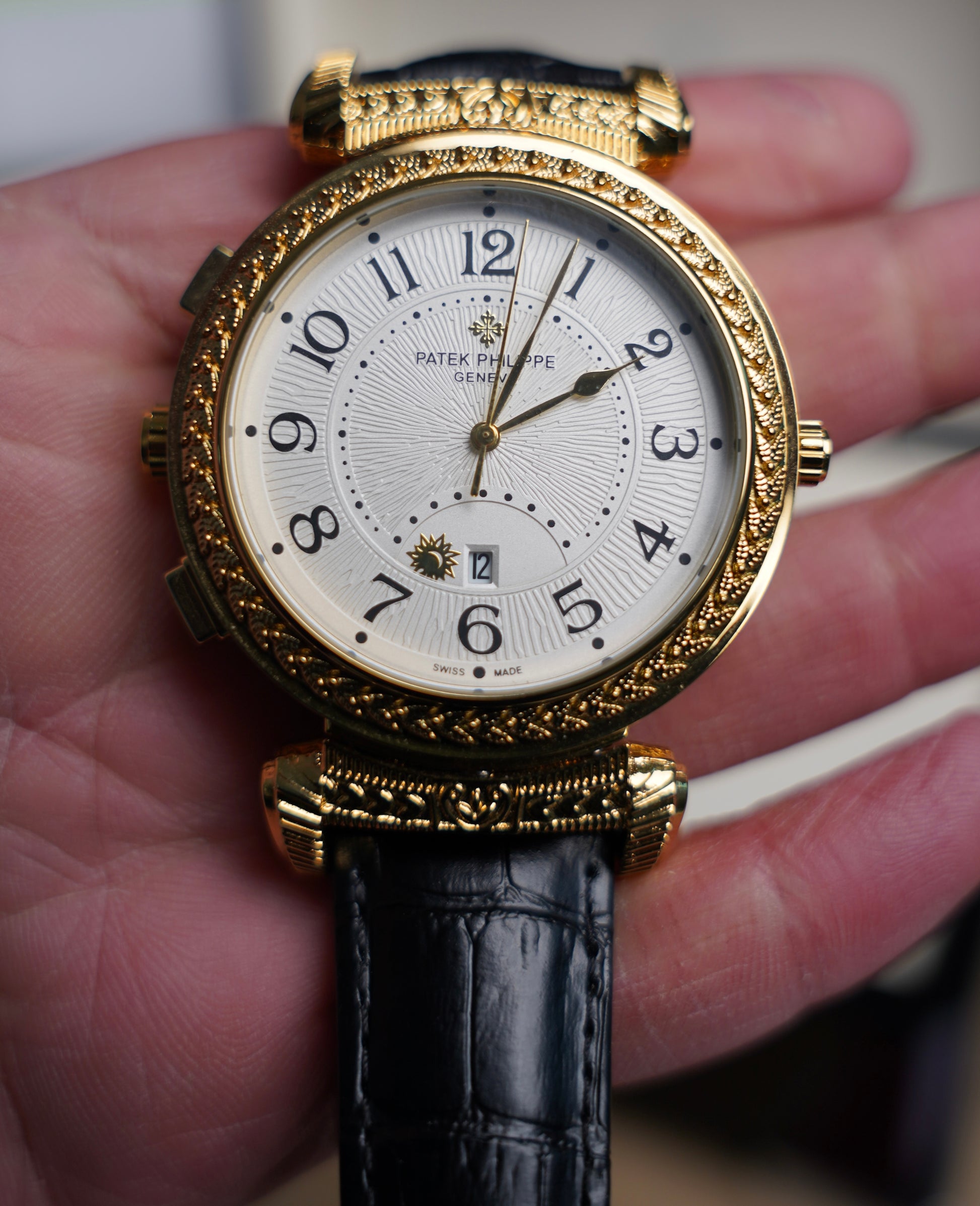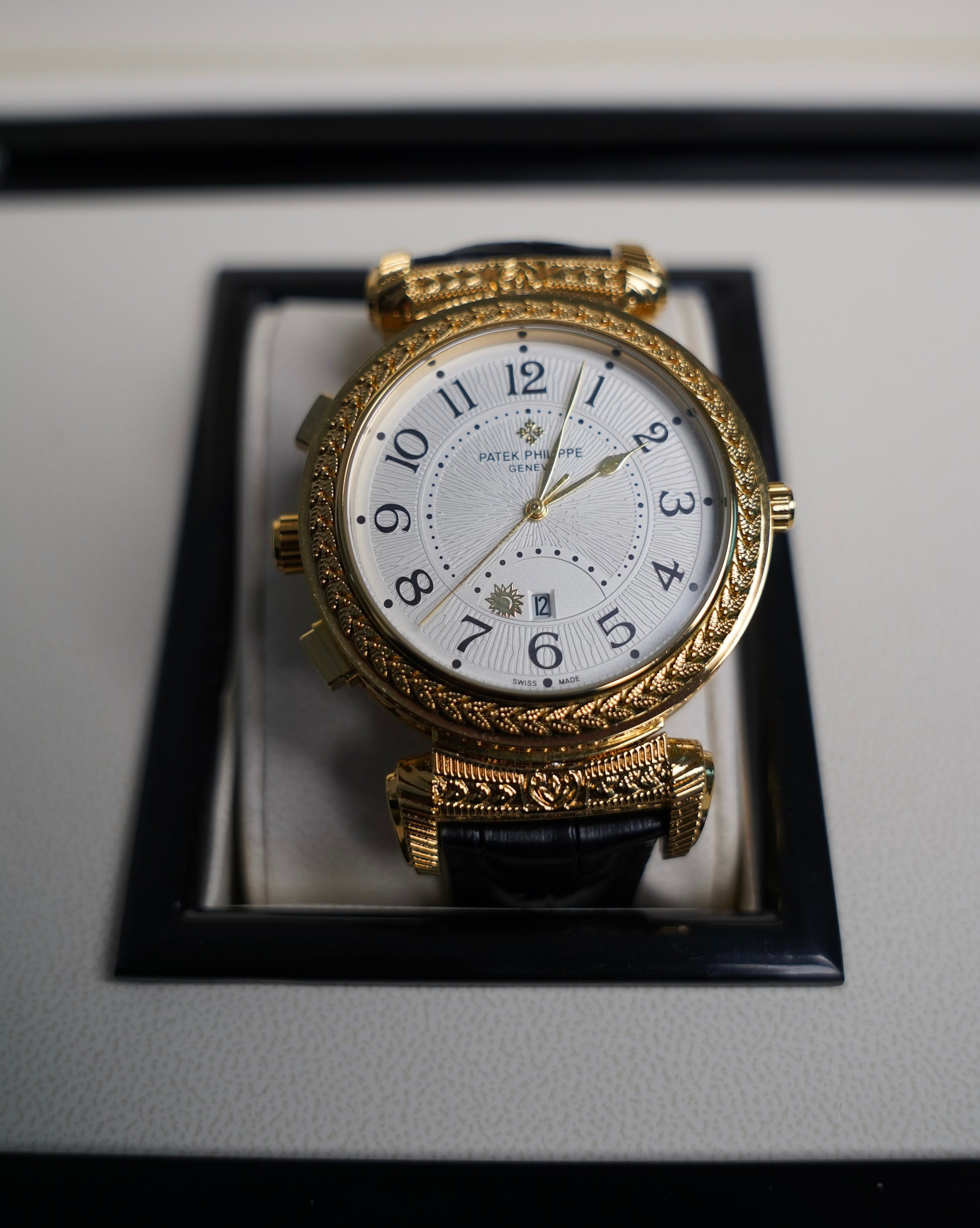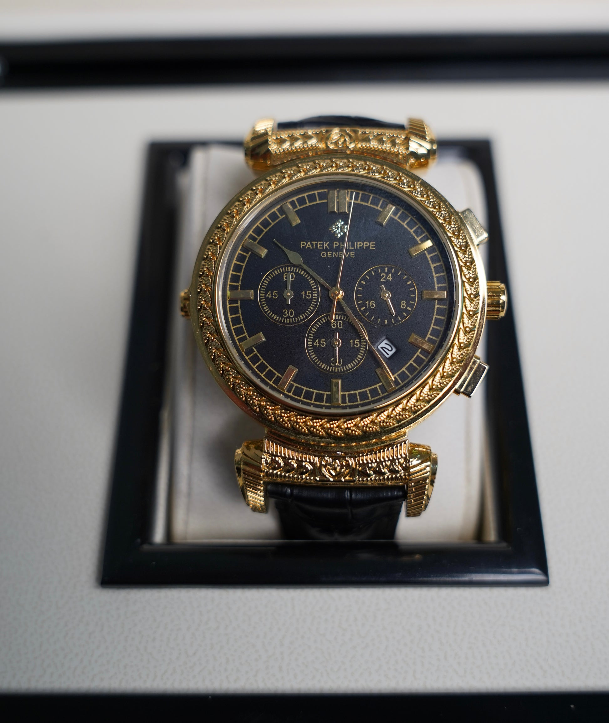 ساعة باتيك فيليب فليب نادرة - ساعتين في نفس الساعة ابيض و اسود و ذهبي