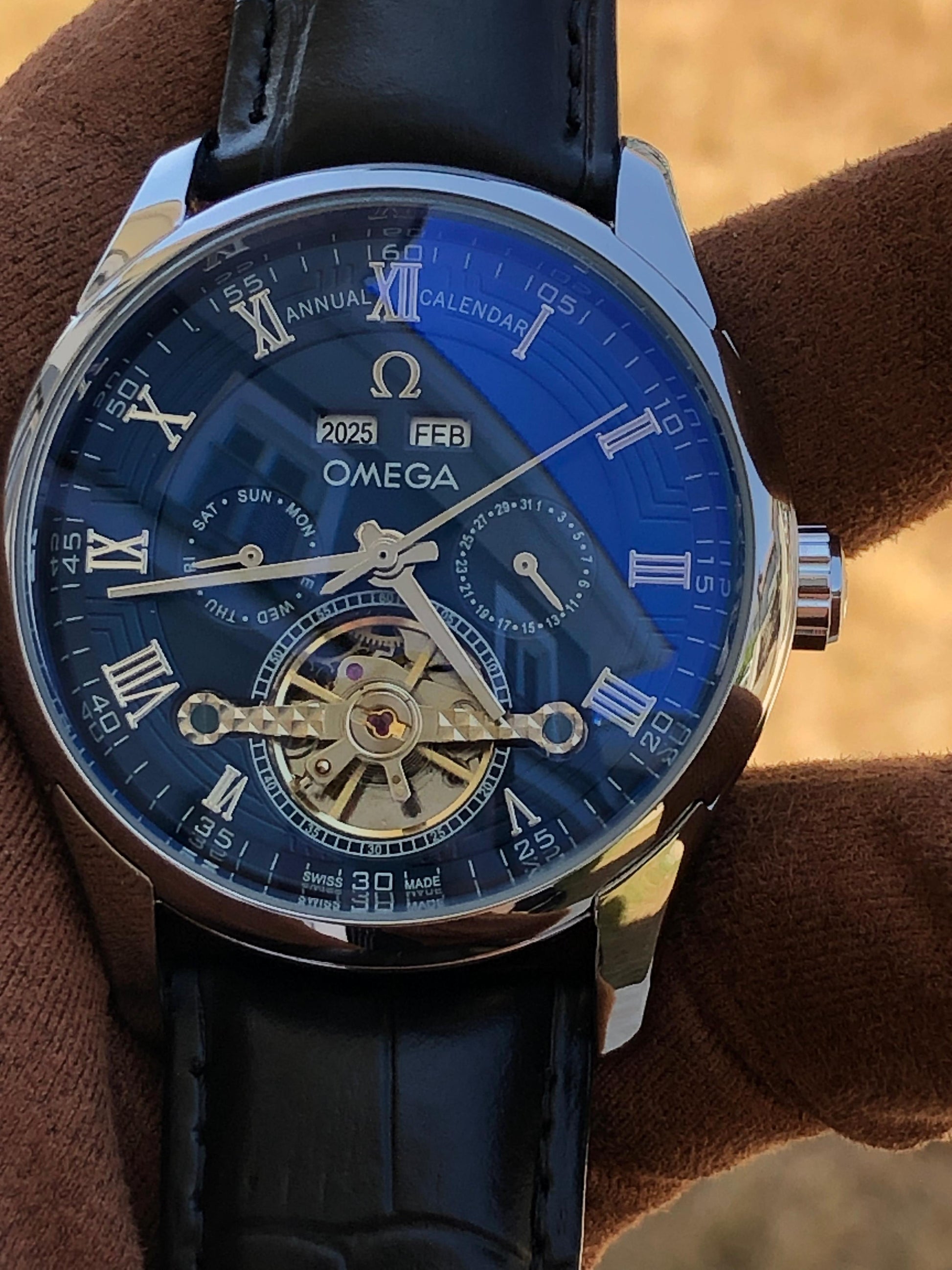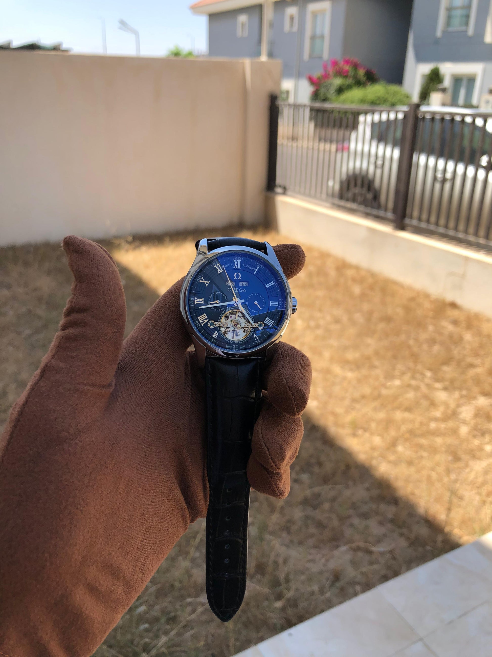 ساعه اوميغا مينا ازرق اوبن هارت مع تاريخ