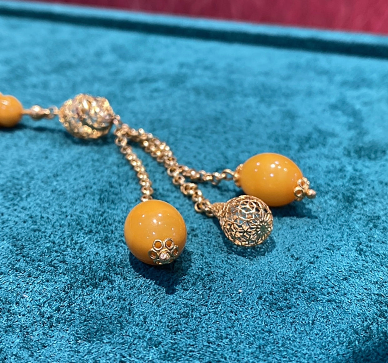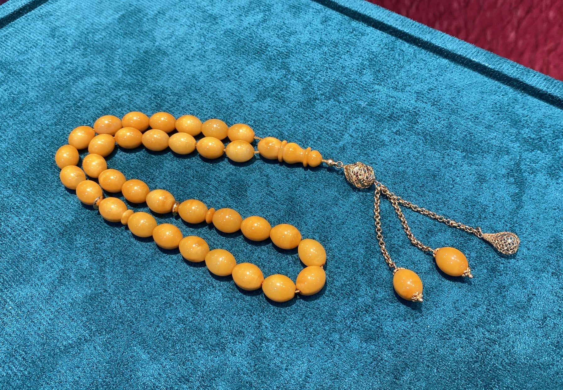 سبحة كهرب ألماني كبس ، السبحة قديمة لكن تم تركيب الذهب عليها ، ذهب خالص عيار ٢١