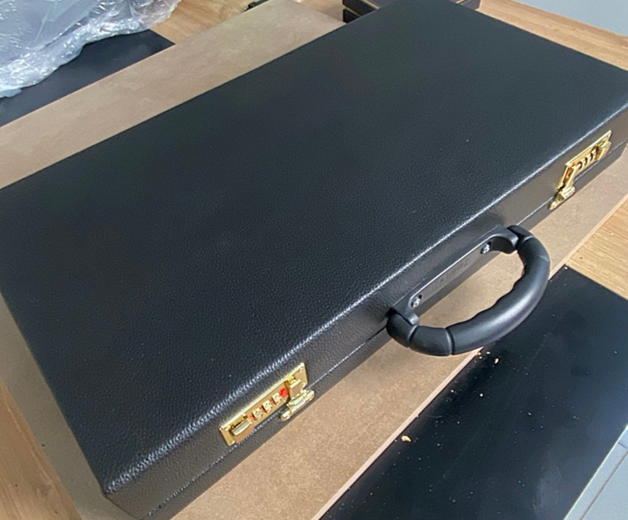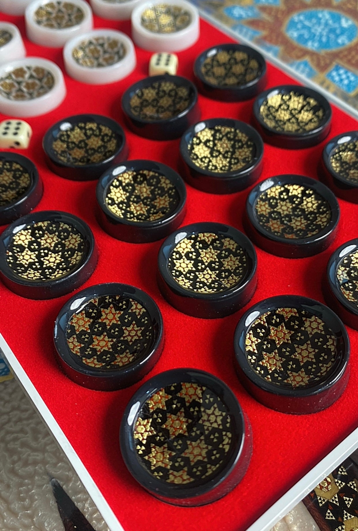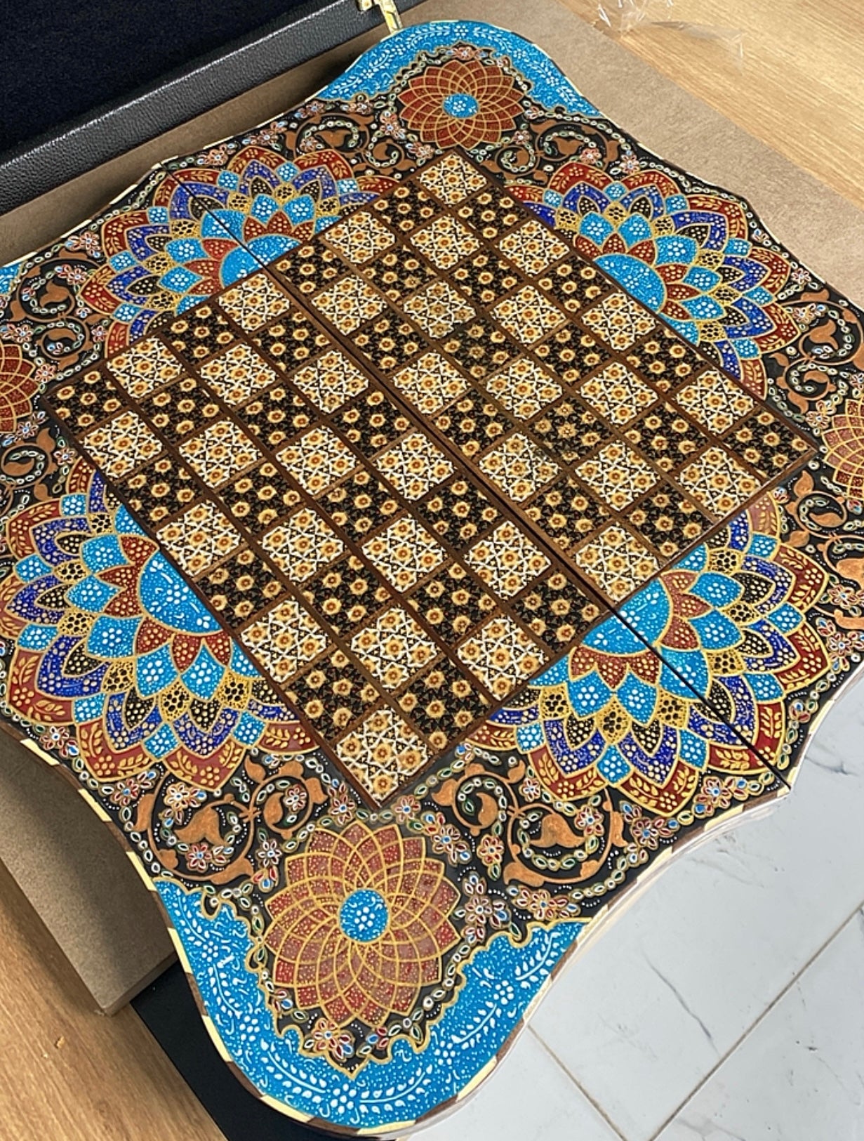 طاولي + شطرنج زخرفة سوداء راقية صناعة يدوية - جنطة جلد فاخرة السعر بدون احجار شطرنج ٥٥٠ الف ومع احجار شطرنج ٦٥٠ الف