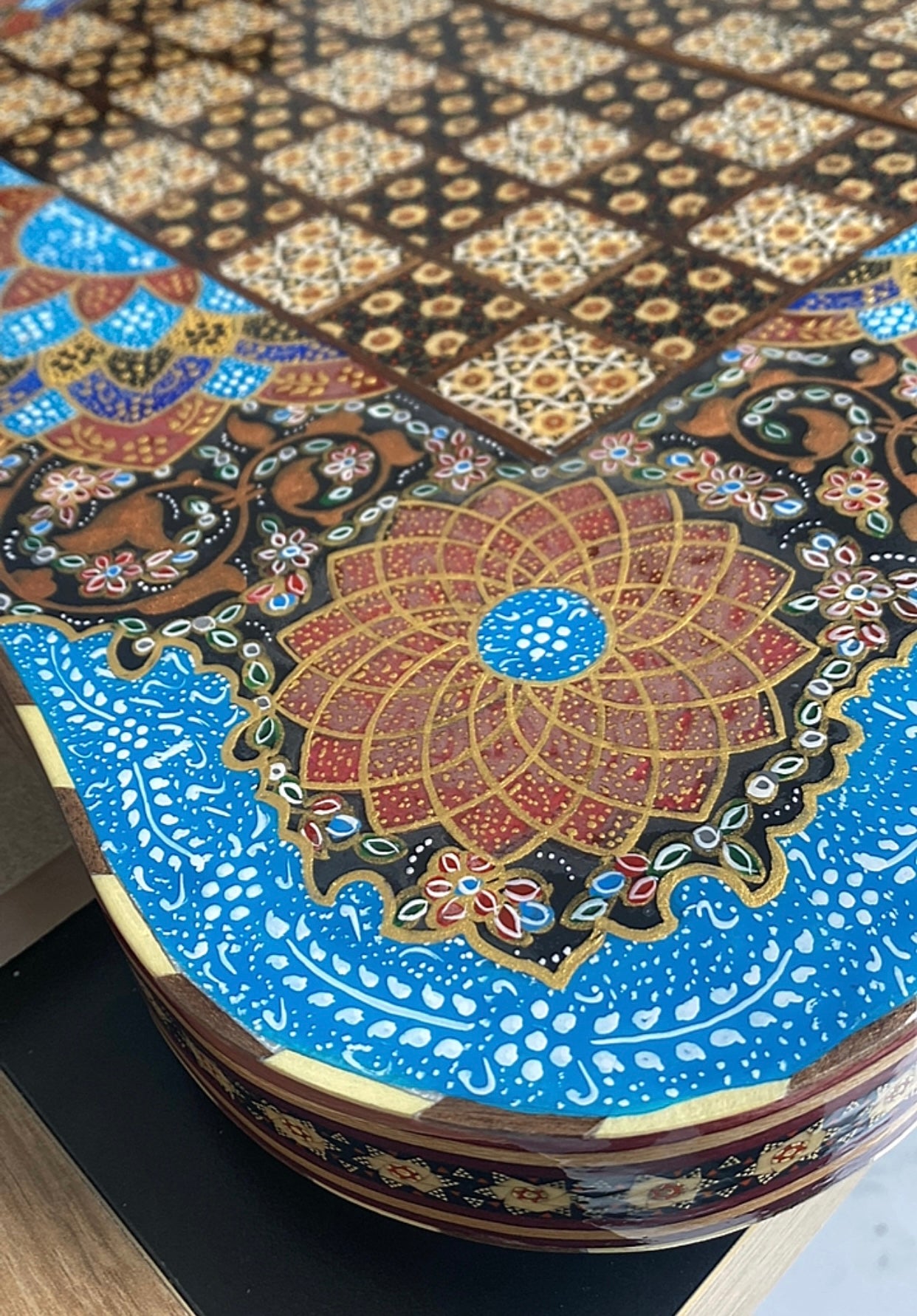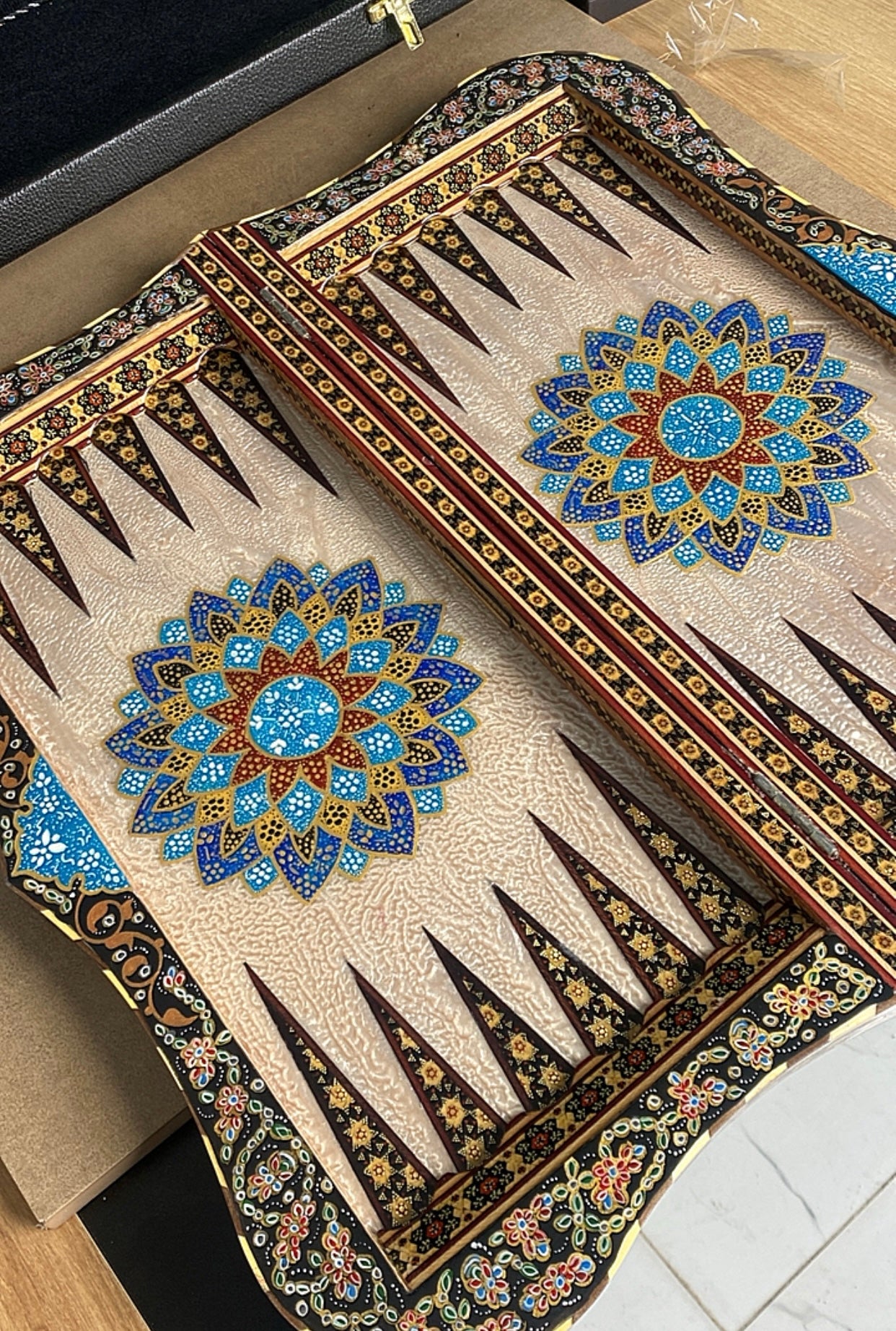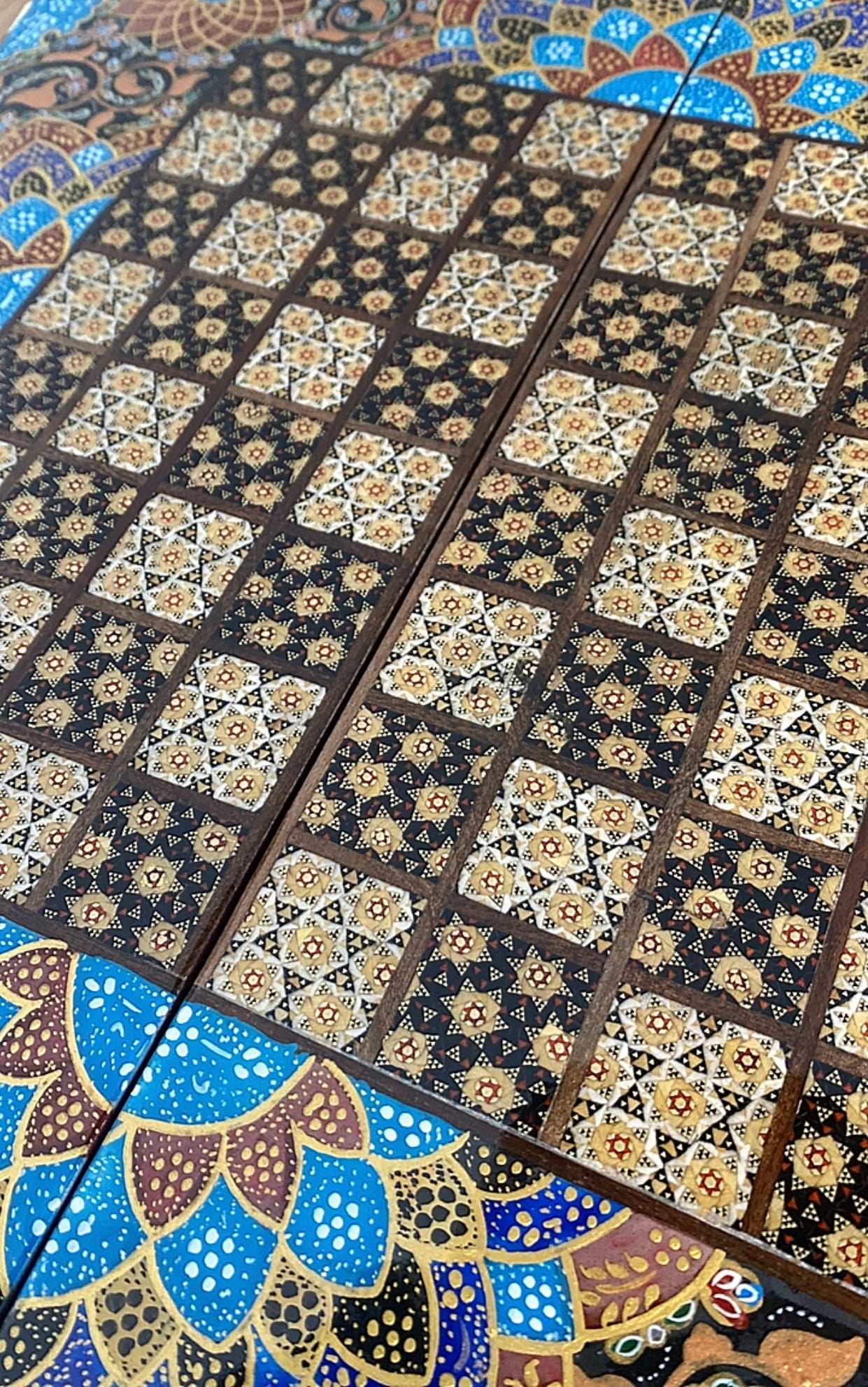 طاولي + شطرنج زخرفة سوداء راقية صناعة يدوية - جنطة جلد فاخرة السعر بدون احجار شطرنج ٥٥٠ الف ومع احجار شطرنج ٦٥٠ الف
