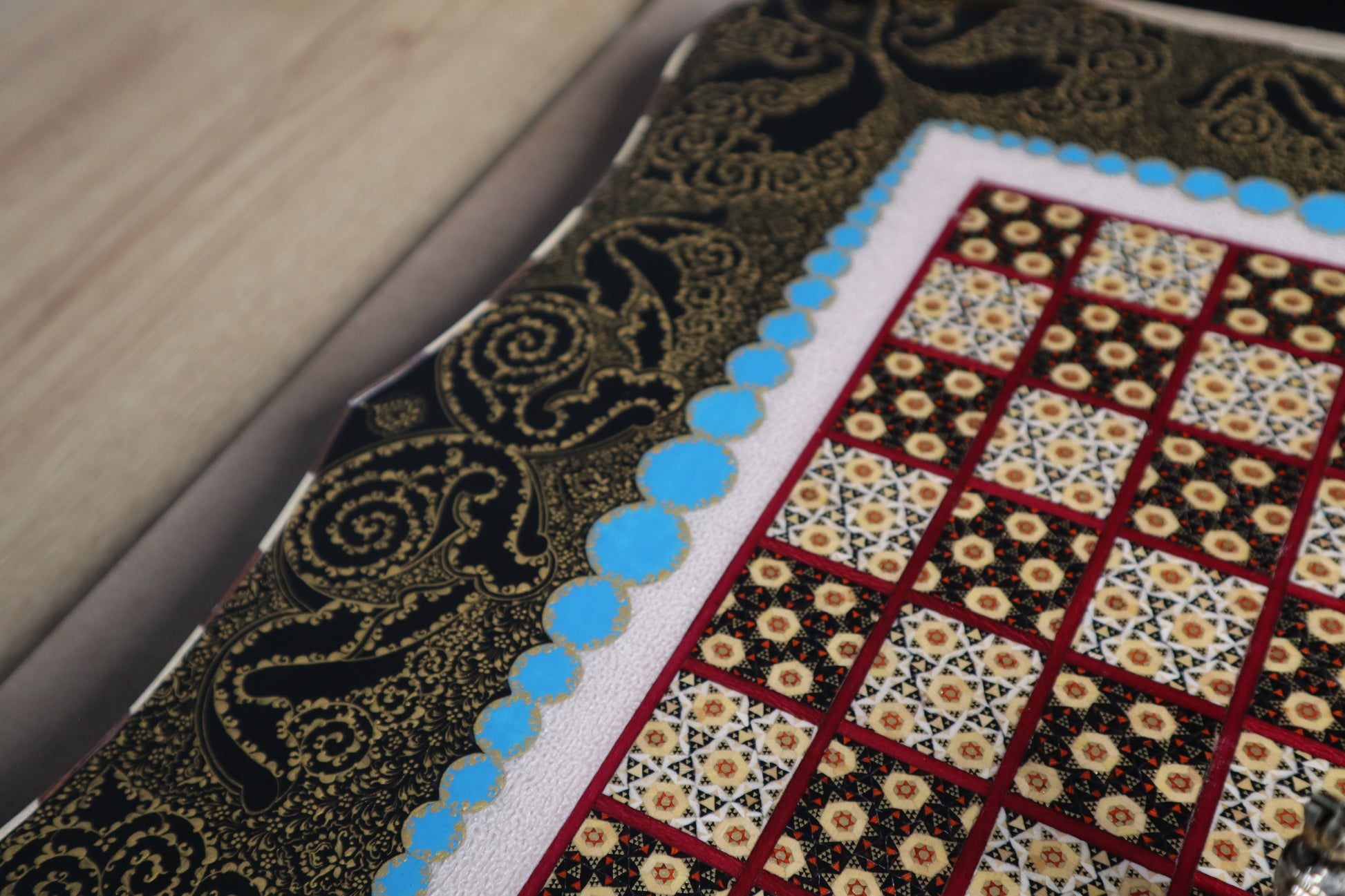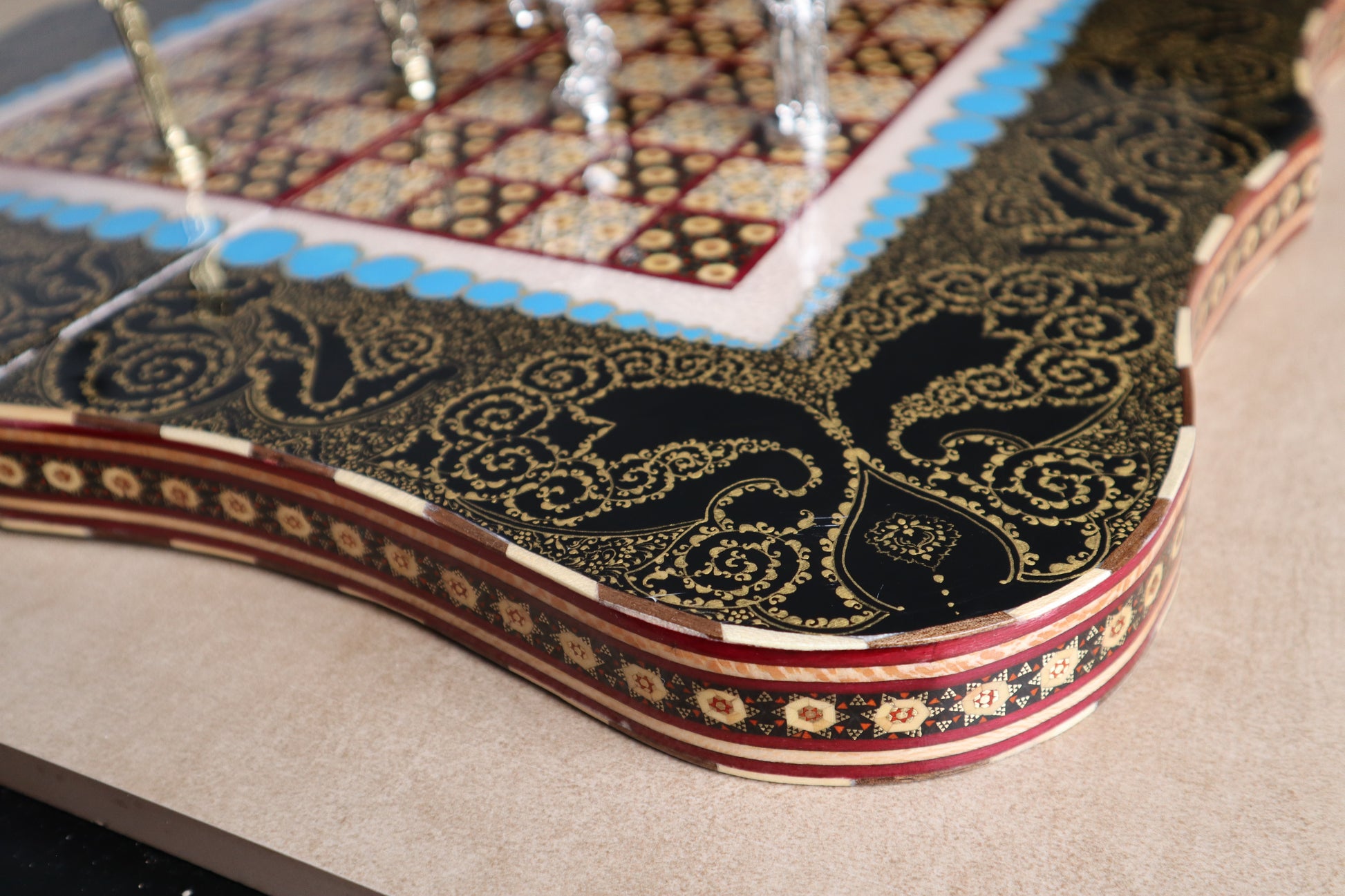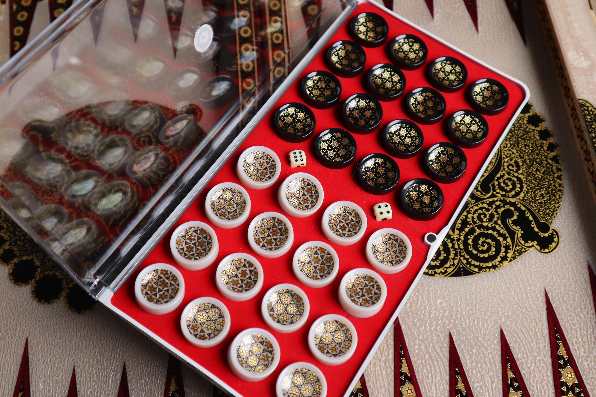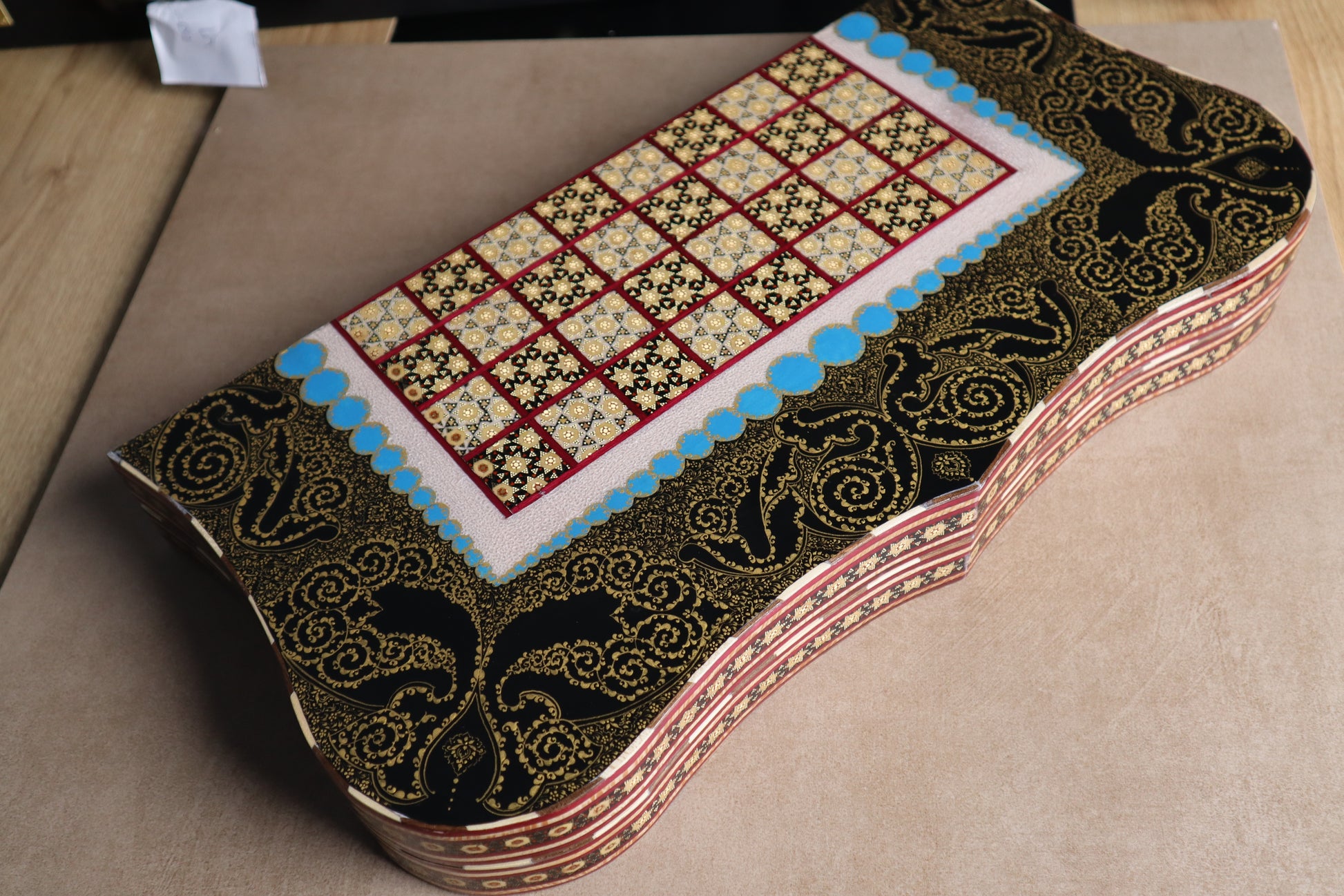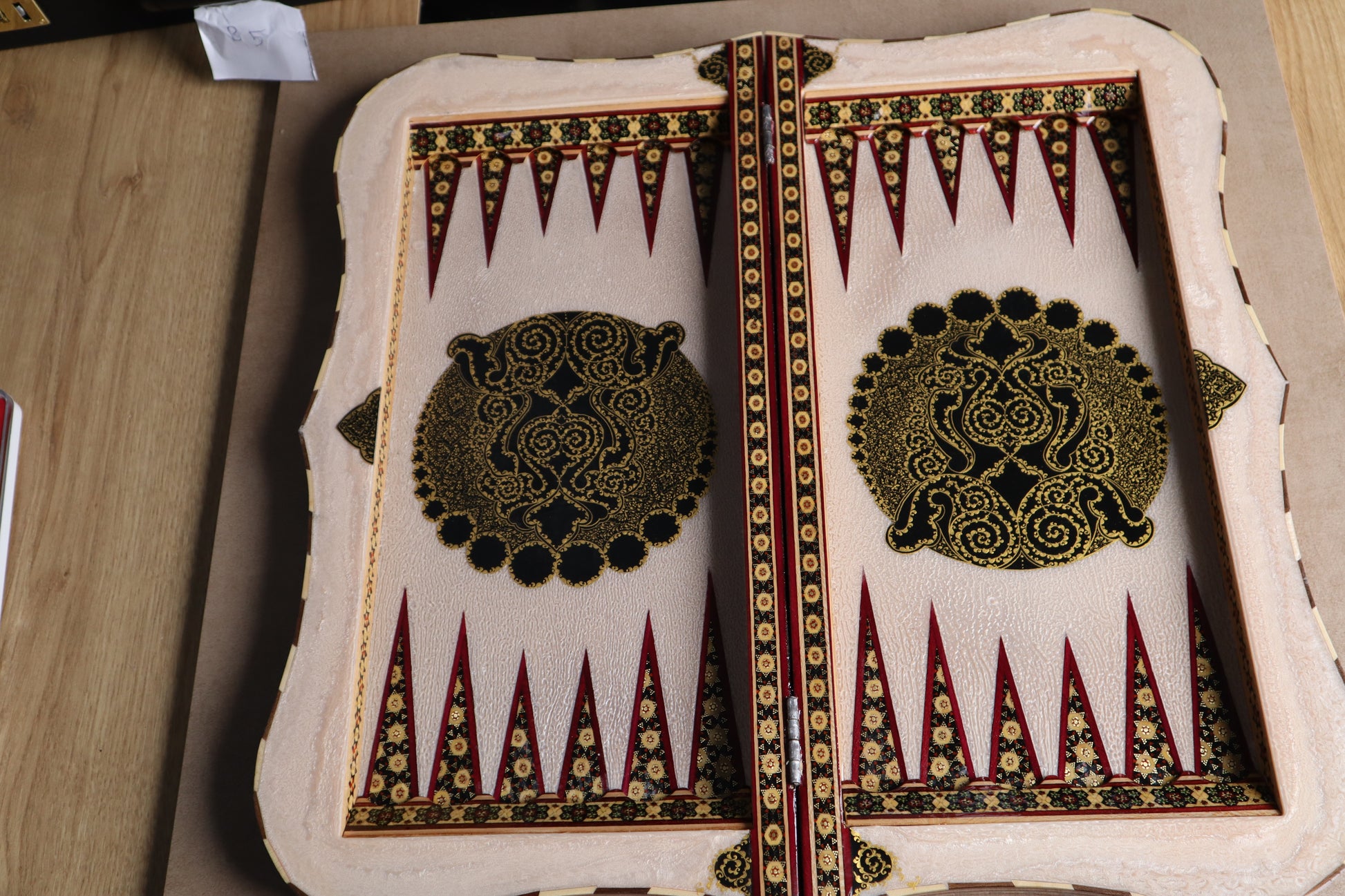 طاولي + شطرنج زخرفة راقية صناعة يدوية - جنطة جلد فاخرة جنود براص B5