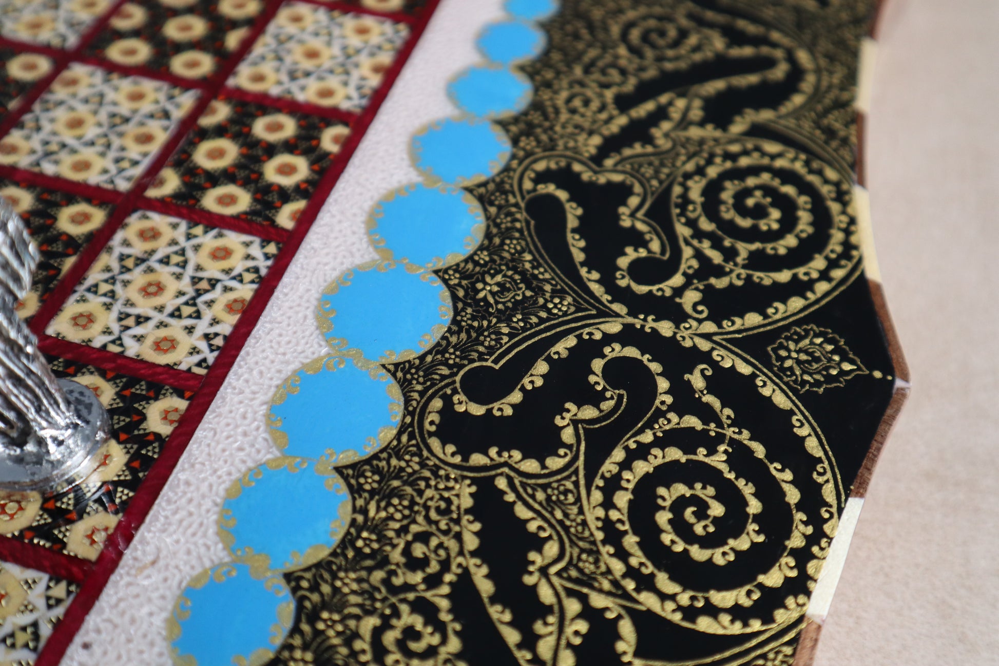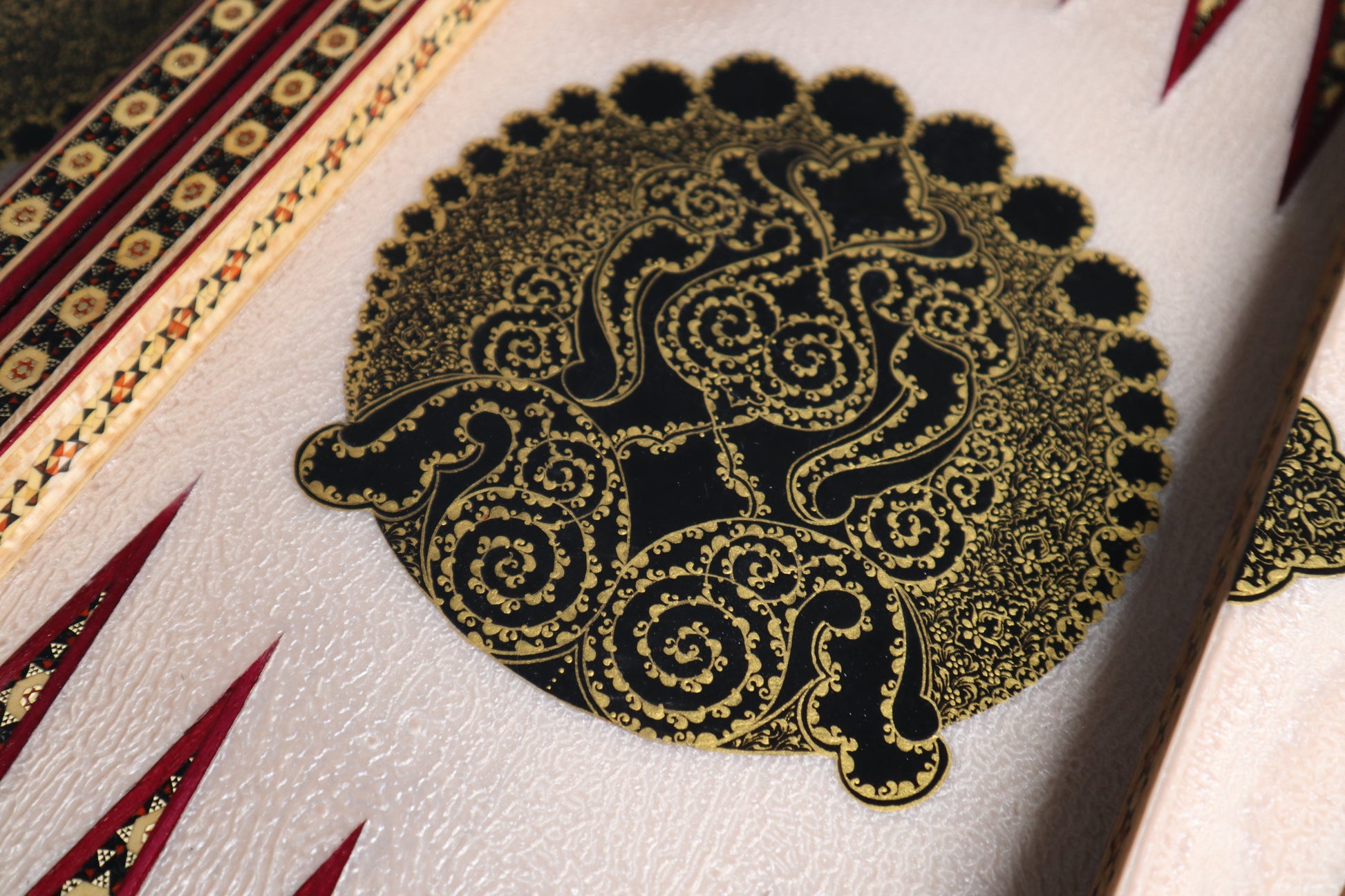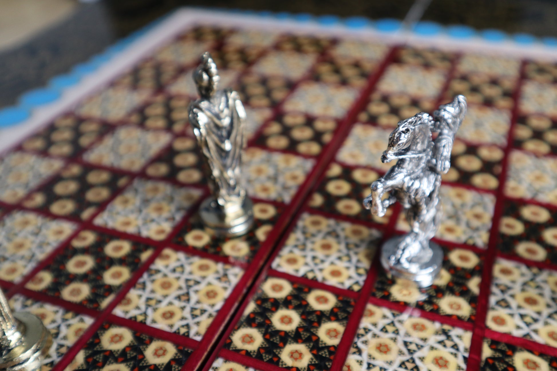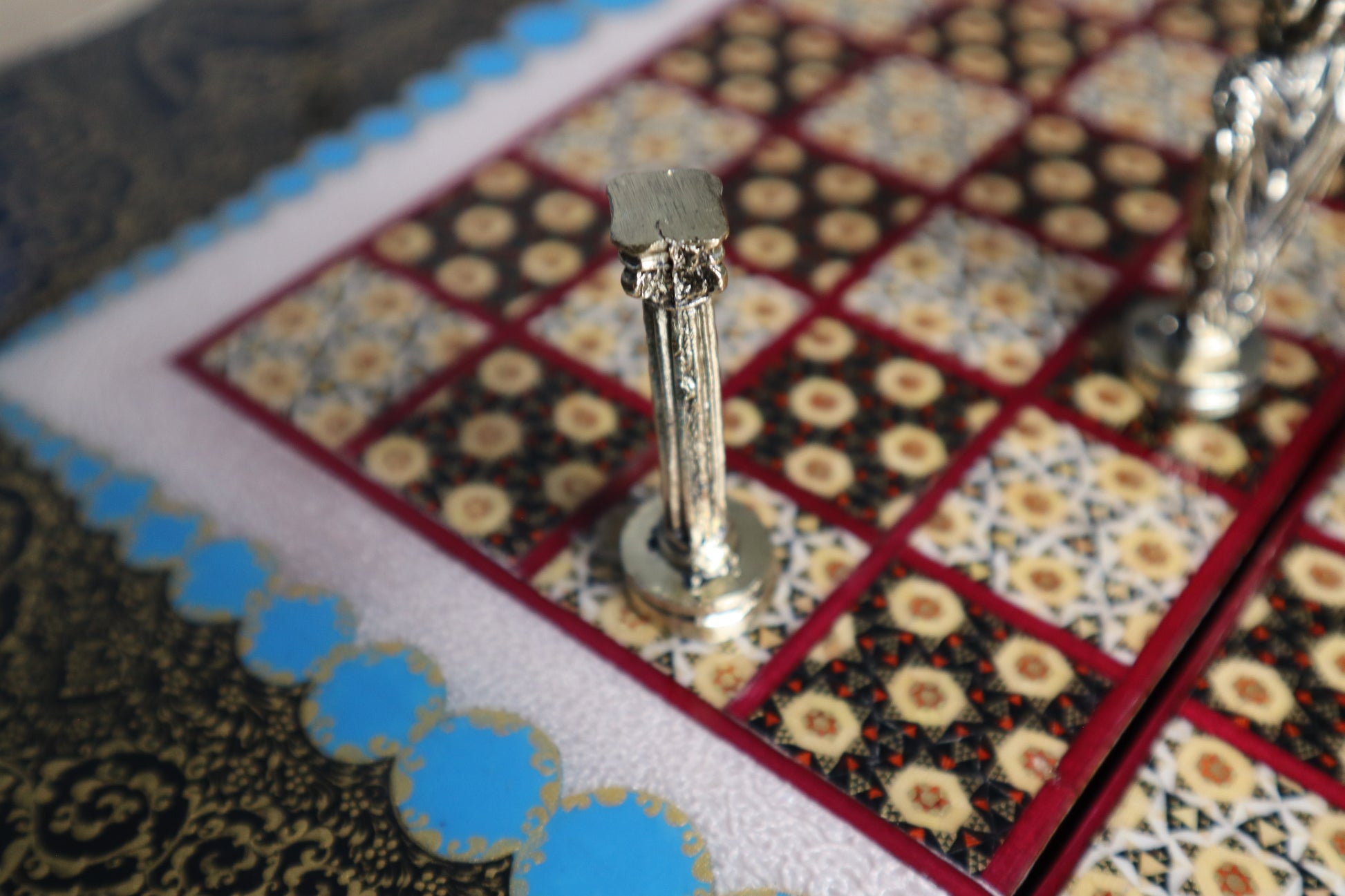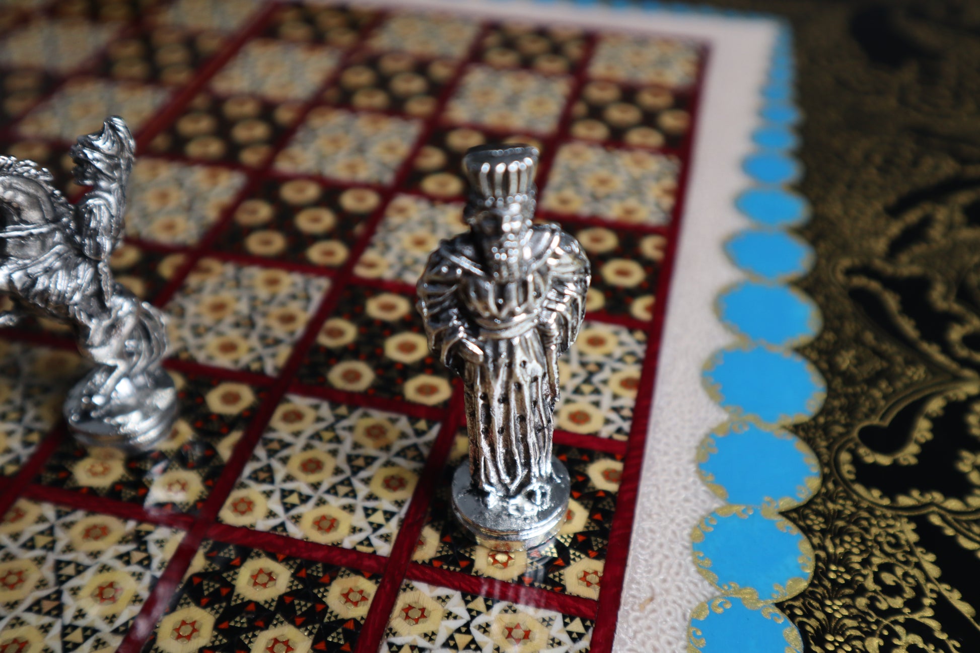 طاولي + شطرنج زخرفة راقية صناعة يدوية - جنطة جلد فاخرة جنود براص B5