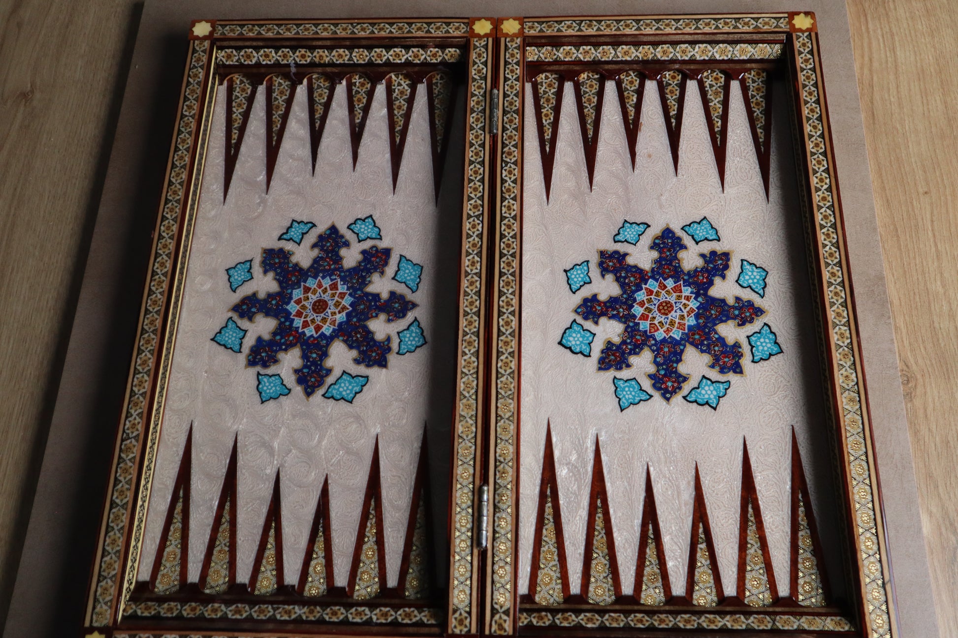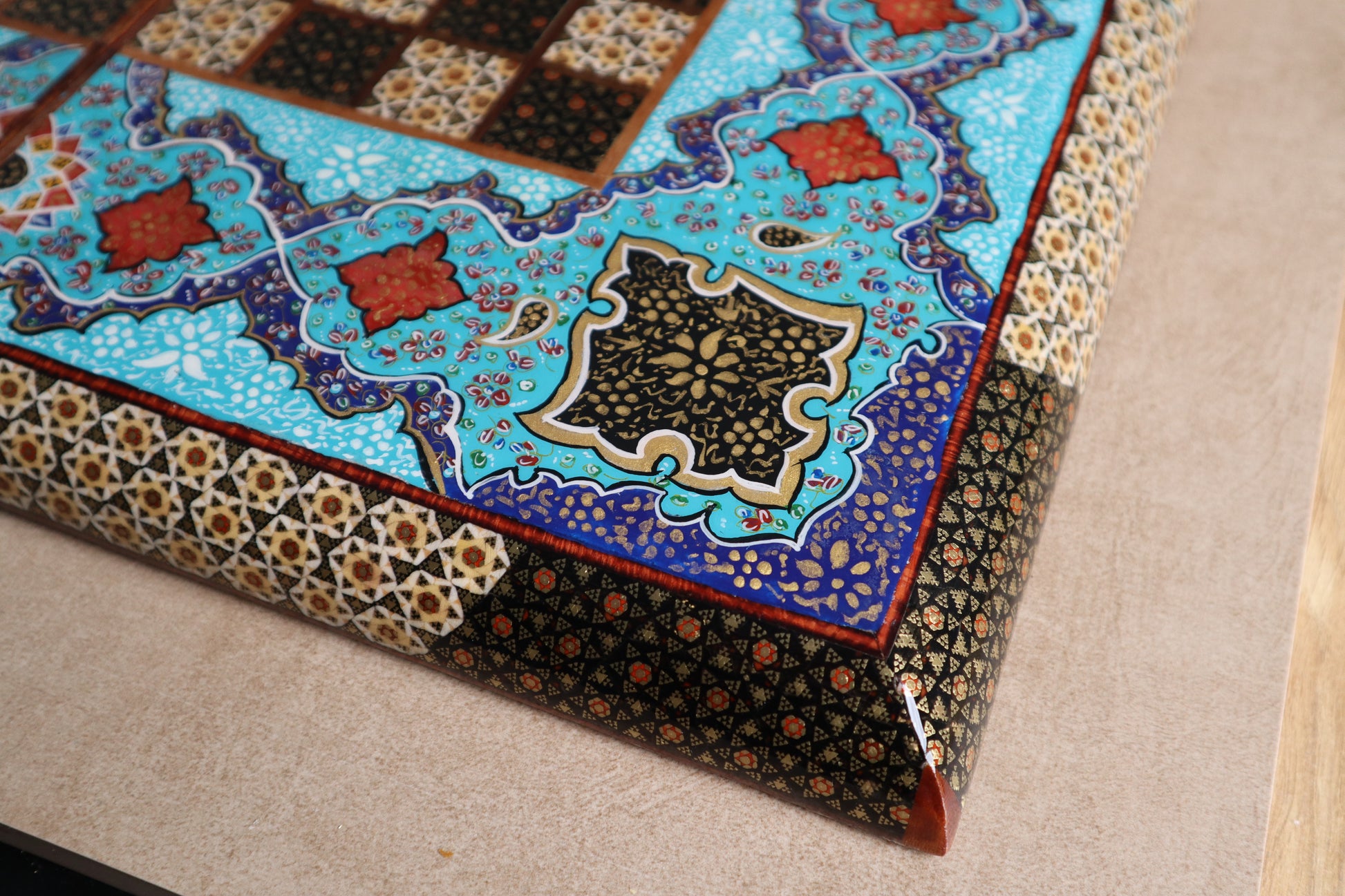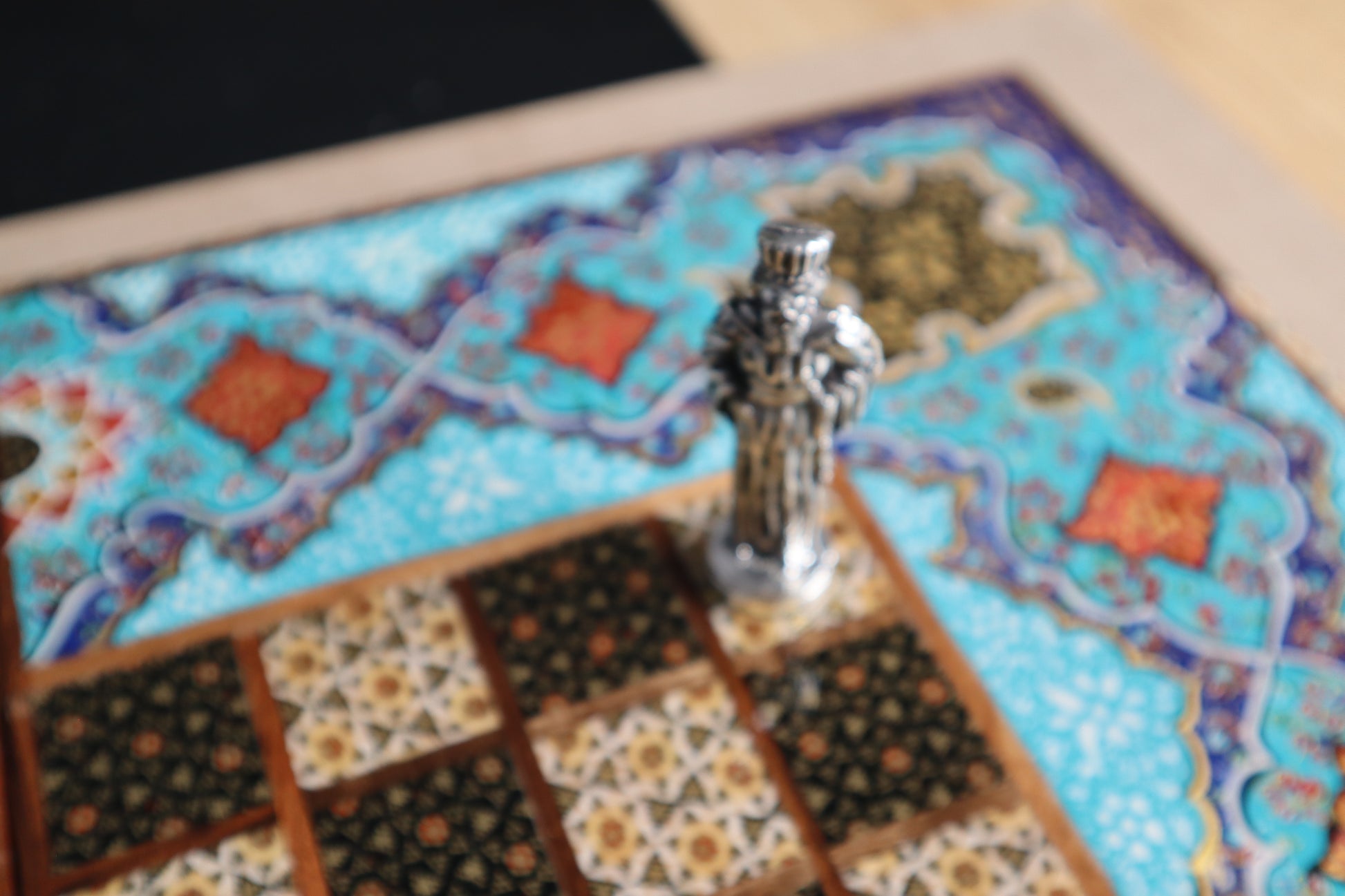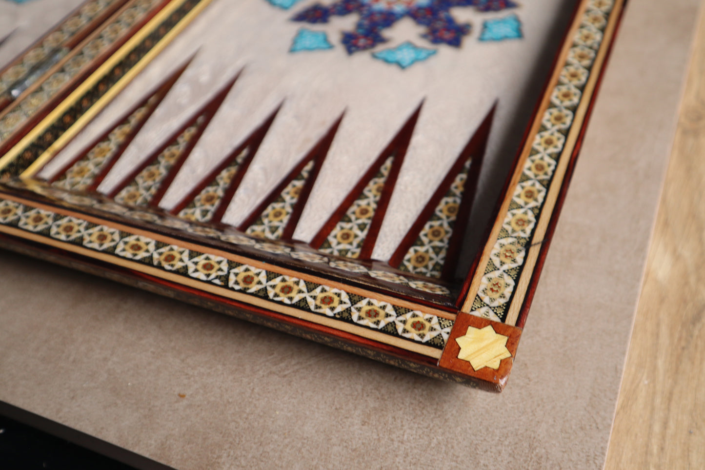 طاولي + شطرنج زخرفة راقية صناعة يدوية - جنطة جلد فاخرة جنود براص B7