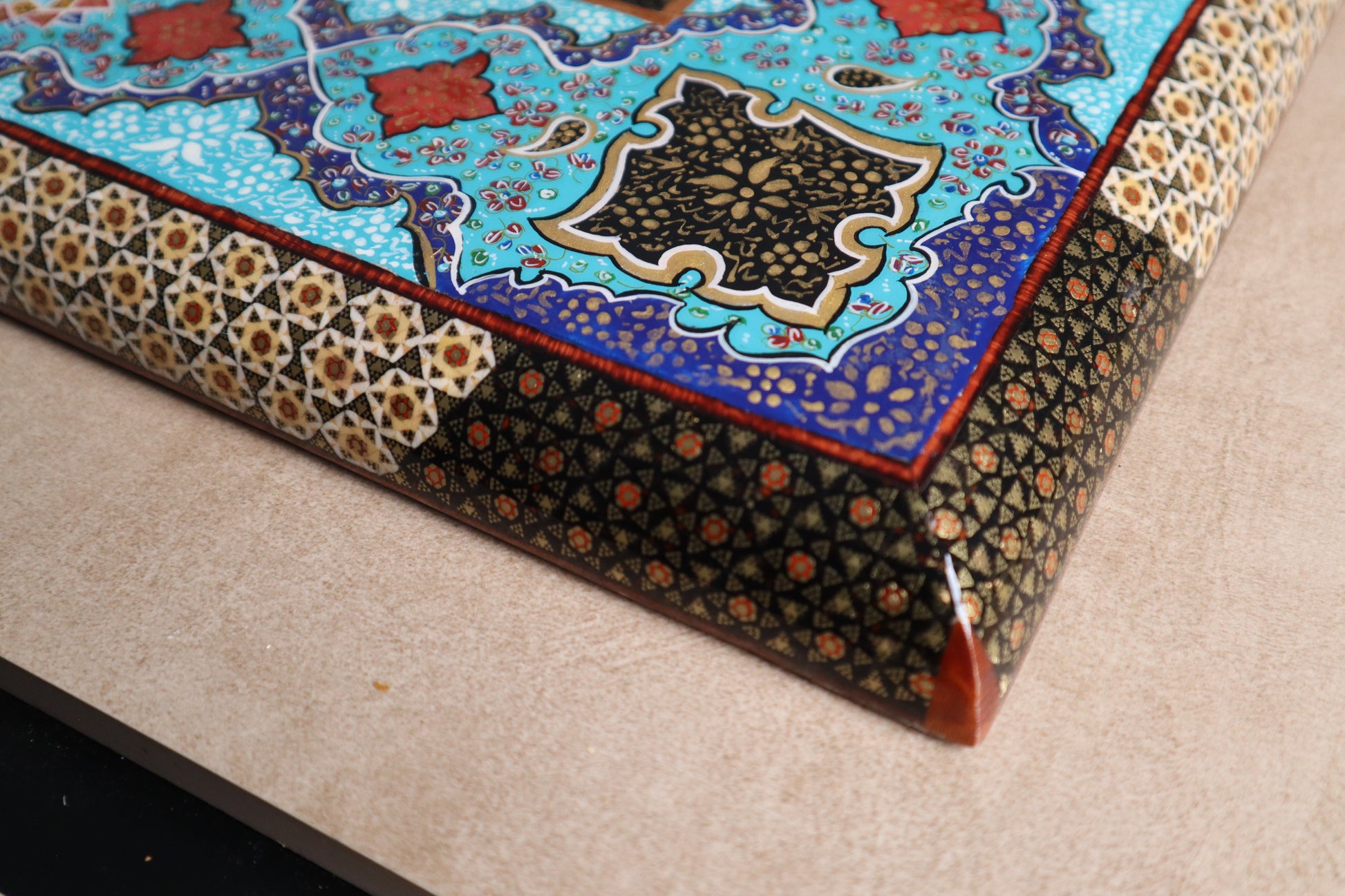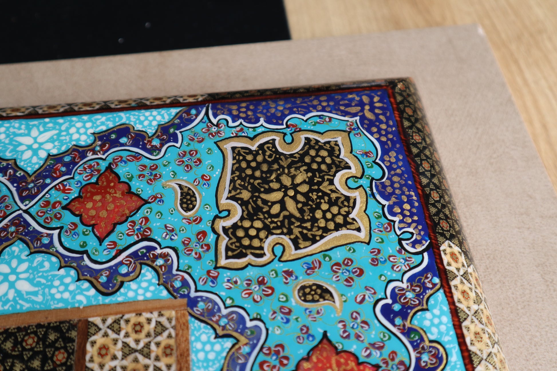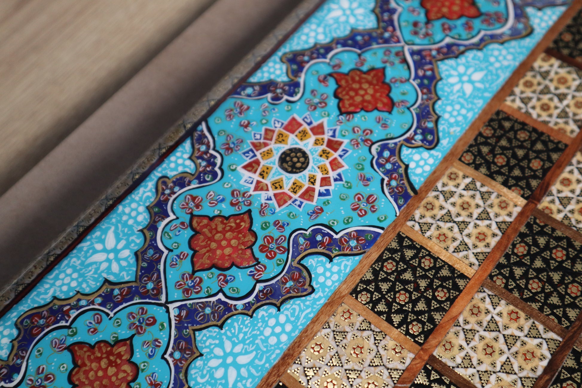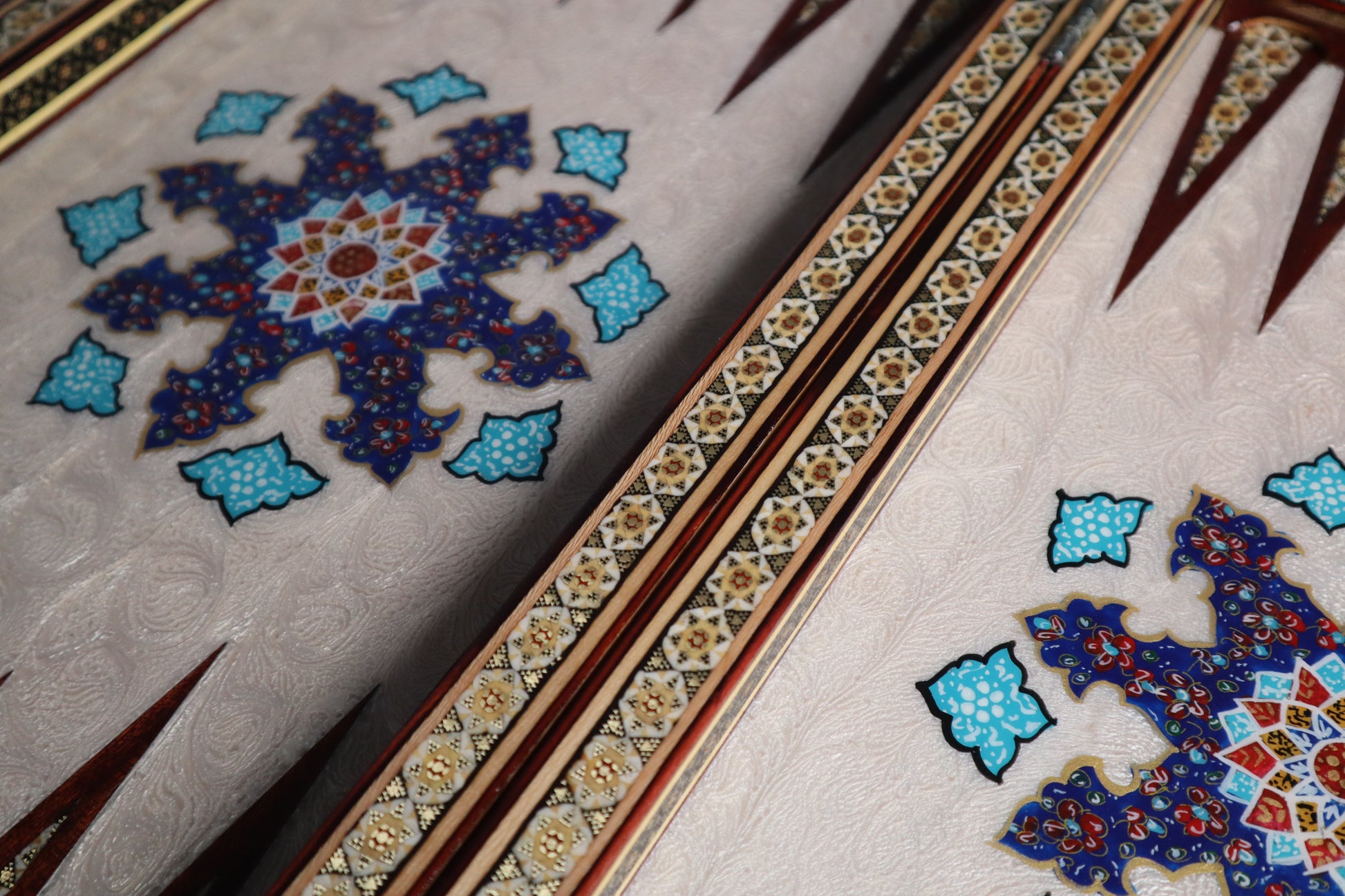 طاولي + شطرنج زخرفة راقية صناعة يدوية - جنطة جلد فاخرة جنود براص B7