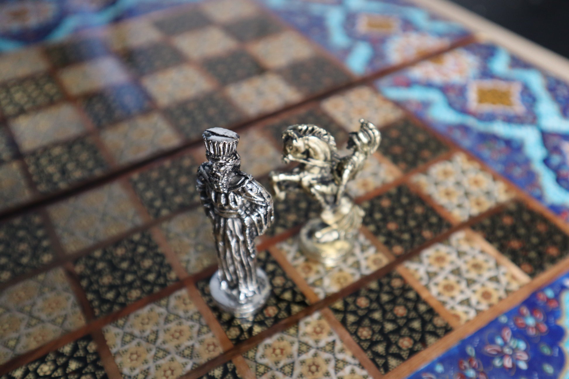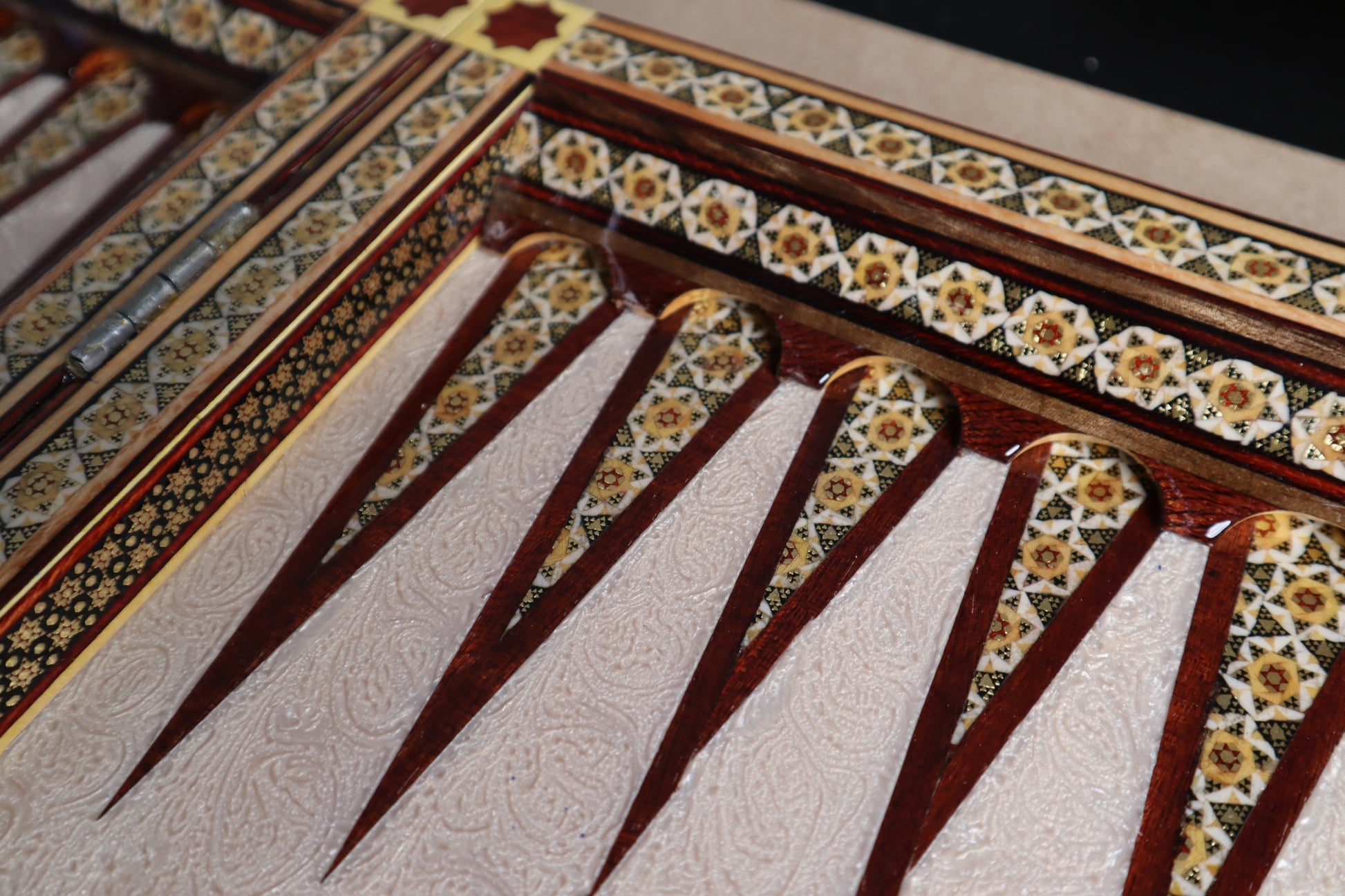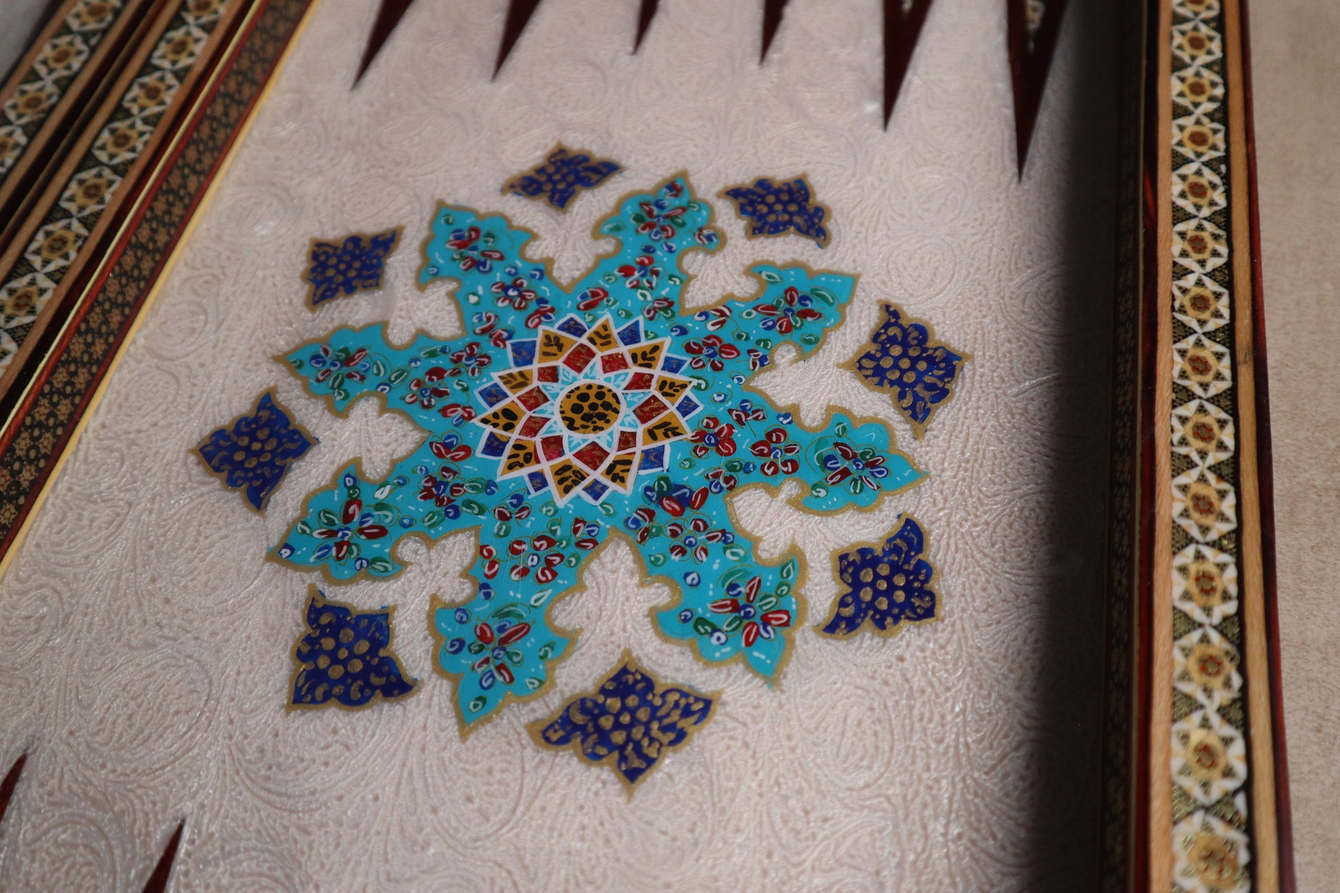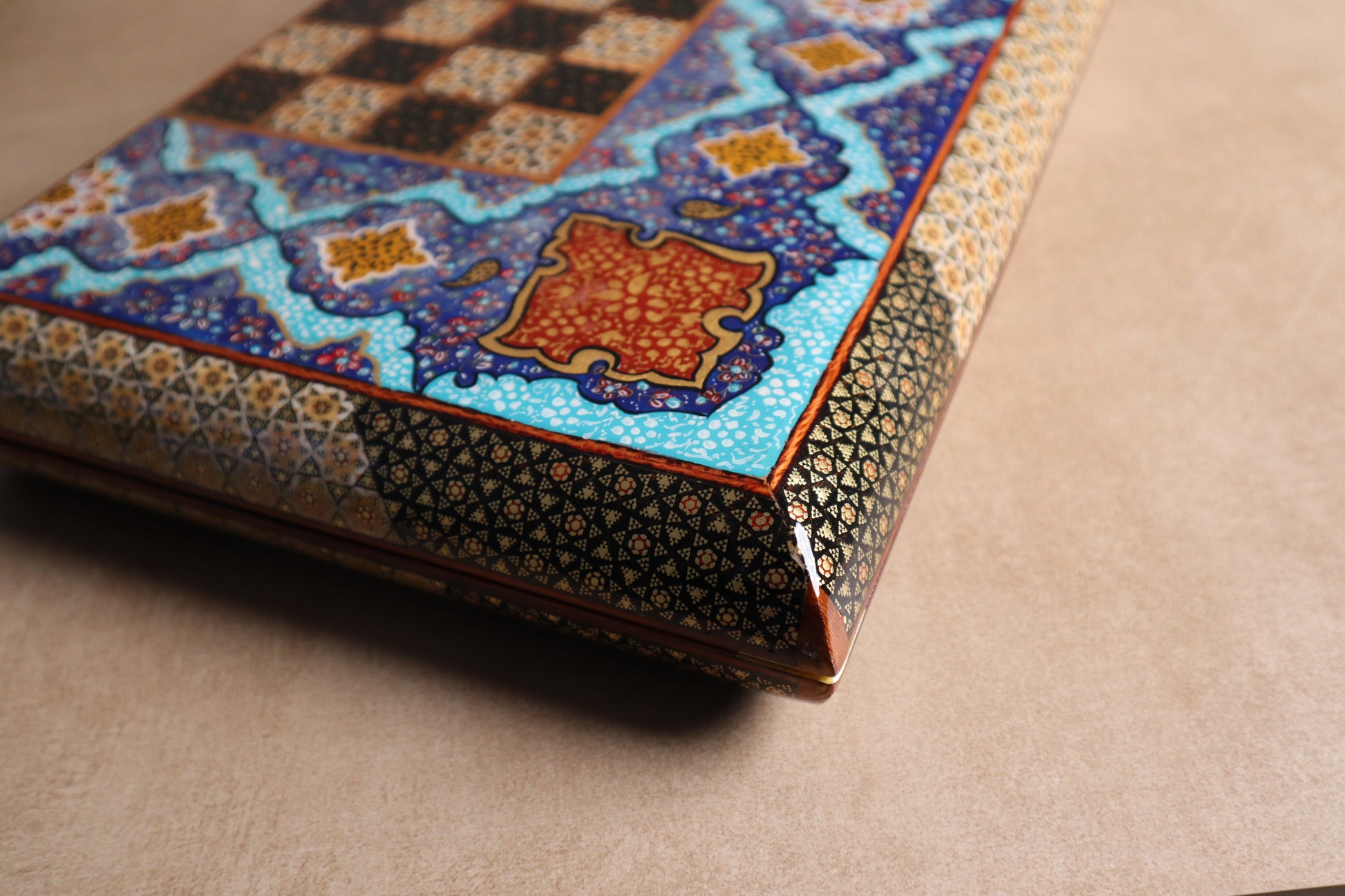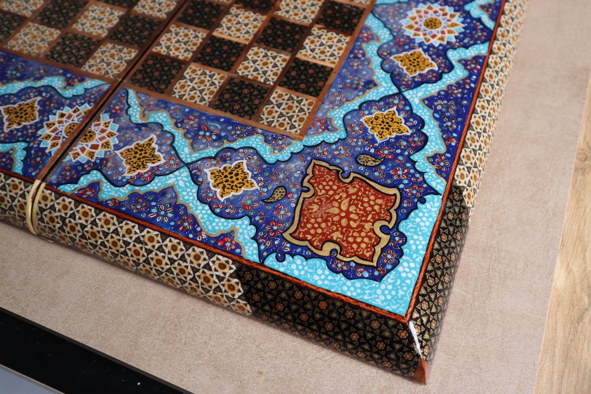 طاولي + شطرنج زخرفة راقية صناعة يدوية - جنطة جلد فاخرة جنود براص B6