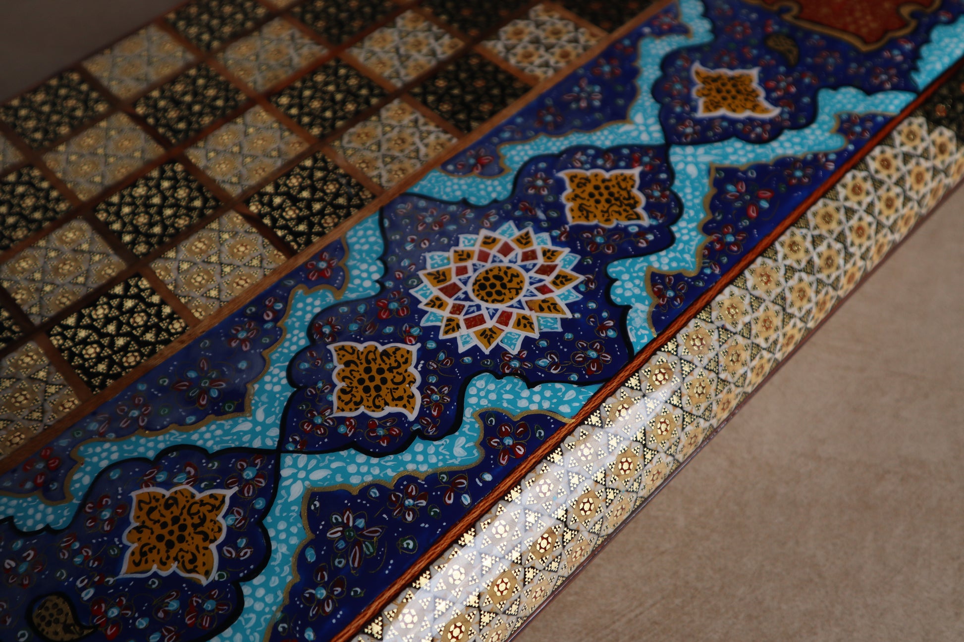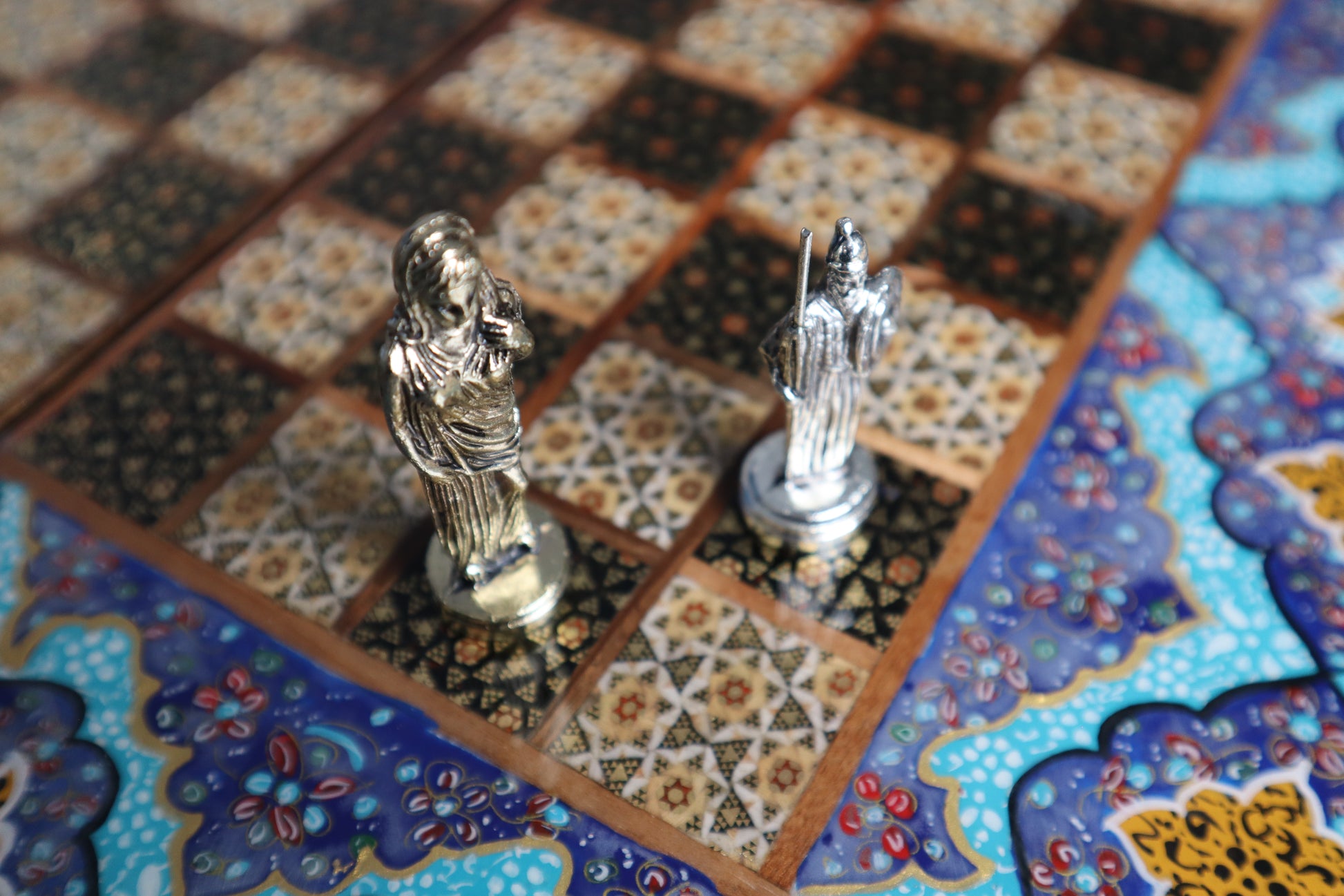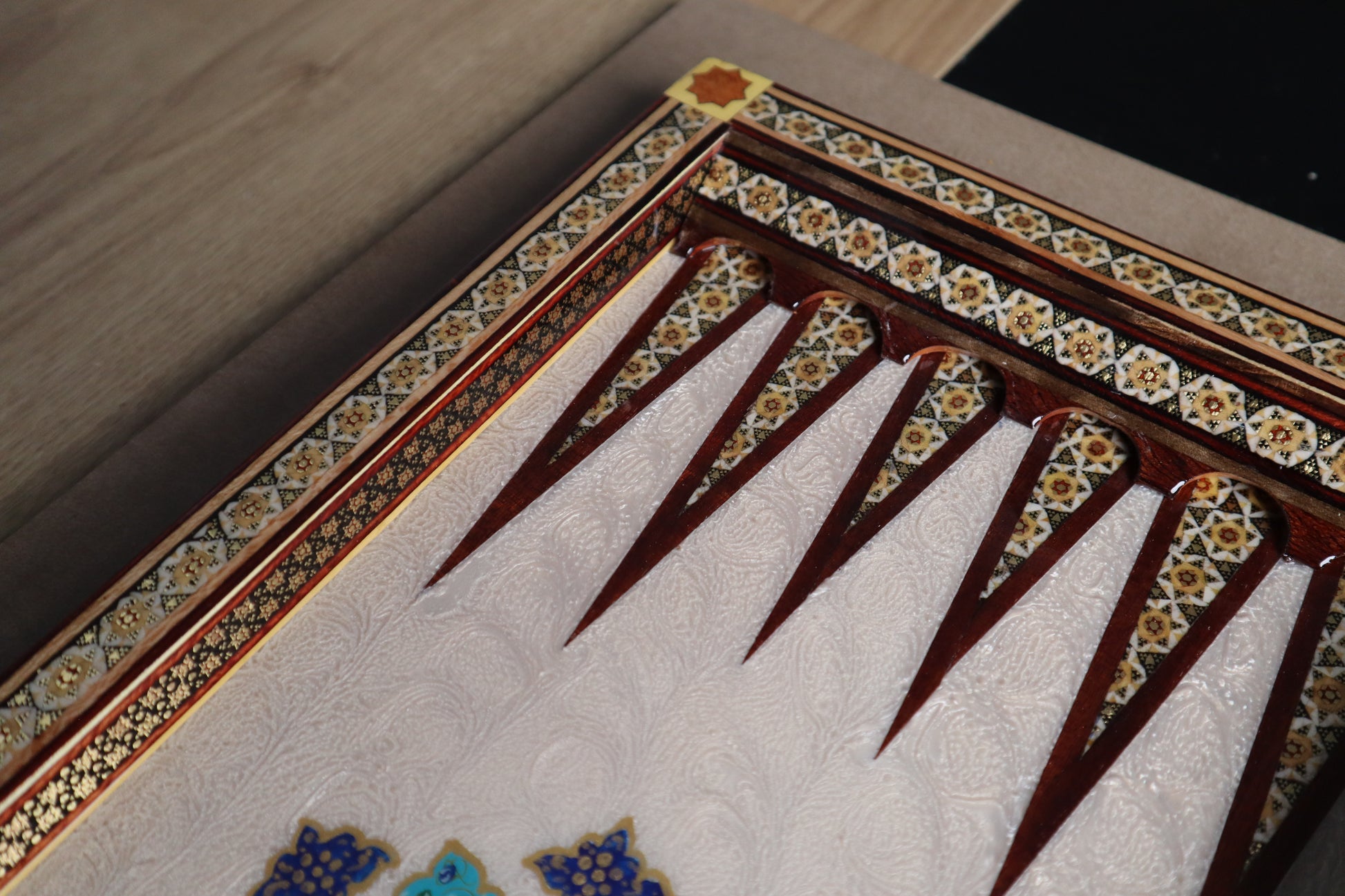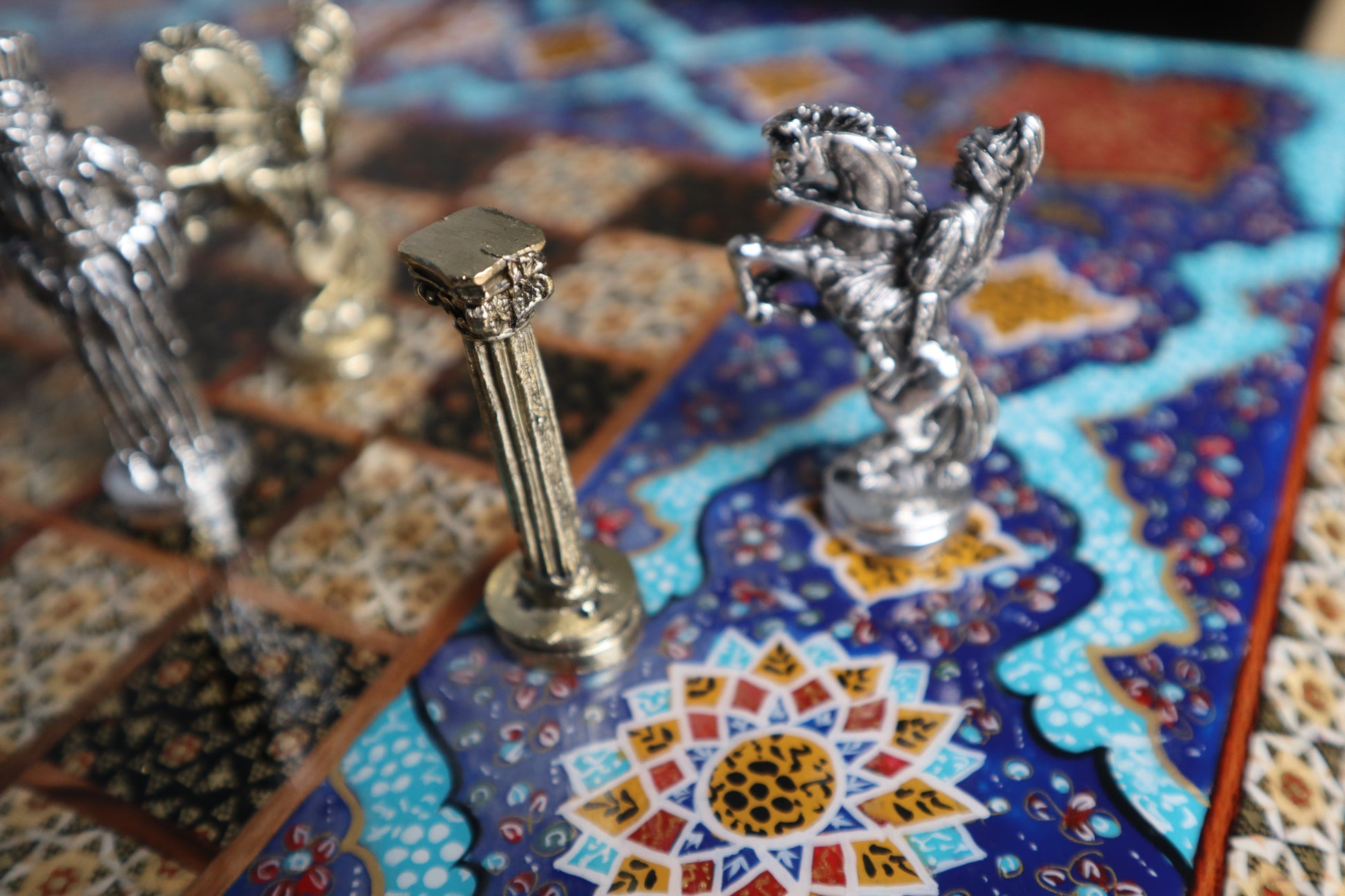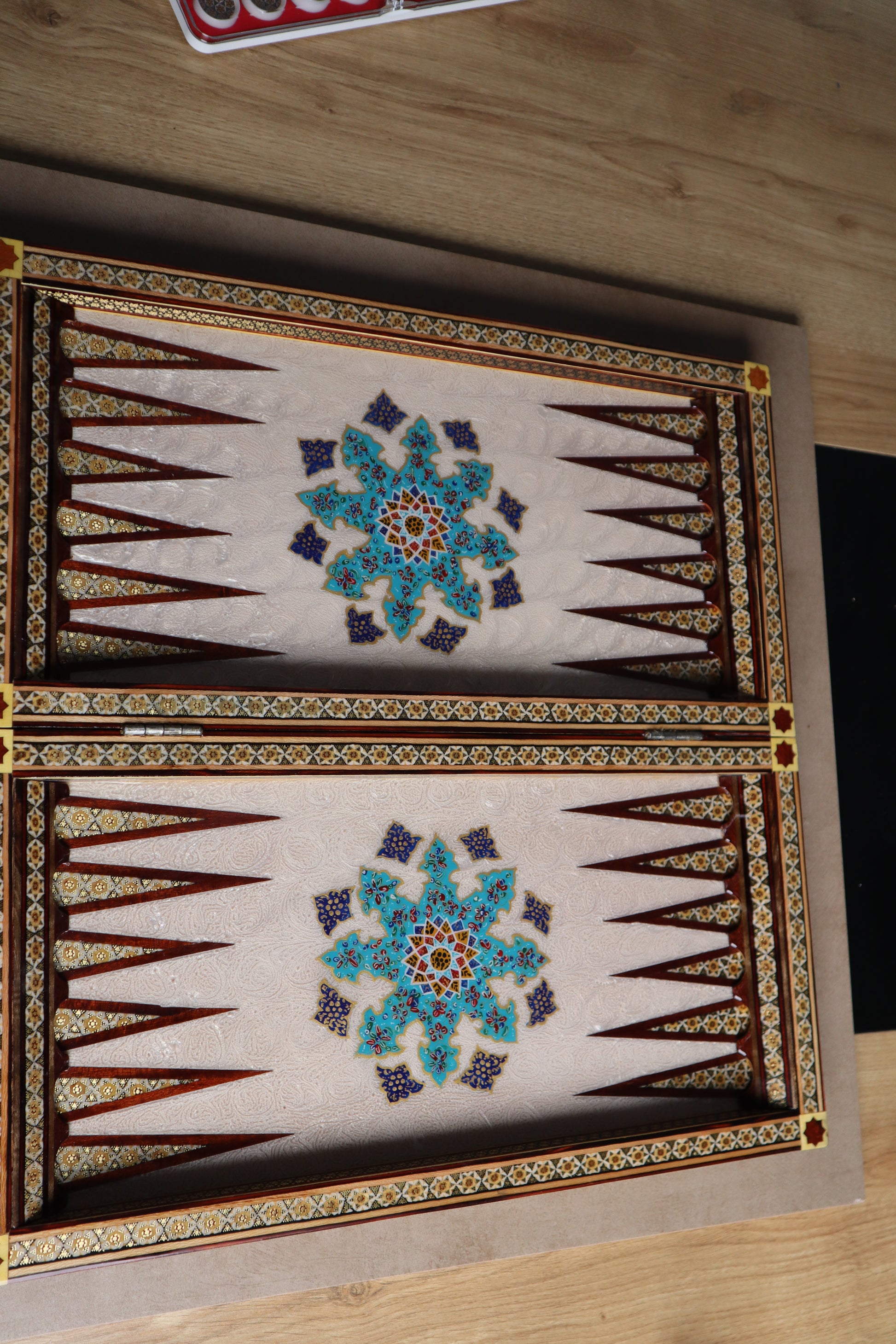 طاولي + شطرنج زخرفة راقية صناعة يدوية - جنطة جلد فاخرة جنود براص B6
