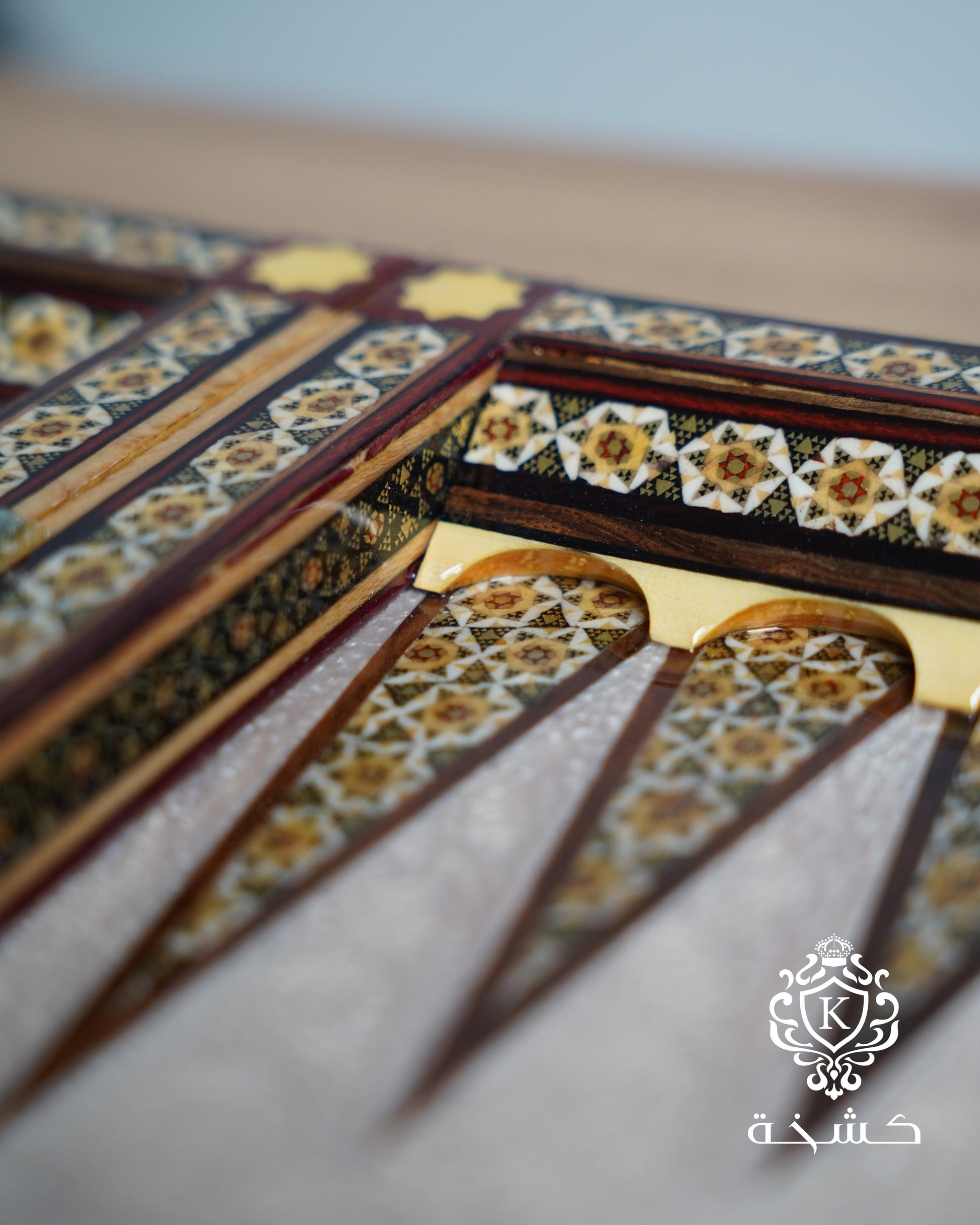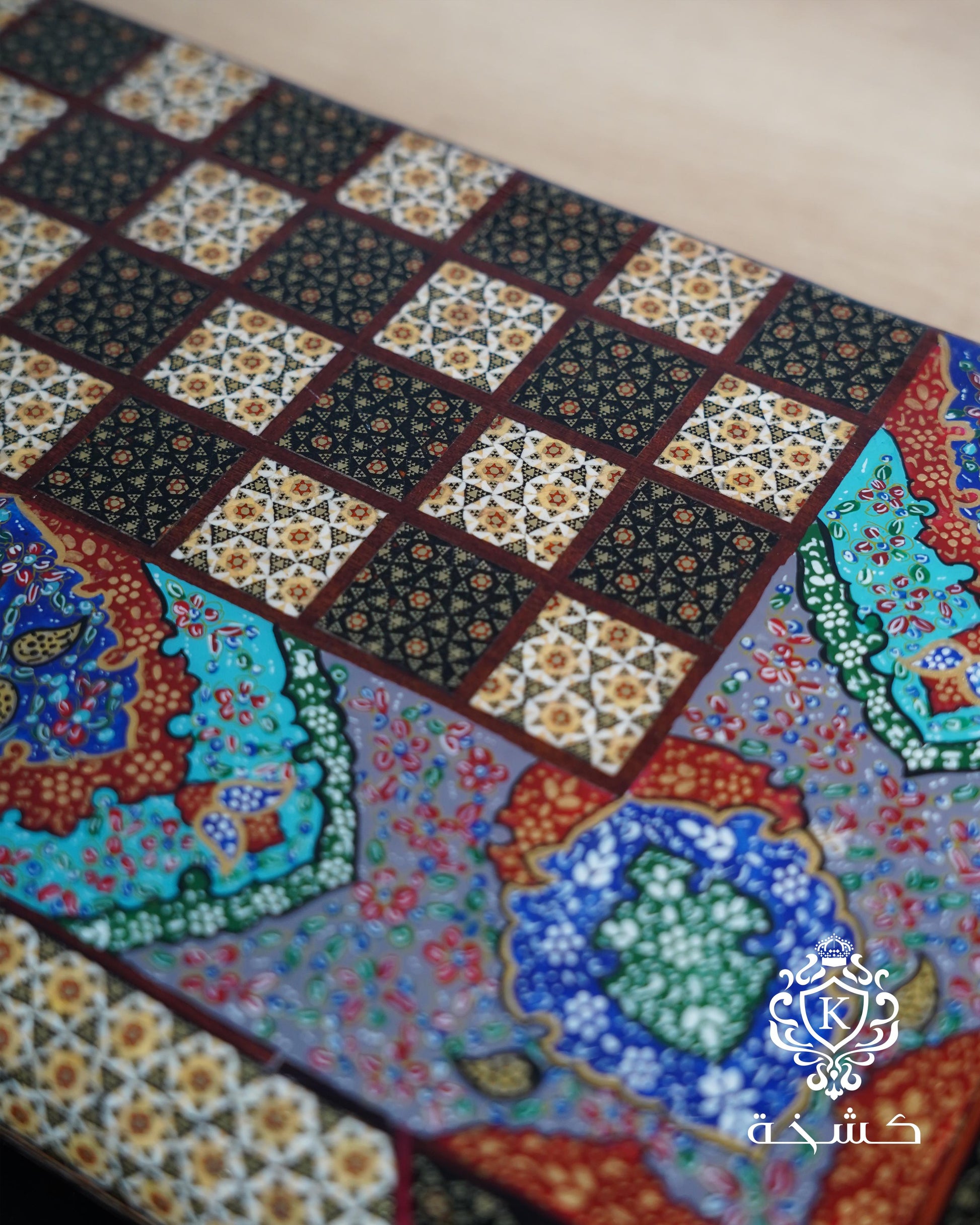 طاولي + شطرنج زخرفة سوداء راقية صناعة يدوية - جنطة جلد فاخرة السعر بدون احجار شطرنج ٥٥٠ الف ومع احجار شطرنج ٦٥٠ الف