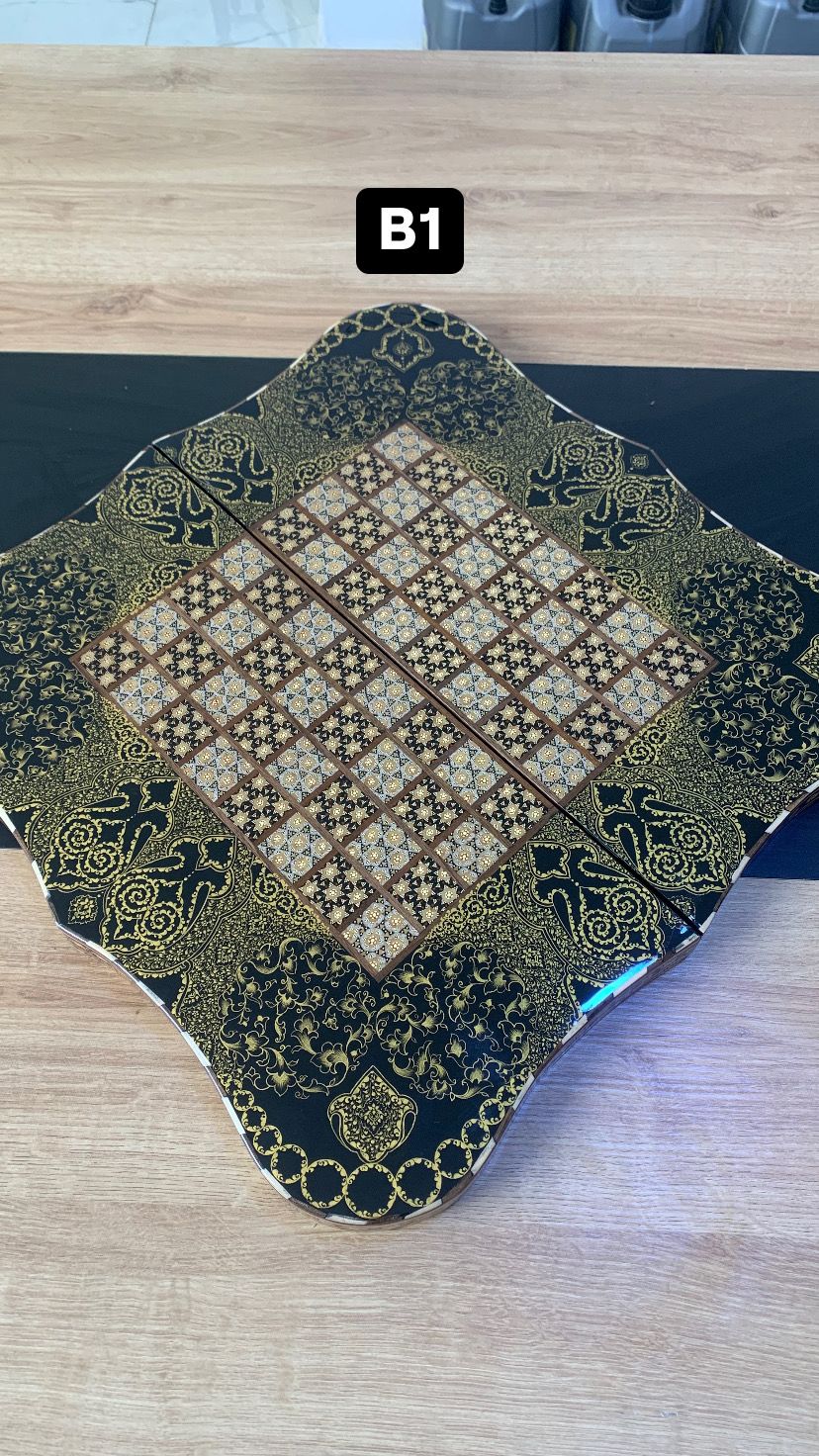 اطاولي + شطرنج زخرفة راقية صناعة يدوية - جنطة جلد فاخرة جنود براص
