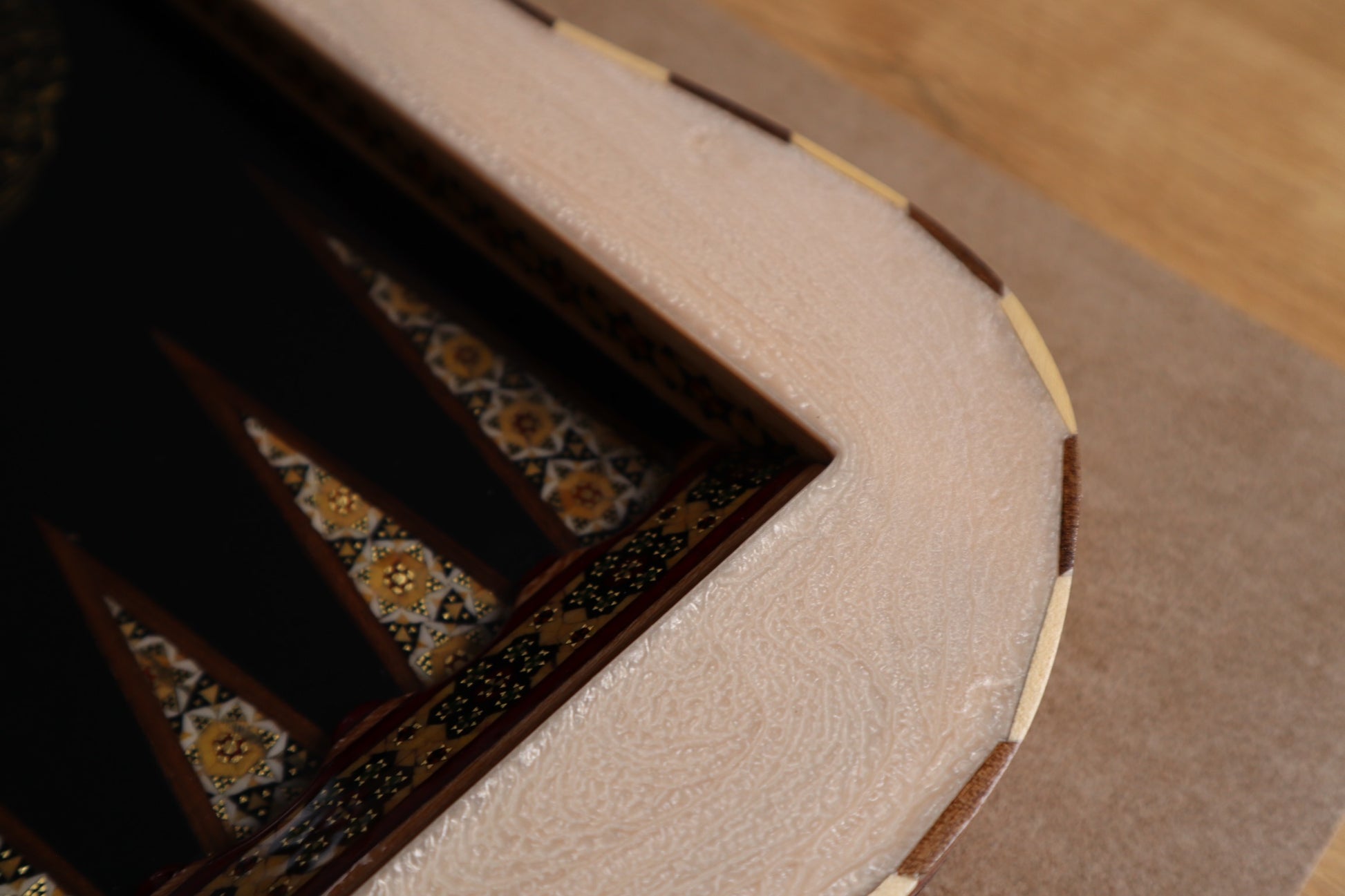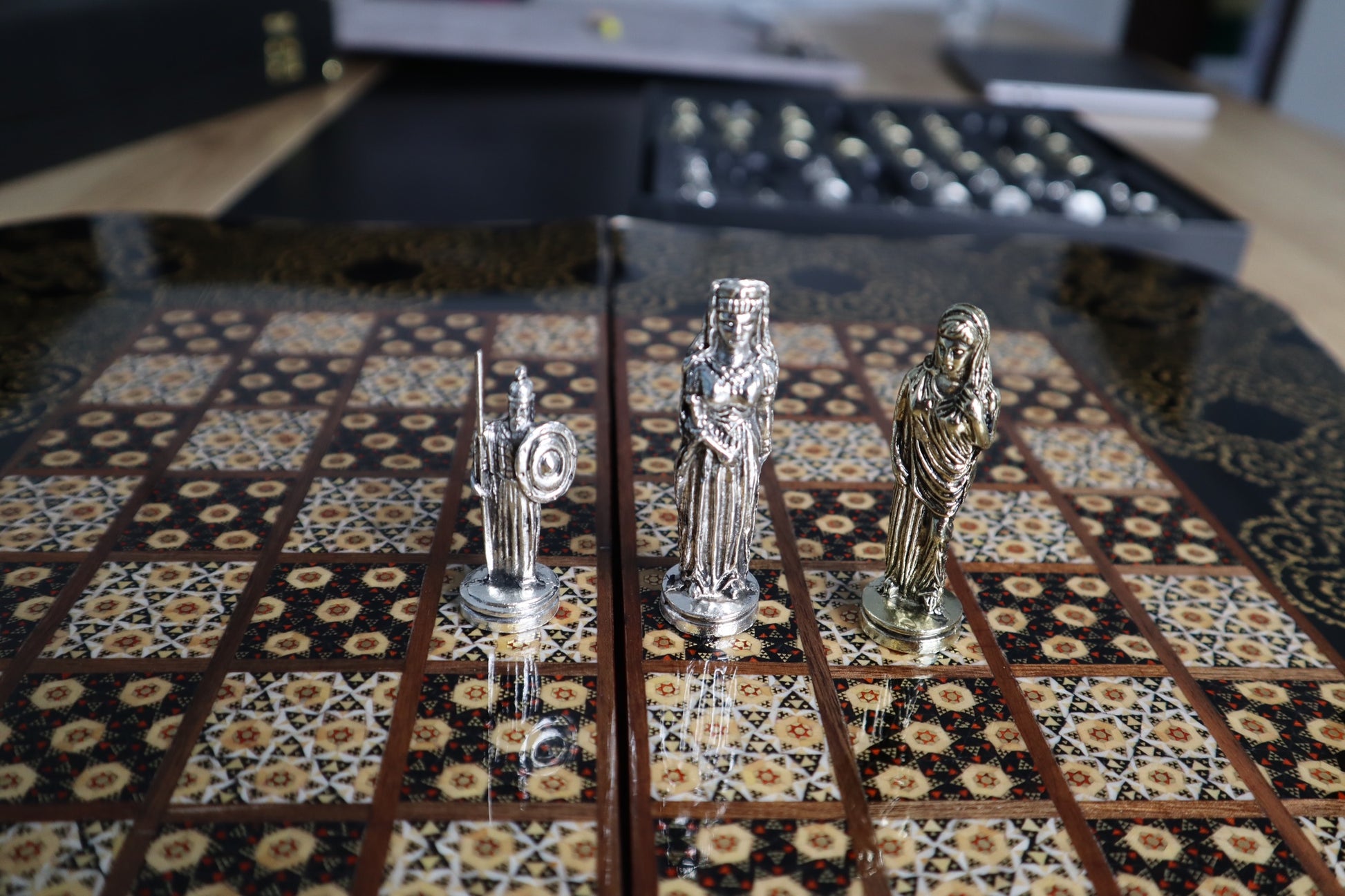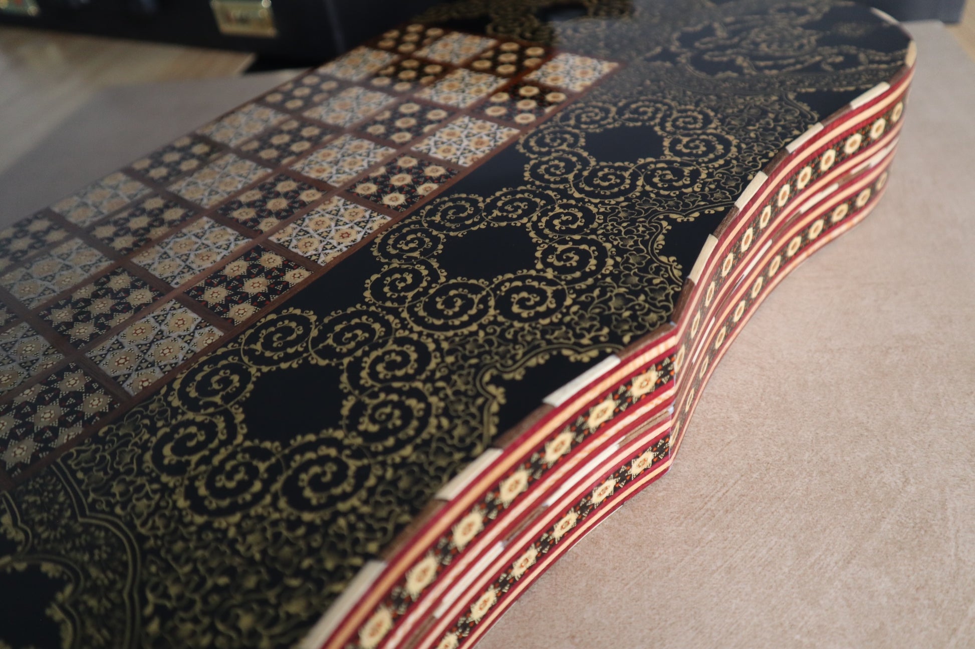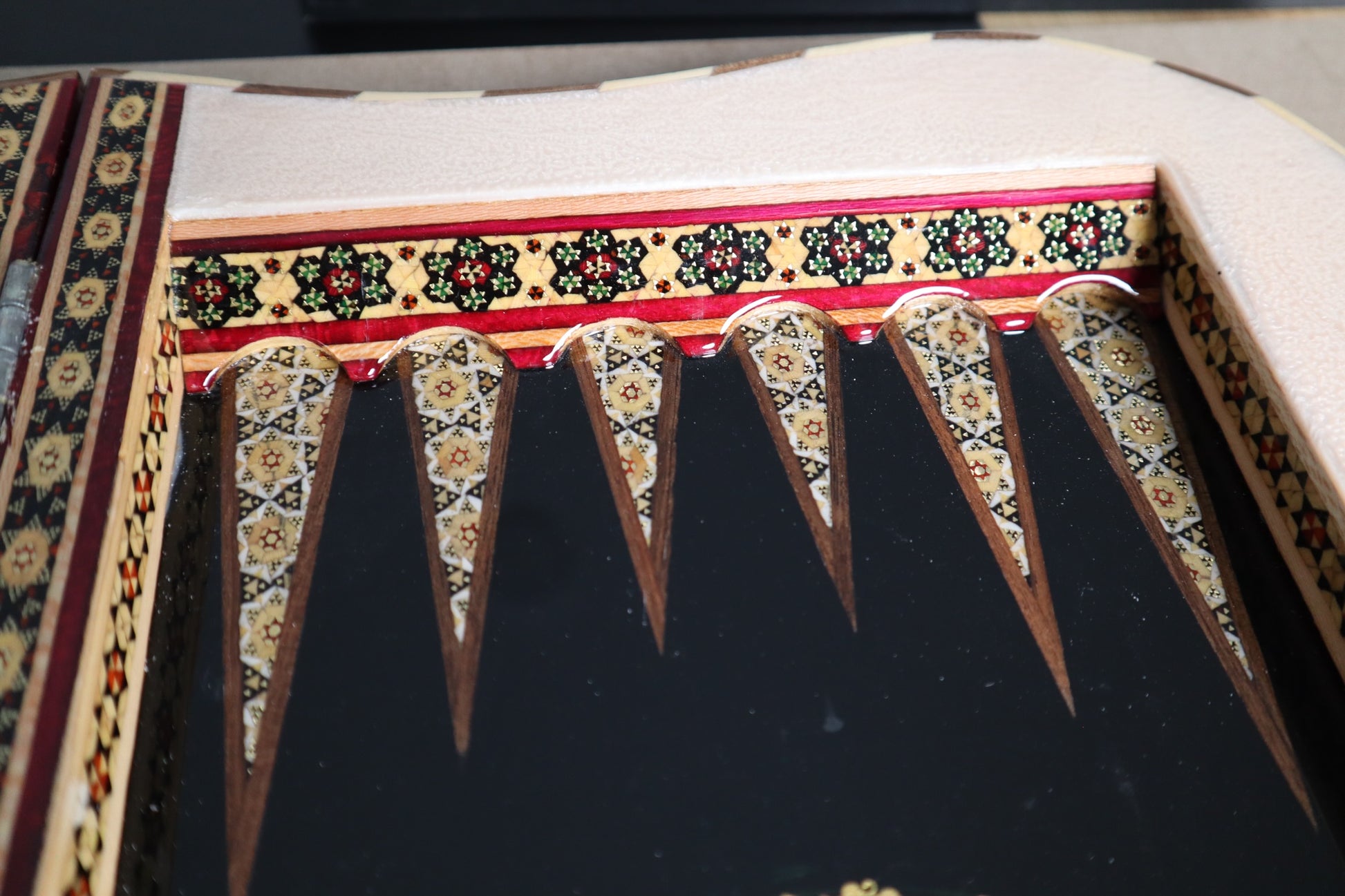 طاولي + شطرنج زخرفة سوداء راقية صناعة يدوية - جنطة جلد فاخرة السعر بدون احجار شطرنج ٥٥٠ الف ومع احجار شطرنج ٦٥٠ الف