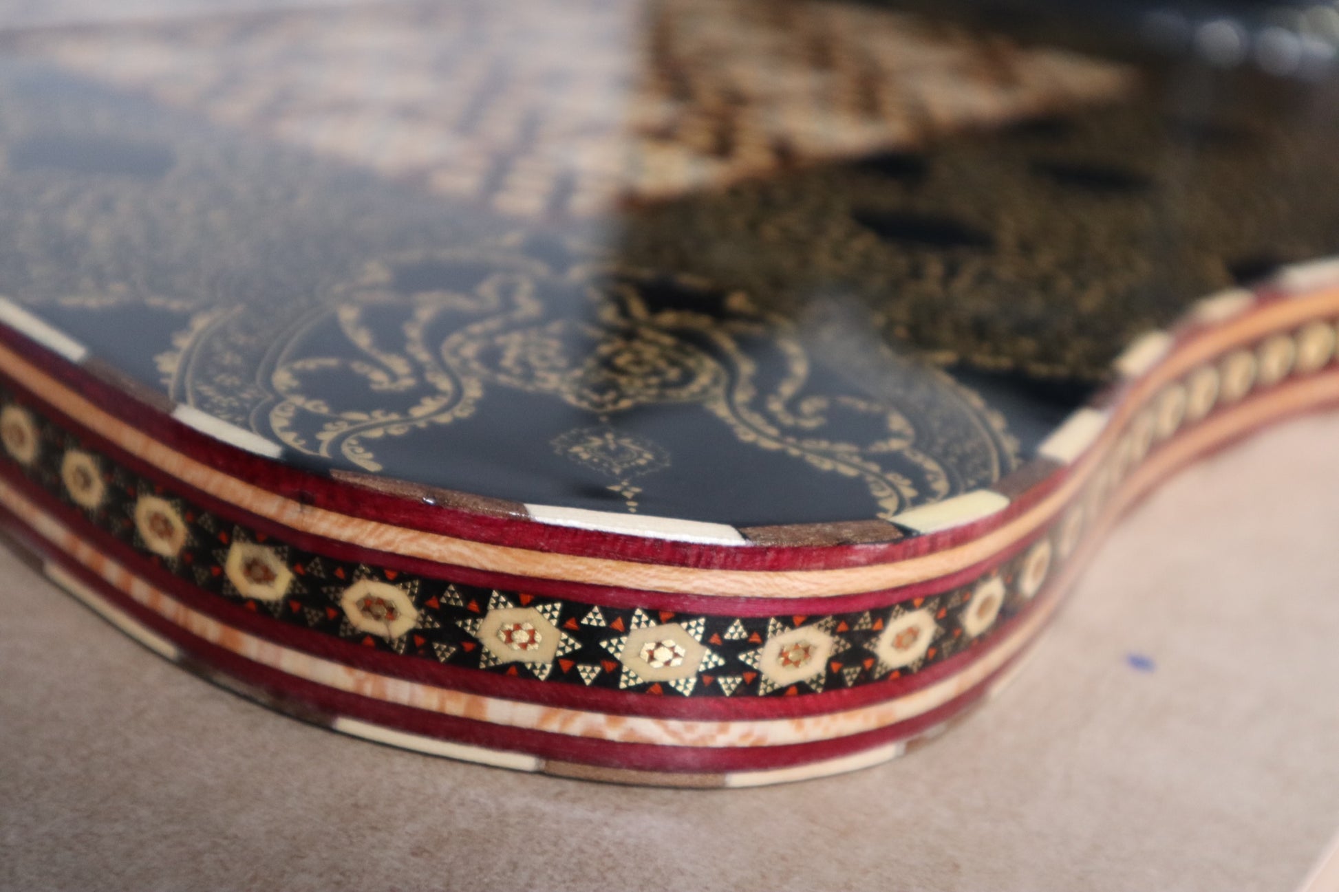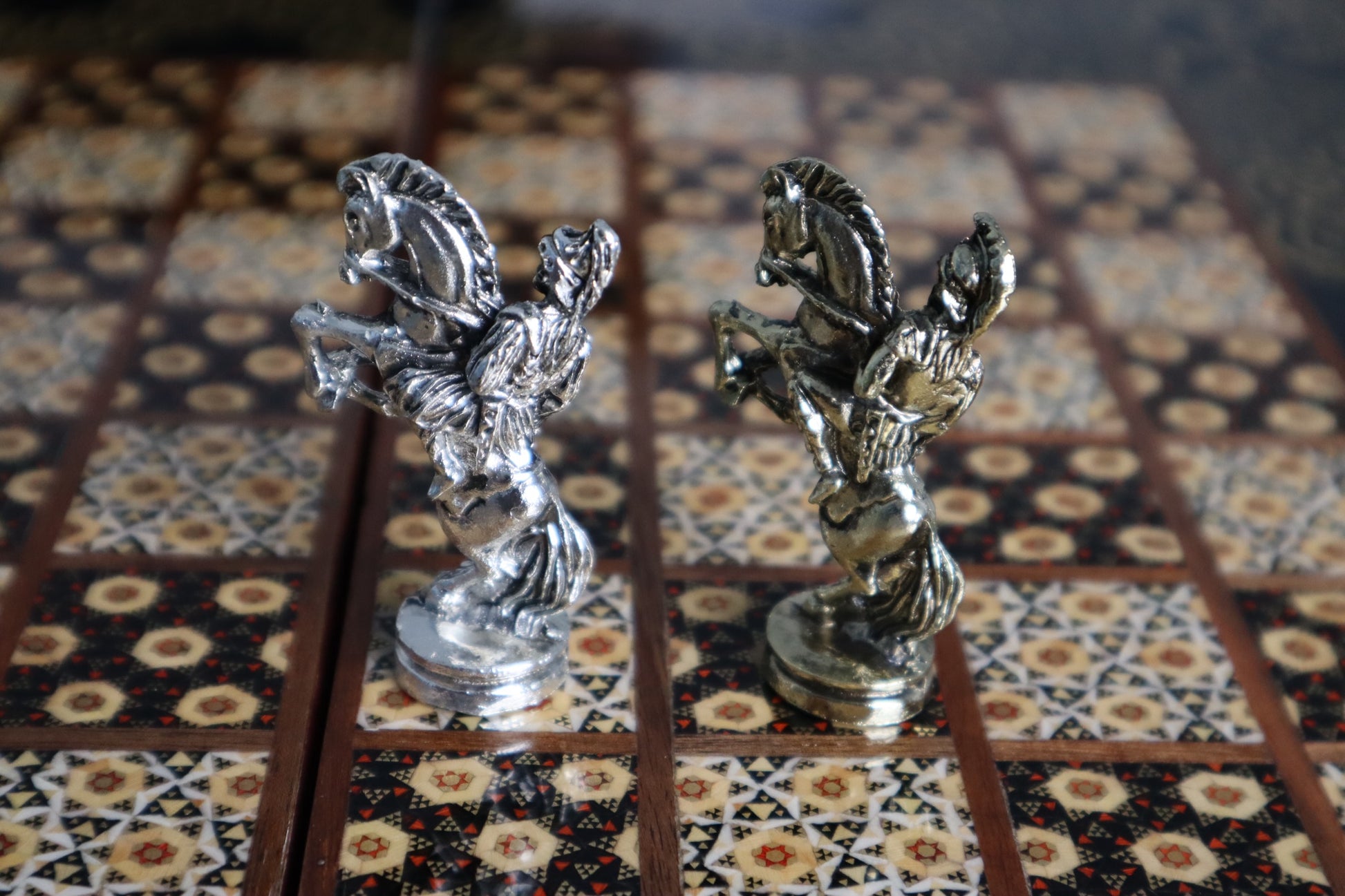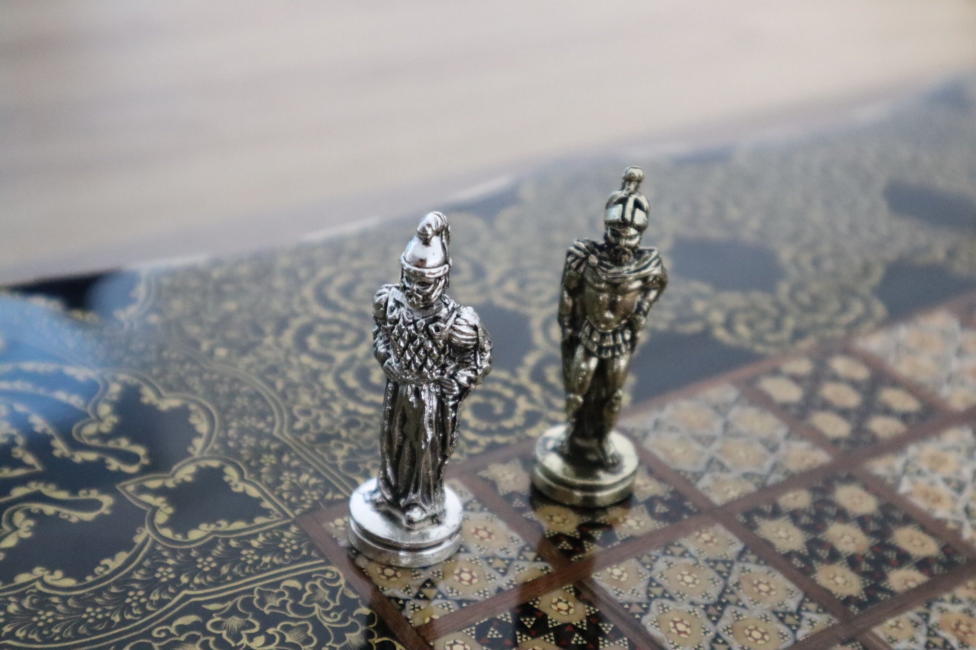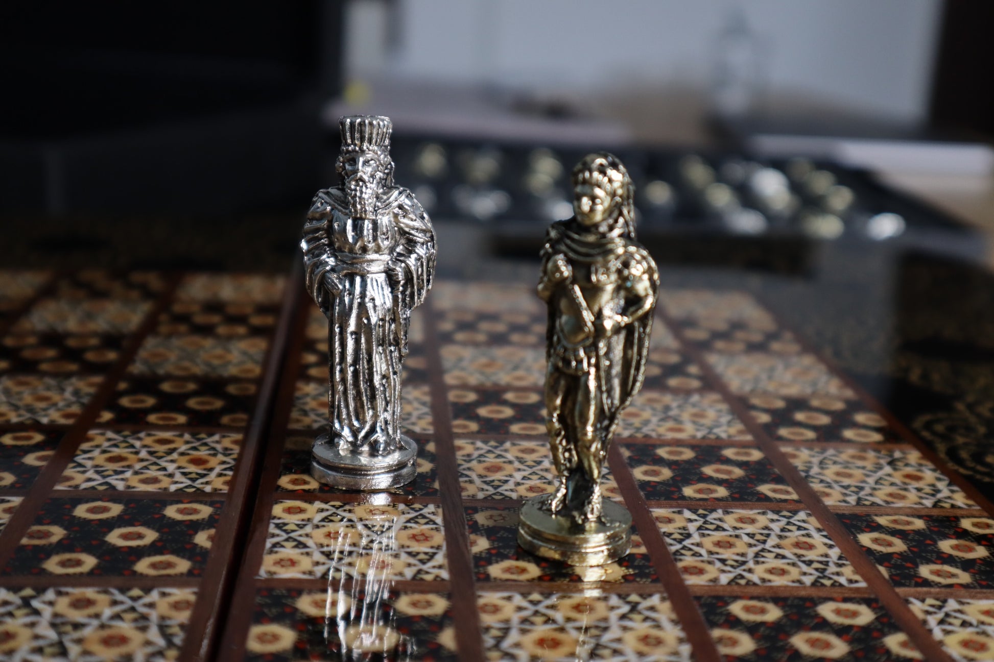 طاولي + شطرنج زخرفة سوداء راقية صناعة يدوية - جنطة جلد فاخرة السعر بدون احجار شطرنج ٥٥٠ الف ومع احجار شطرنج ٦٥٠ الف