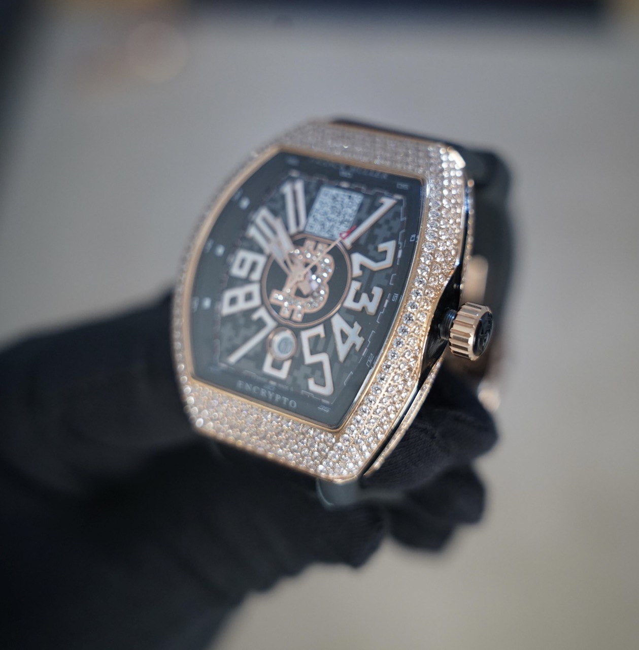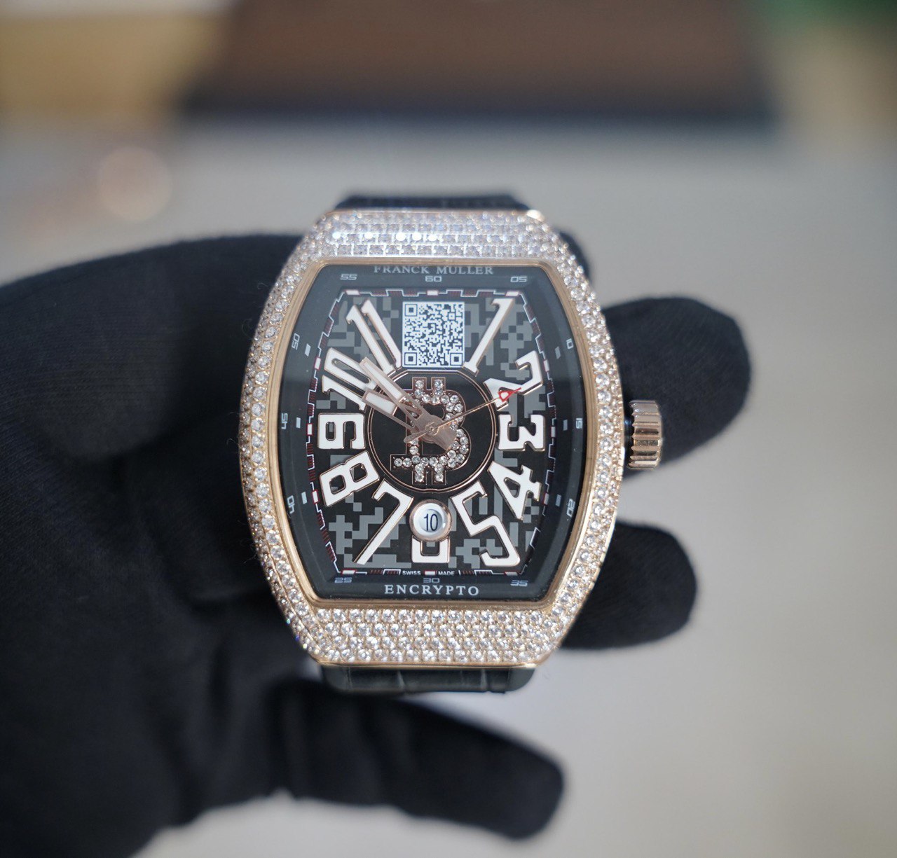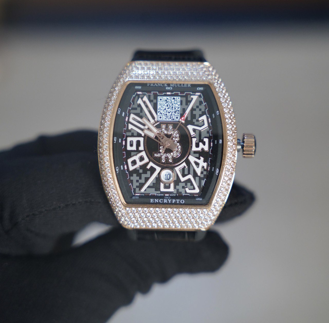 فرانك مولر كريبتو - اصدار خاص للبتكوين مع رمز المحفظة داخل الساعة