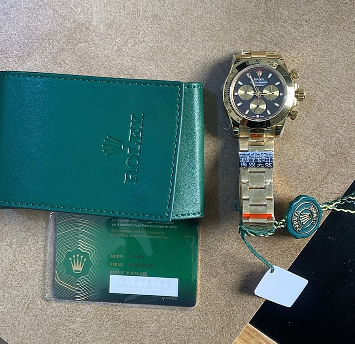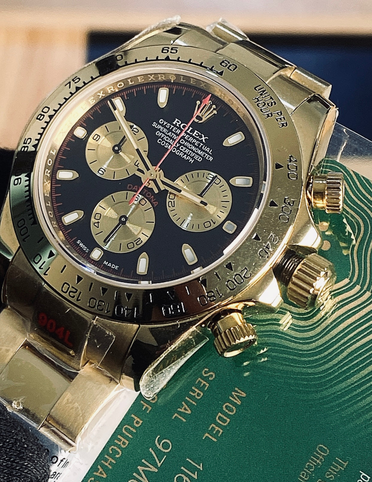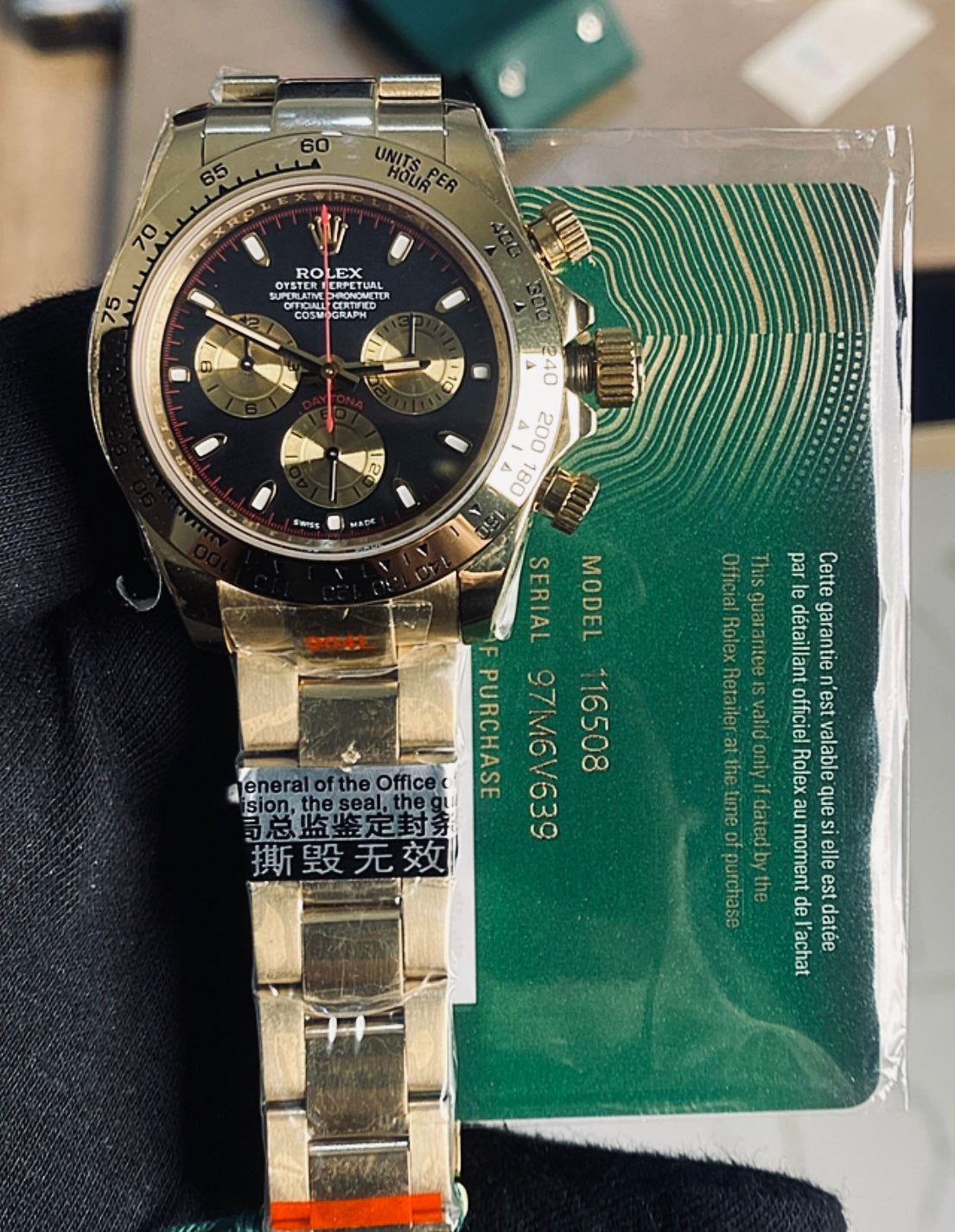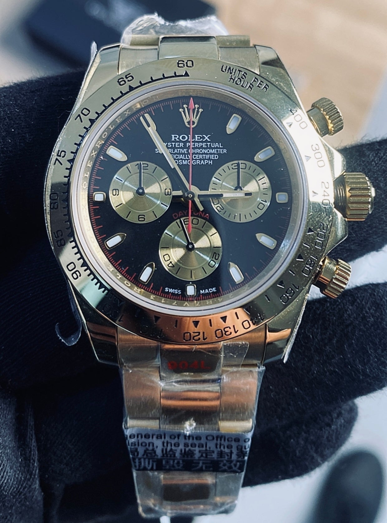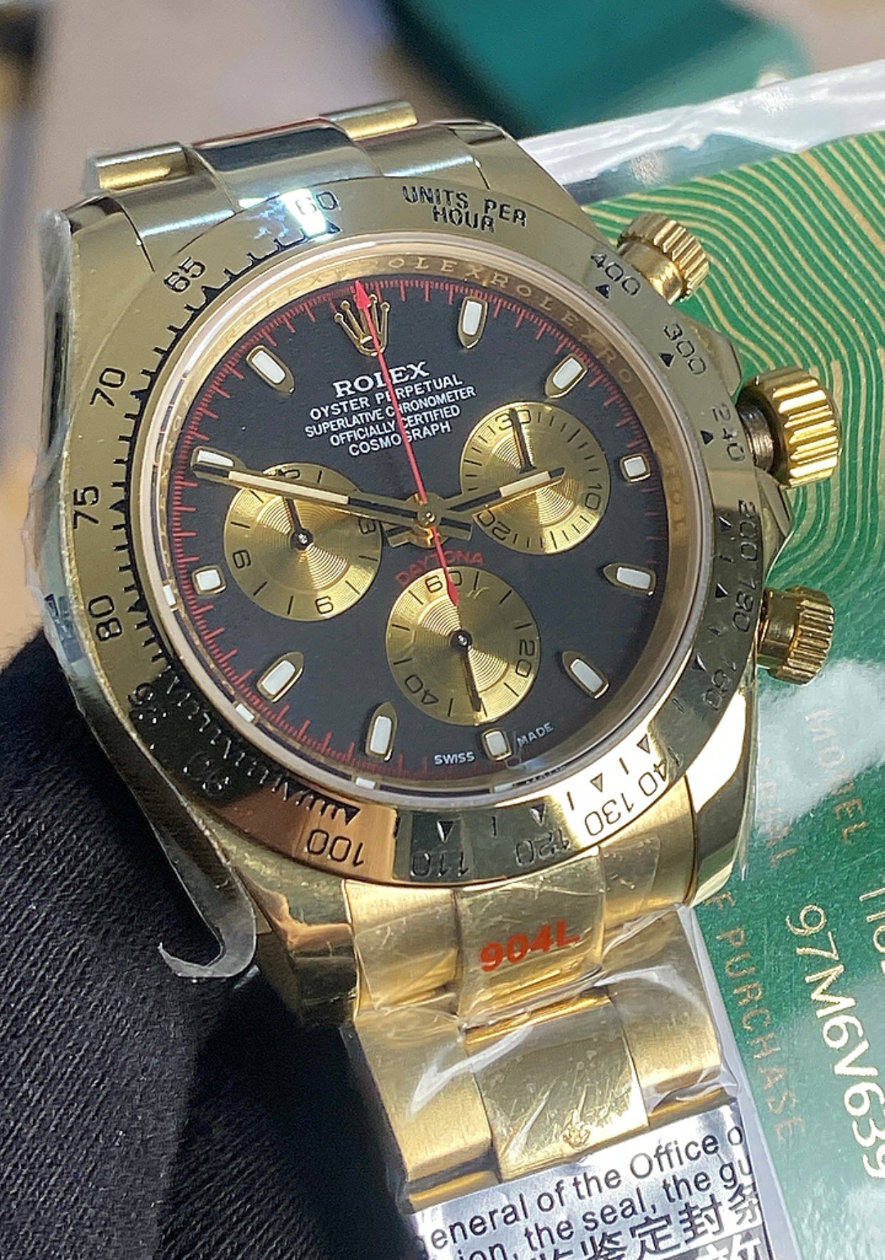 - دايتونا فول ذهب بيزل اسود فريم احمر - ذهب عيار ١٨ مطلي عستيل نفس اللون و طبق الاصل