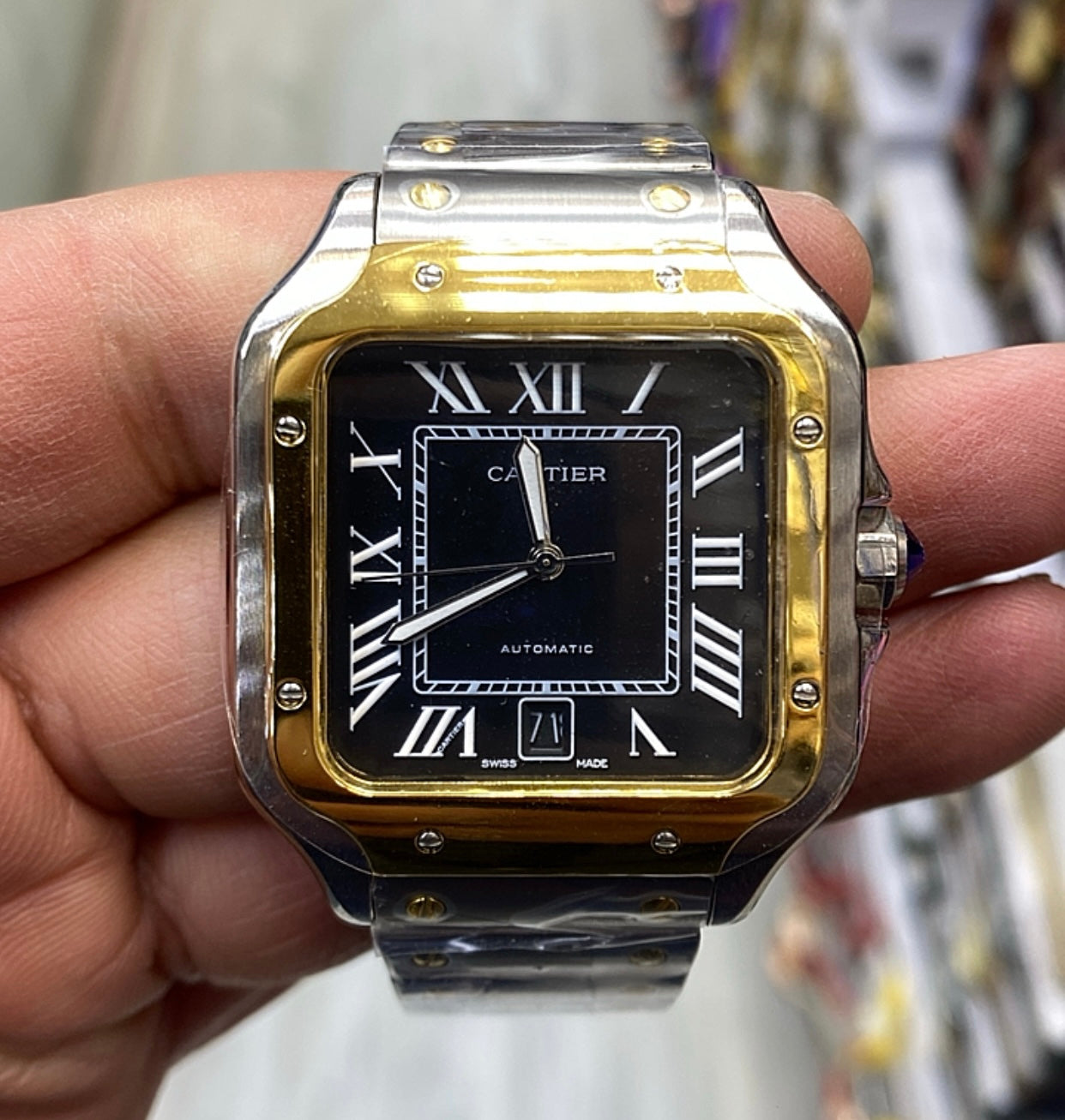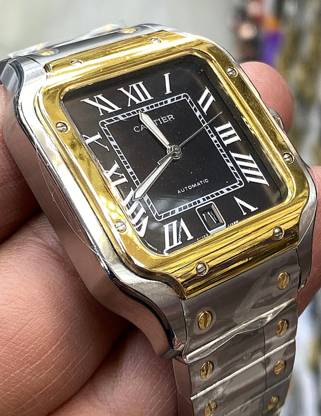 39,8 mm كارتير سانتوس إطار ذهبي ومن الداخل اسود - كلين تايتل