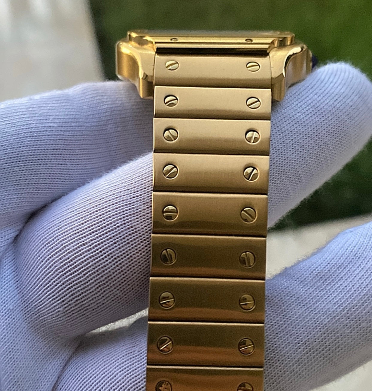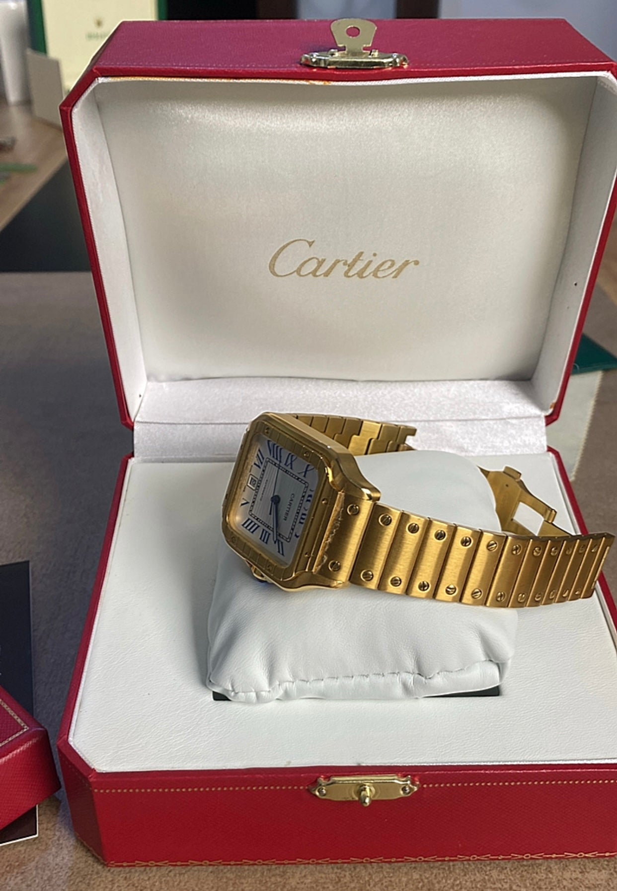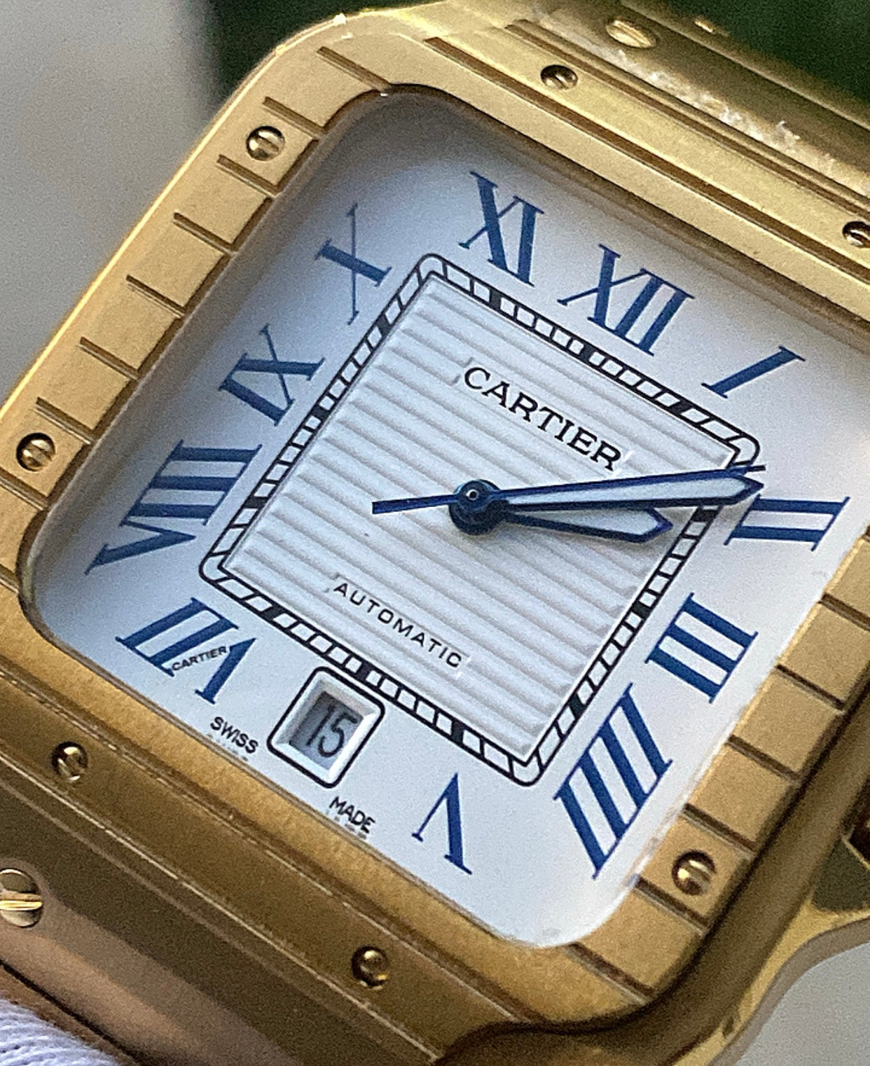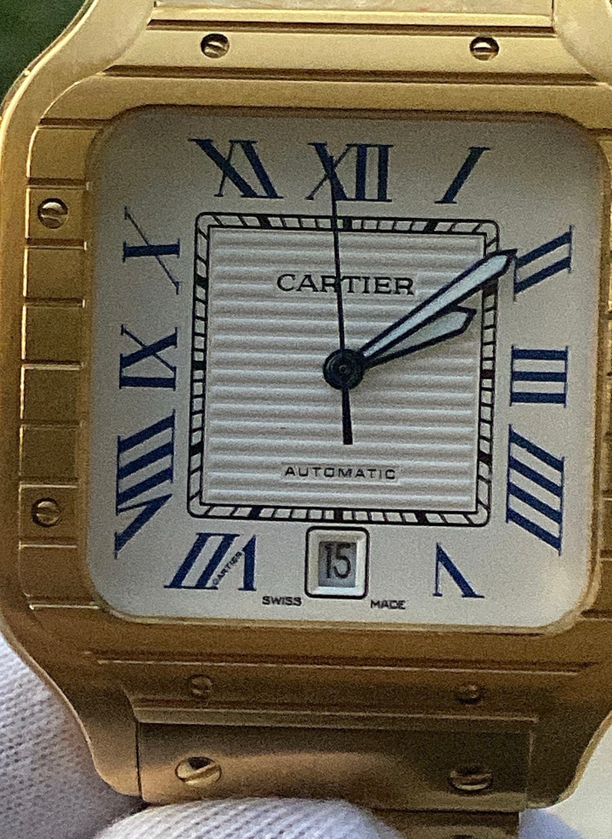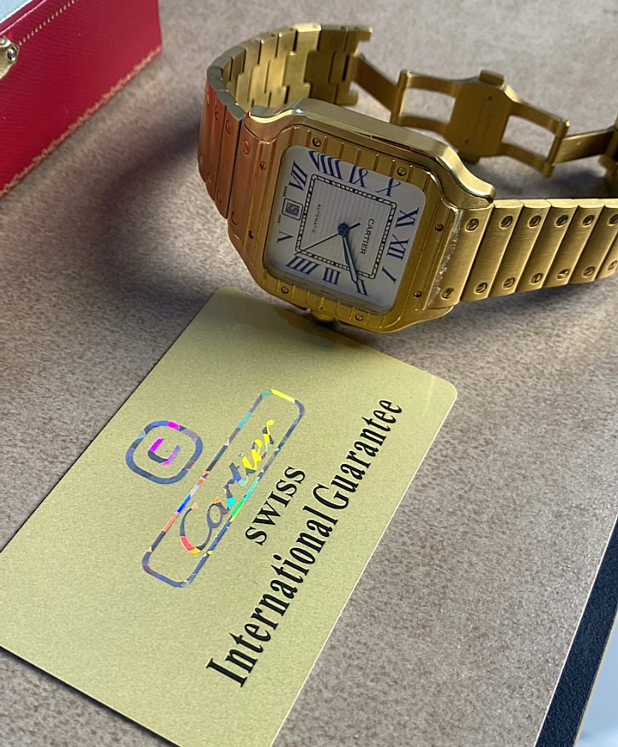 كارتير سانتوس ذهبي مينا ابيض اوتوماتيك ماكينة سويسري مستعمل بحالة الجديد اصدار ٢٠٢٣