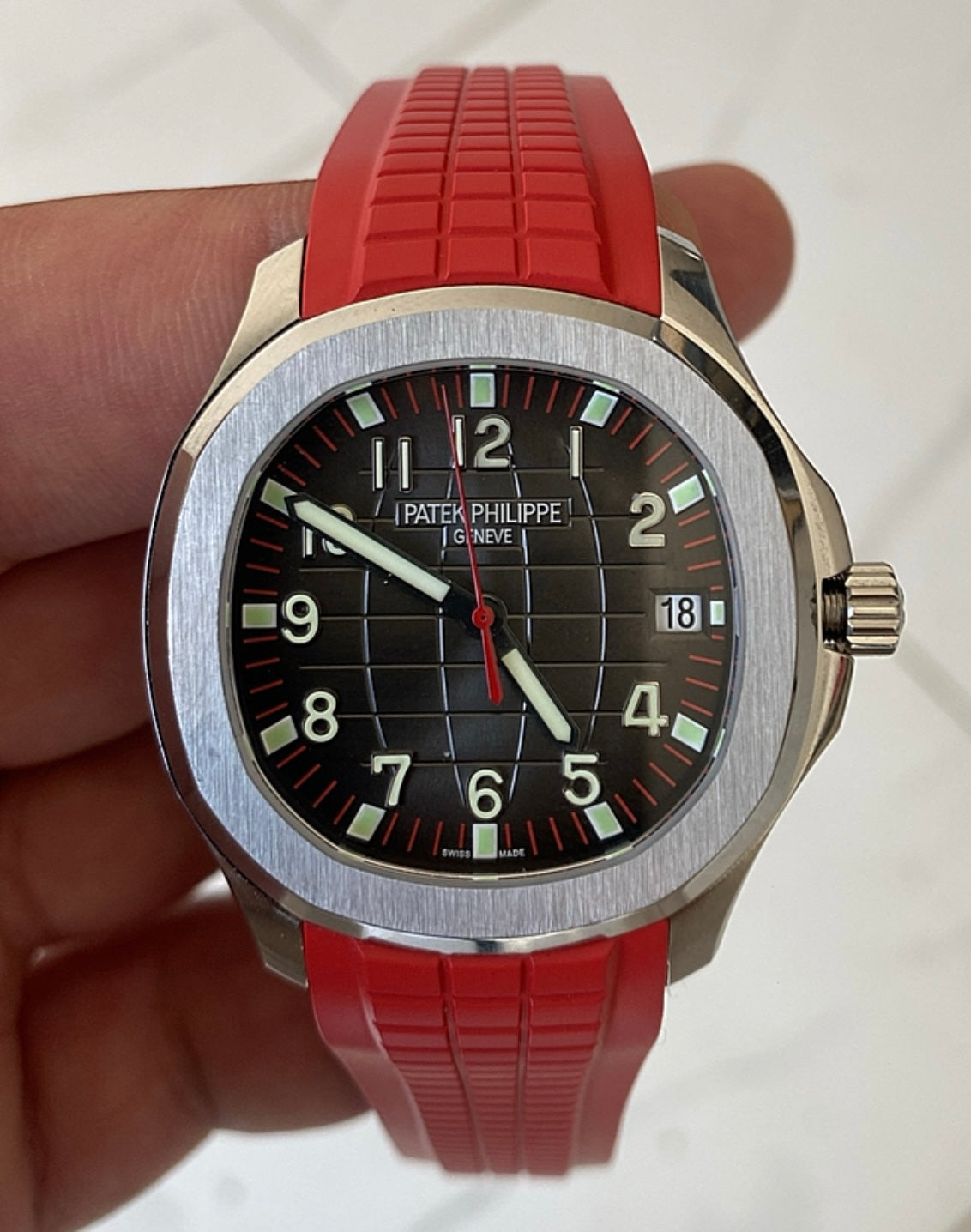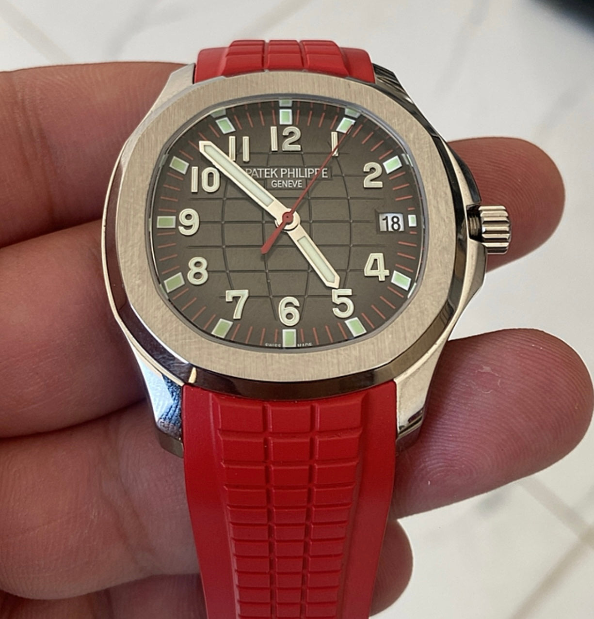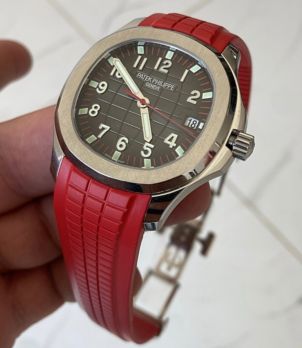 كلين باتيك فيليب اكوا نوت ستراب احمر - الساعة كلين طبق الأصل حبة واحدة فقط